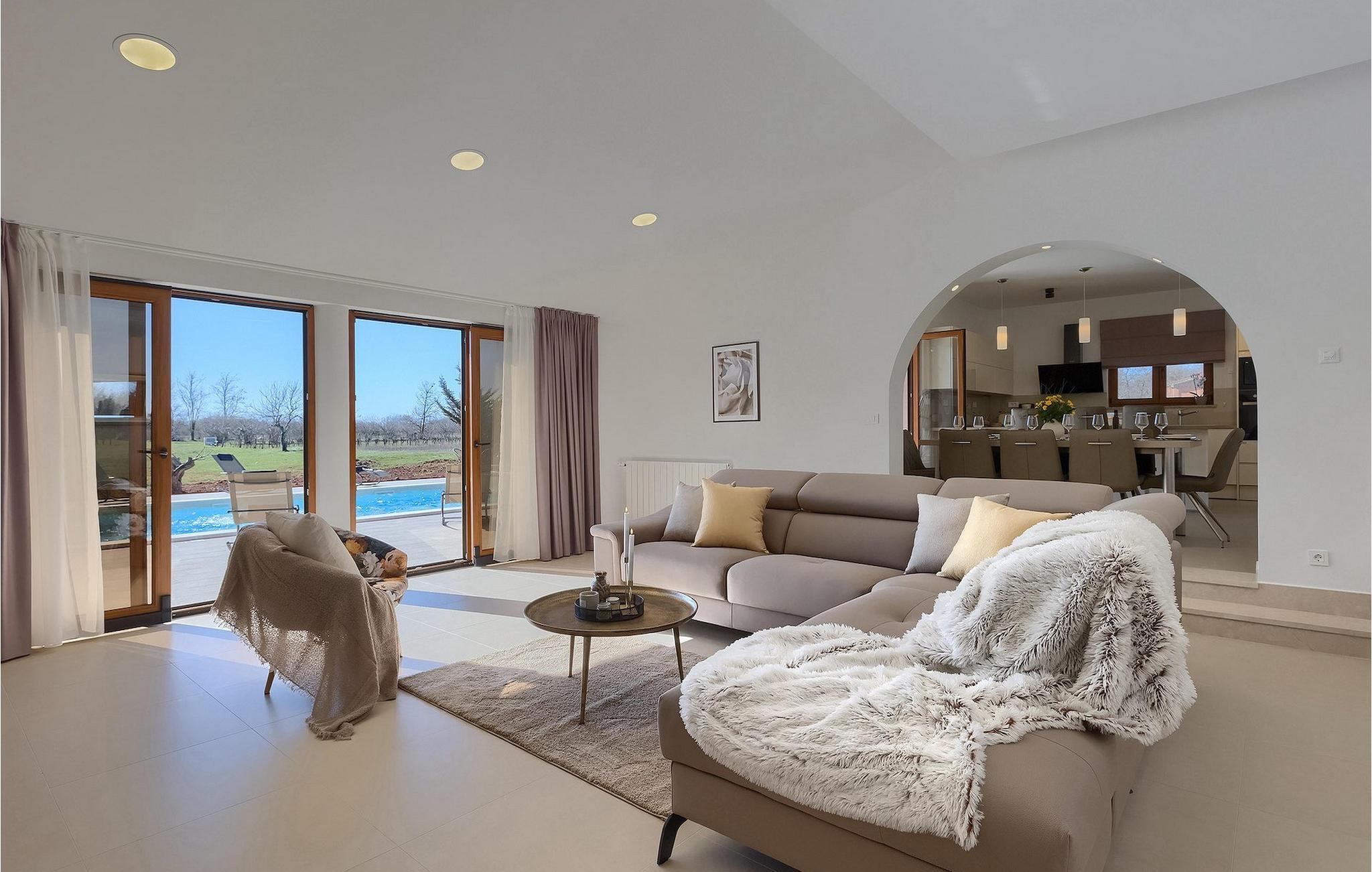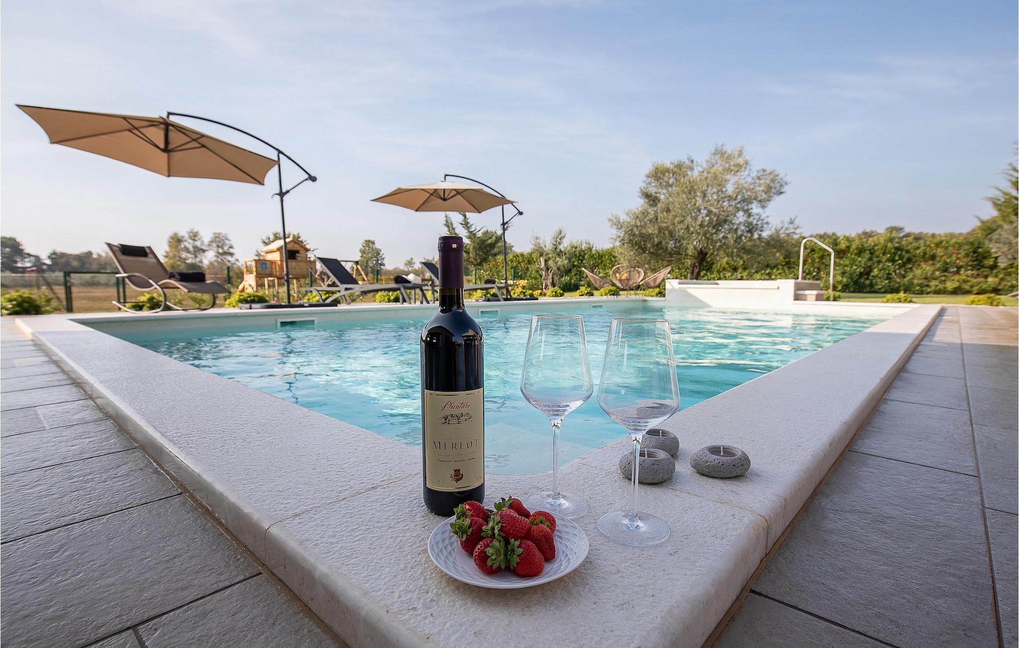Sie und Ihre Kinder werden über den gut ausgestatteten Kinderspielplatz erstaunt sein, der sich neben dem Haus befindet. Auf dem Spielplatz gibt es eine große Rutsche, die sich für jüngere Kinder eignet, während die älteren Fußball oder Basketball spielen können. Während Ihre Kinder spielen, können Sie auf der großen Holzbank sitzen, auf Ihre Kinder aufpassen und ein gutes Buch lesen.Loborika ist ein kleines Dorf in der Gemeinde Marcana, das nur wenige Kilometer außerhalb der größten istrischen Küstenstadt Pula liegt. Marcana ist eine ruhige Gegend mit unberührter Natur und historischen Denkmälern. Hier können Sie wirklich Ihre Ruhe genießen. Die Lage der Villa bietet ein perfektes Gleichgewicht aus Ruhe und privatem Vergnügen, weg vom Stadttrubel und Touristenmengen, zugleich ist es unweit aller wichtigen Städte in Istrien. Pula, die grösste Stadt Istriens, ist nicht weit von der Villa entfernt und ist weltberühmt für ihr erstaunliches Kolosseum, ein antikes Amphitheater, das im 1. Jhdt während der Herrschaft des römischen Kaisers Vespasian erbaut wurde. Neben kulturellen und historischen Schönheiten bietet Istrien unikate kulinarische Erfahrungen, wohl bekannt in diesem Teil Europas. Hausgemachter Prosciutto (prsut), Wein, istrische Pasta (fuzi) sind nur ein paar der Delikatessen der wahren mediterranen Küche in Istrien. Die Istrische Halbinsel beherbergt auch einen der schönsten Nationalparks in diesem Teil Europas- Brijuni.