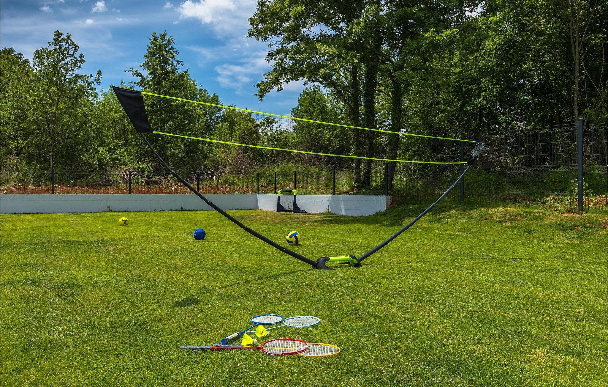 Es gibt einen Spielplatz für die Kinder sowie Platz für Volleyball, Badminton oder Fußball, die alle genießen können.