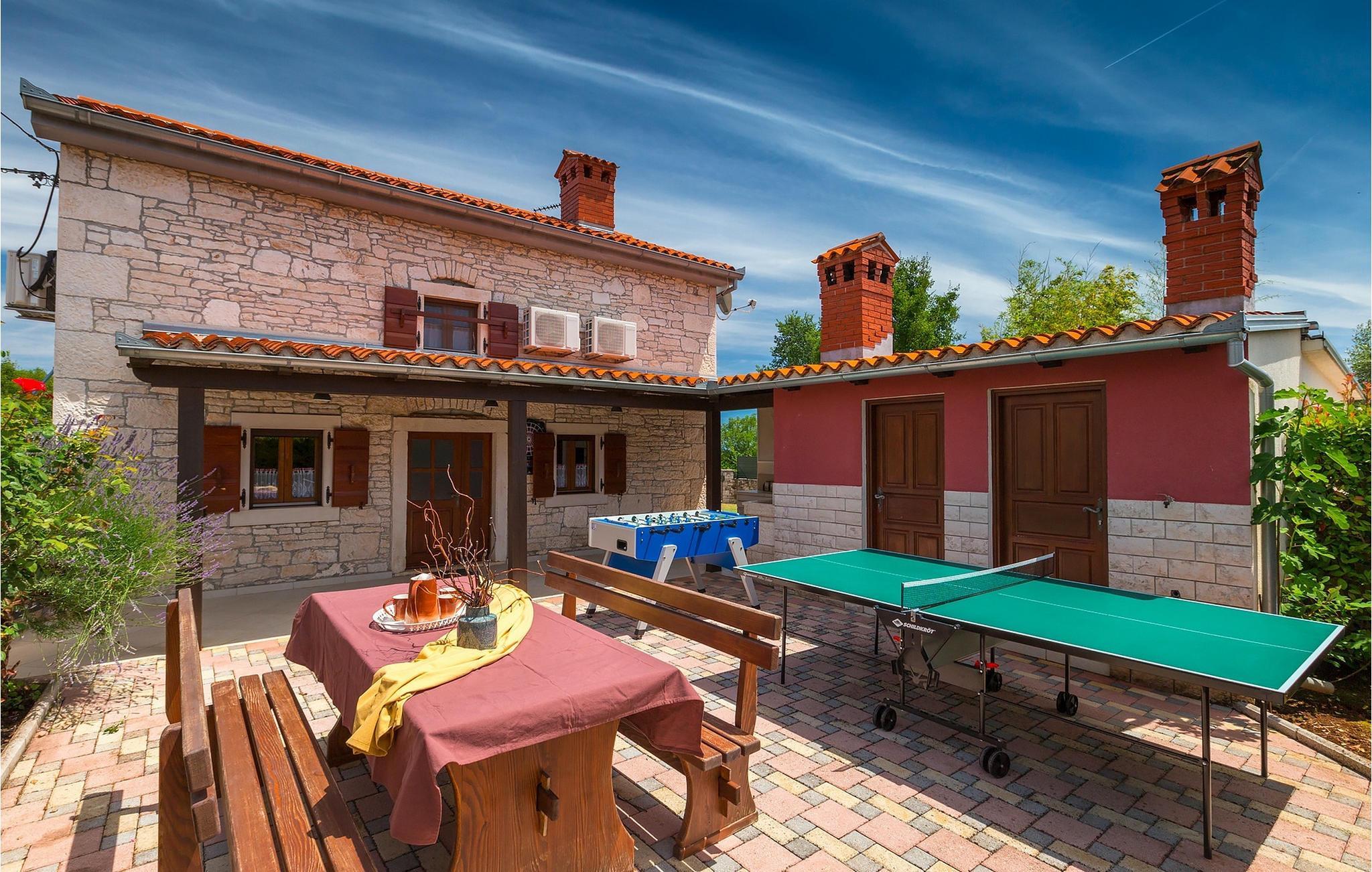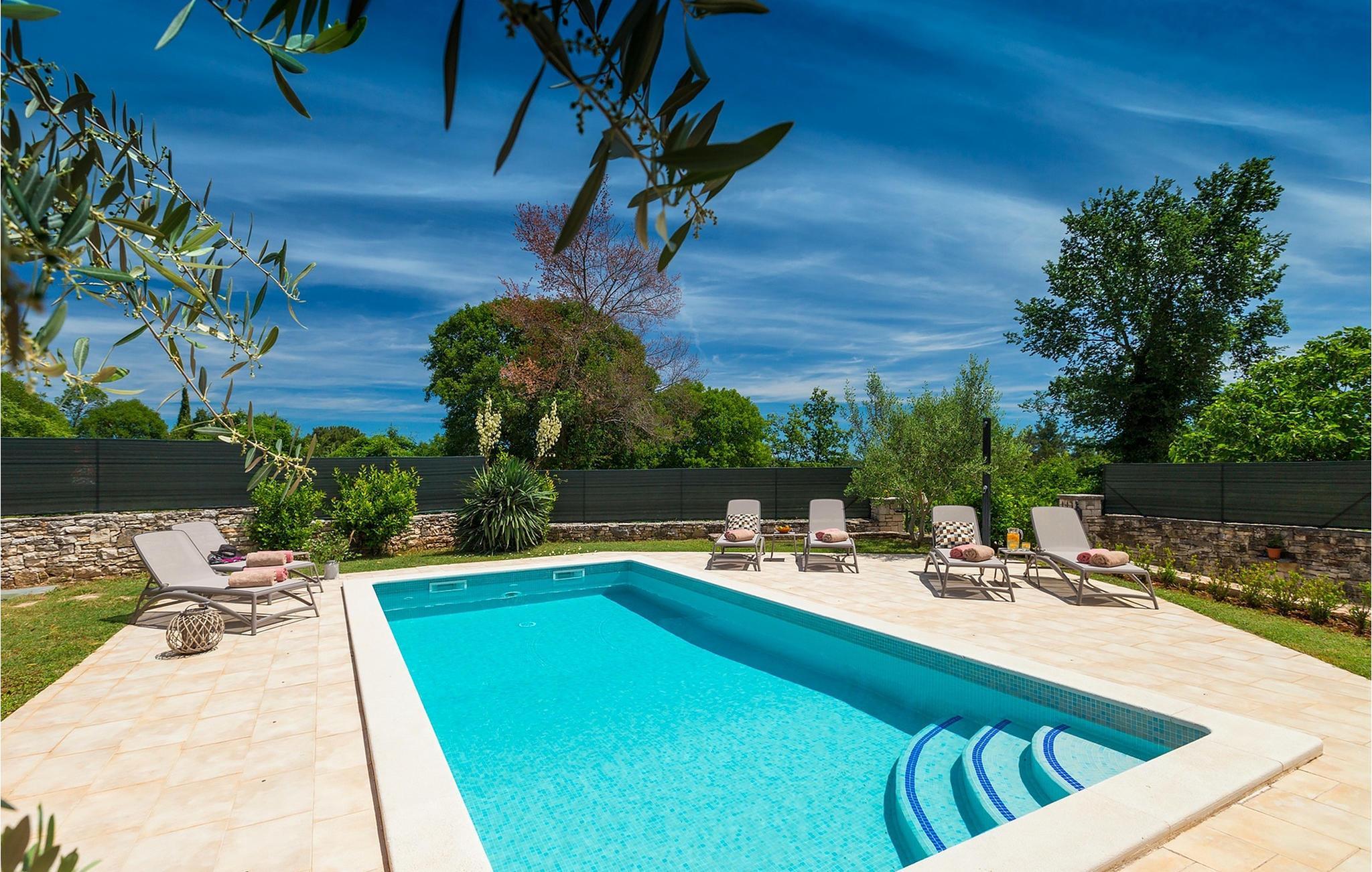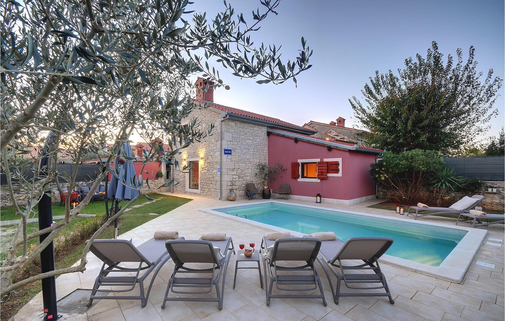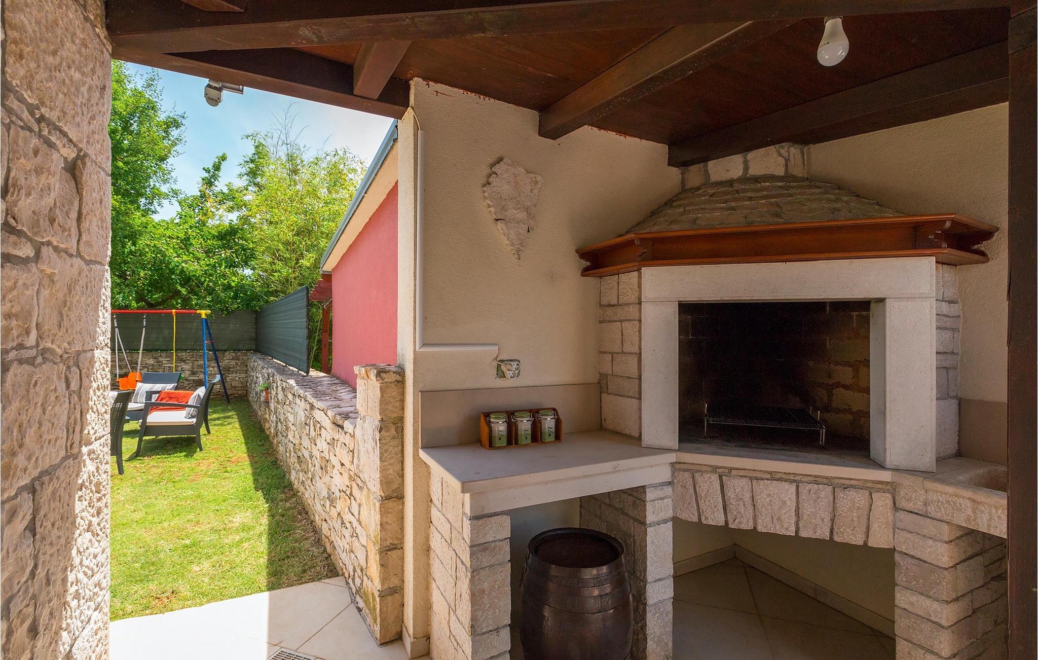 Diese charmante Villa wurde in 1860 gebaut und in 2010 komplett renoviert. Während der Renovierung wurde viel Wert darauf gelegt, den traditionellen Charme der Villa zu bewahren, sowohl im Innenraum als auch im Garten. Im Erdgeschoß finden Sie einen offenen Wohn-/Essbereich, in dem Holzbalken und offene Steinwände eine warme und einladende Atmosphäre schaffen. Für Saison 2018 ist eine Renovierung des Wohnzimmers vorgesehen. Der Kamin wird nicht mehr in diesem Raum sein. Im Erdgeschoß finden Sie auch das gemütliche Schlafzimmer mit Doppelbett, einem eigenen Badezimmer und schönem Blick auf den Poolbereich. 2 weitere Schlafzimmer, die über Klimaanlage und TV verfügen, befinden sich auf ersten Etage. Im ersten Stock gibt es noch ein weiteres Badezimmer. Mit insgesamt 3 Schlafzimmern und einem ausziehbaren Sofabett kann die Villa insgesamt 8 Personen beherbergen. Der Außenbereich ist auch bezaubernd: hier befindet sich der private Pool, der vom sorgfältig gepflegten Garten umgeben ist. Weiterhin können Sie im Garten leckere Mahlzeiten auf dem Grill zubereiten und im Freien essen, während Sie gleichzeitig die Friedlichkeit der istrischen Landschaft genießen. Den jüngsten Gästen steht der private Kinderspielplatz zur Verfügung.Diese wunderschöne Villa liegt inmitten der herrlichen hügeligen Landschaft Istriens ist aber zur gleichen Zeit nur einen Steinwurf vom smaragdblauen Meer und einsamen Kieselstränden der Adria entfernt. Eine sehr gute Pferderanch mit Trekking und Reiten in ihrem Angebot befindet sich gerade im Dorf Manjadvorci. Den Abenteurern stehen zur Verfügung ein großer Adrenalinpark nur 2 km von der Villa, ein Tauchzentrum in der schönen Bucht von Krnica (7 km entfernt), sowie zahlreiche verschiedene Wander- und Radwege in der Nähe der Villa. Hier gibt es eine große Auswahl an Gourmetgerichten zubereitet mit köstlichen lokalen Erzeugnissen, was bedeutet, dass Sie nie weit gehen werden müssen, um ein hervorragendes Essen zu finden. Ihre Lebensmitteln können Sie auch direkt von den lokalen Herstellern kaufen. Um die letzte Zutat zu dieser reichen Vielfalt an Aktivitäten hinzuzufügen, liegen die historische Stadt Pula, die für ihr atemberaubendes Kolosseum weltberühmt ist, und die lebendigen touristischen Hot Spots nur wenige Fahrminuten entfernt, sowie die Fähren für eine Tour um die atemberaubend schönen umliegenden Inseln.