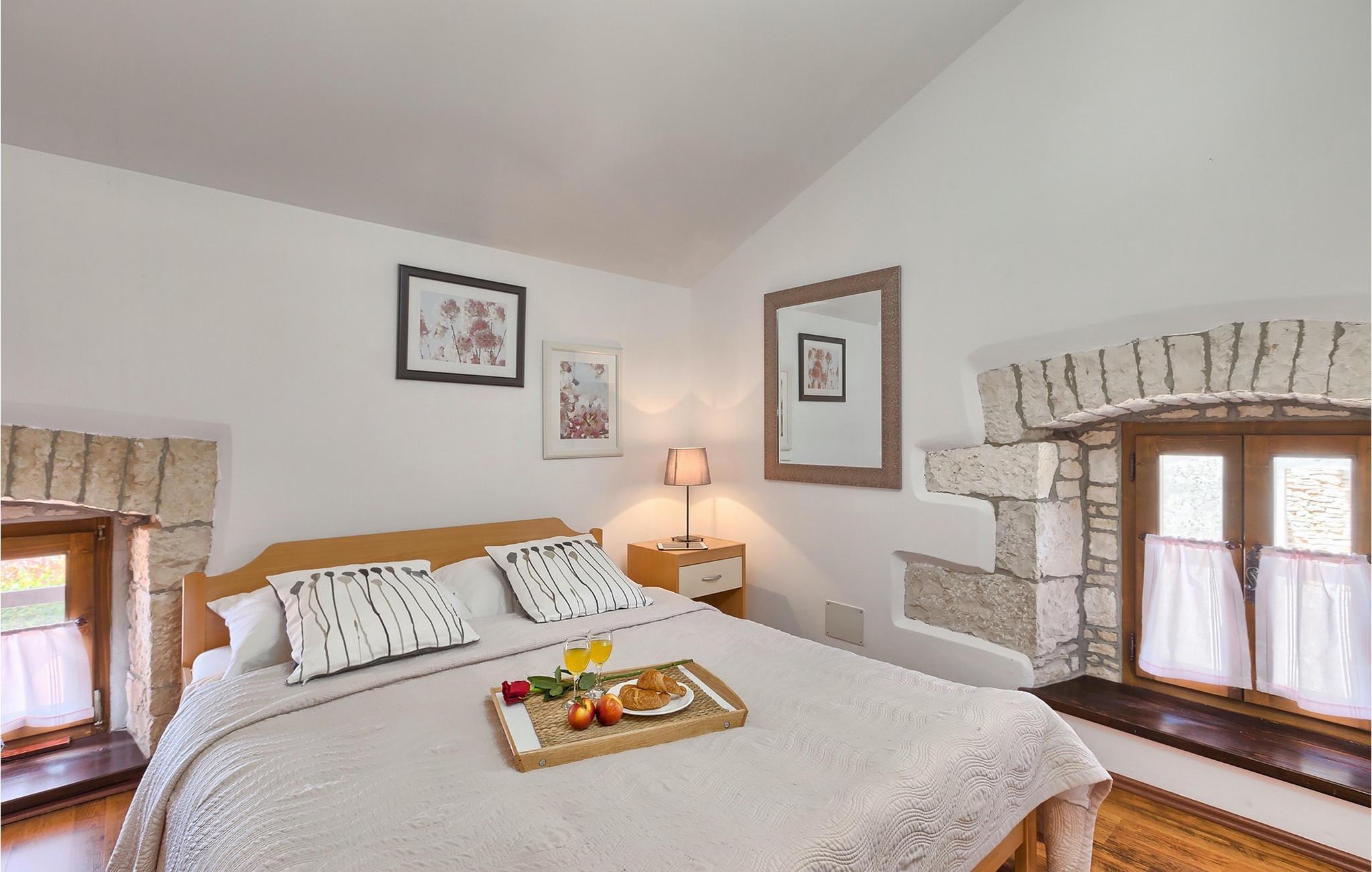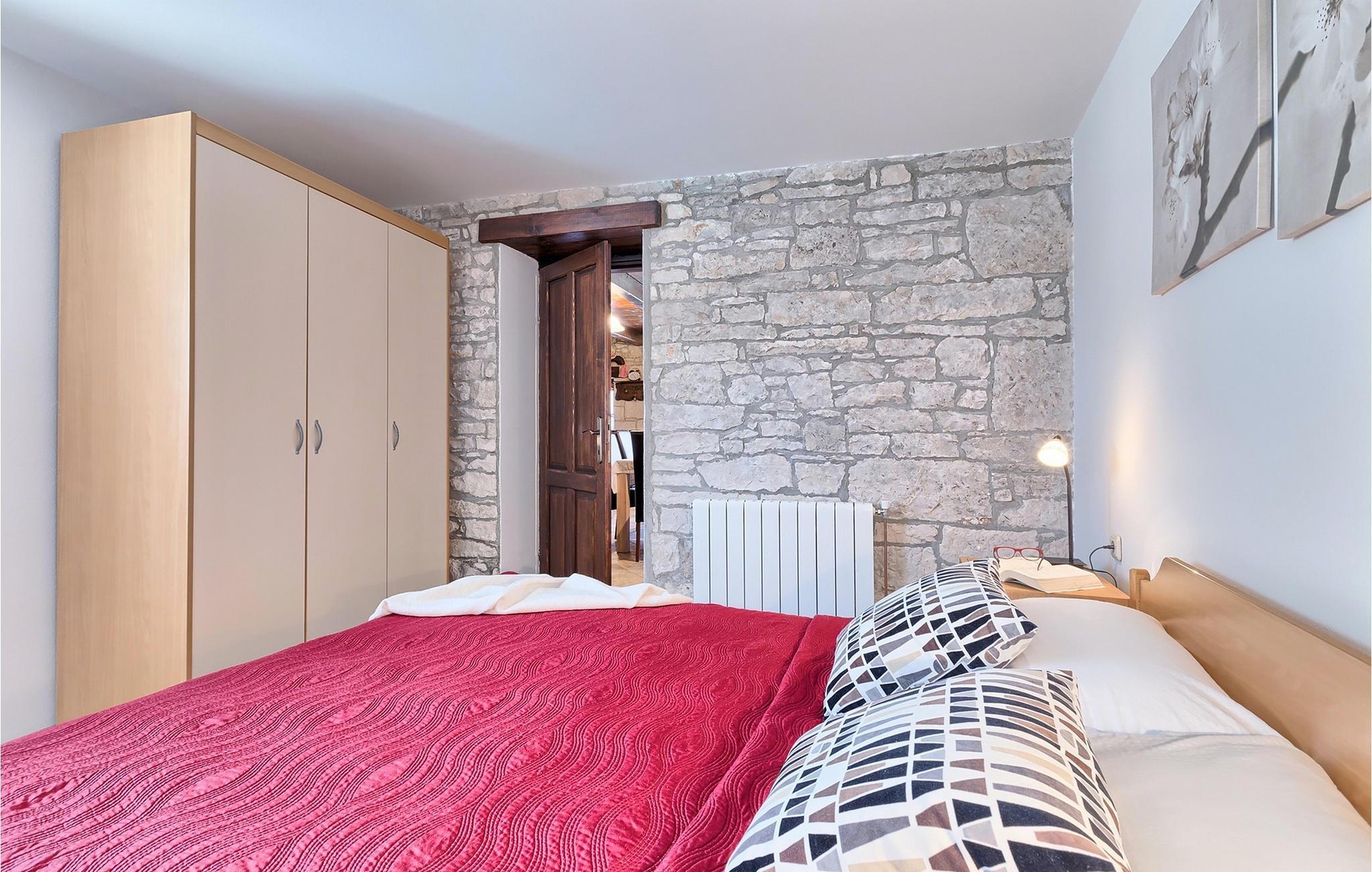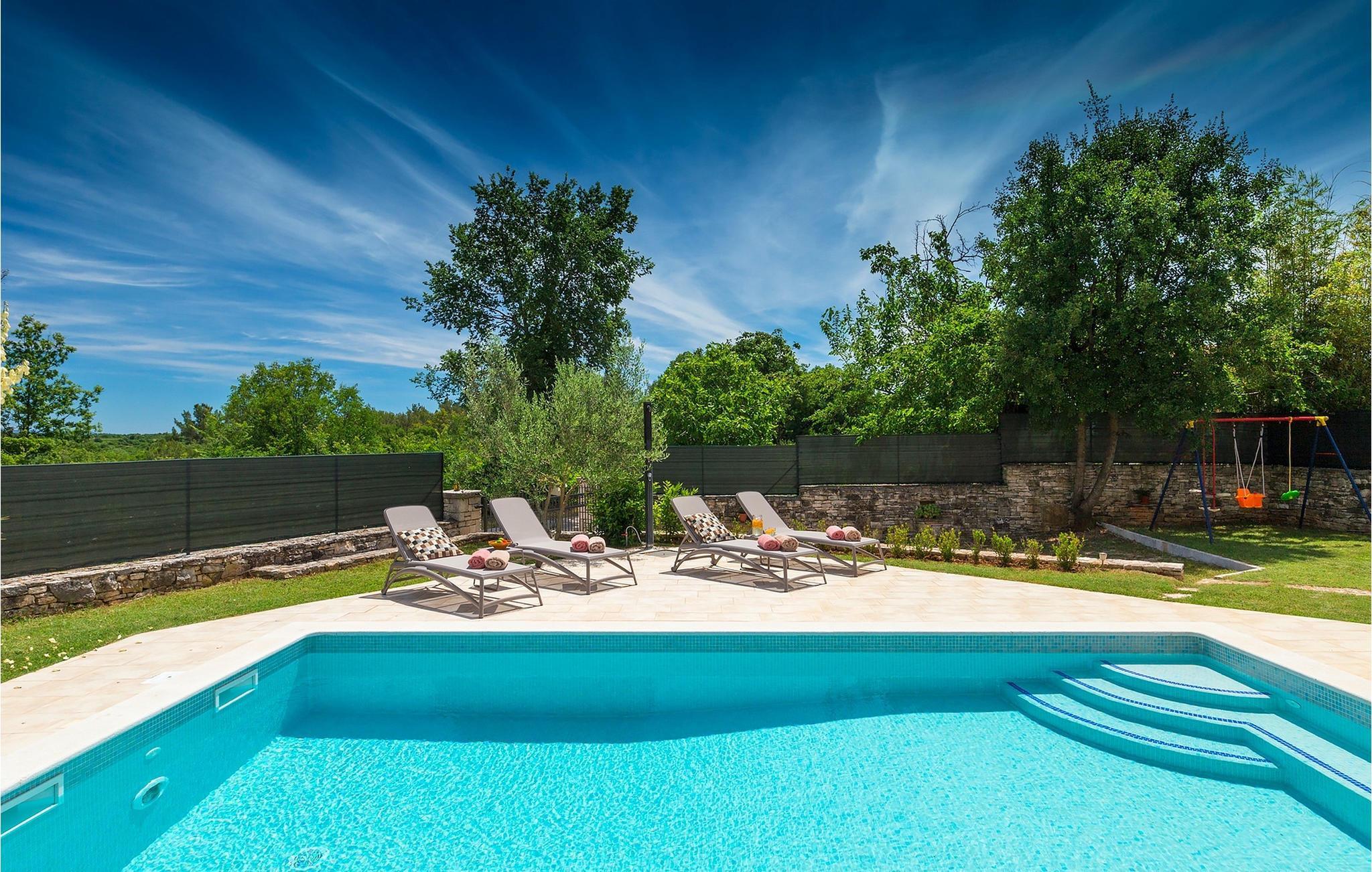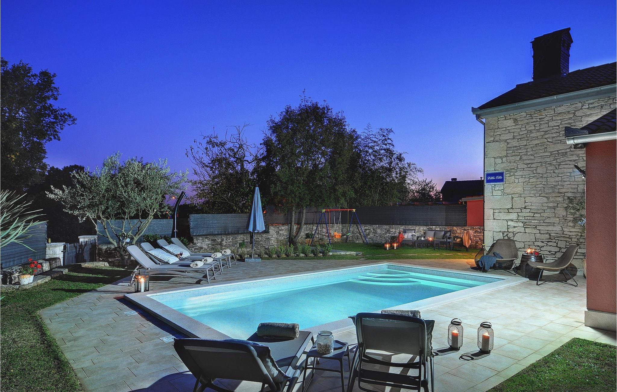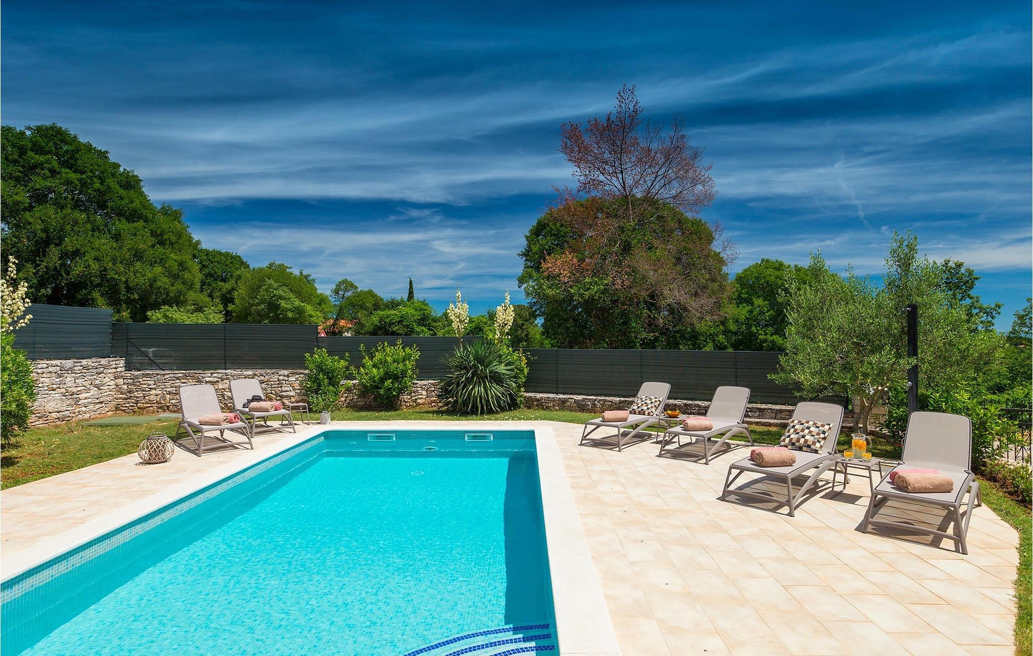 Diese charmante Villa wurde in 1860 gebaut und in 2010 komplett renoviert. Während der Renovierung wurde viel Wert darauf gelegt, den traditionellen Charme der Villa zu bewahren, sowohl im Innenraum als auch im Garten. Im Erdgeschoß finden Sie einen offenen Wohn-/Essbereich, in dem Holzbalken und offene Steinwände eine warme und einladende Atmosphäre schaffen. Für Saison 2018 ist eine Renovierung des Wohnzimmers vorgesehen. Der Kamin wird nicht mehr in diesem Raum sein. Im Erdgeschoß finden Sie auch das gemütliche Schlafzimmer mit Doppelbett, einem eigenen Badezimmer und schönem Blick auf den Poolbereich. 2 weitere Schlafzimmer, die über Klimaanlage und TV verfügen, befinden sich auf ersten Etage. Im ersten Stock gibt es noch ein weiteres Badezimmer. Mit insgesamt 3 Schlafzimmern und einem ausziehbaren Sofabett kann die Villa insgesamt 8 Personen beherbergen. Der Außenbereich ist auch bezaubernd: hier befindet sich der private Pool, der vom sorgfältig gepflegten Garten umgeben ist. Weiterhin können Sie im Garten leckere Mahlzeiten auf dem Grill zubereiten und im Freien essen, während Sie gleichzeitig die Friedlichkeit der istrischen Landschaft genießen. Den jüngsten Gästen steht der private Kinderspielplatz zur Verfügung.Diese wunderschöne Villa liegt inmitten der herrlichen hügeligen Landschaft Istriens ist aber zur gleichen Zeit nur einen Steinwurf vom smaragdblauen Meer und einsamen Kieselstränden der Adria entfernt. Eine sehr gute Pferderanch mit Trekking und Reiten in ihrem Angebot befindet sich gerade im Dorf Manjadvorci. Den Abenteurern stehen zur Verfügung ein großer Adrenalinpark nur 2 km von der Villa, ein Tauchzentrum in der schönen Bucht von Krnica (7 km entfernt), sowie zahlreiche verschiedene Wander- und Radwege in der Nähe der Villa. Hier gibt es eine große Auswahl an Gourmetgerichten zubereitet mit köstlichen lokalen Erzeugnissen, was bedeutet, dass Sie nie weit gehen werden müssen, um ein hervorragendes Essen zu finden. Ihre Lebensmitteln können Sie auch direkt von den lokalen Herstellern kaufen. Um die letzte Zutat zu dieser reichen Vielfalt an Aktivitäten hinzuzufügen, liegen die historische Stadt Pula, die für ihr atemberaubendes Kolosseum weltberühmt ist, und die lebendigen touristischen Hot Spots nur wenige Fahrminuten entfernt, sowie die Fähren für eine Tour um die atemberaubend schönen umliegenden Inseln.