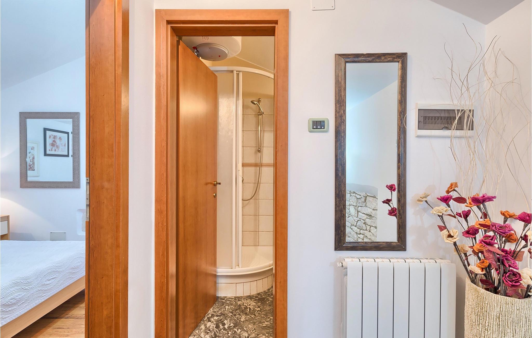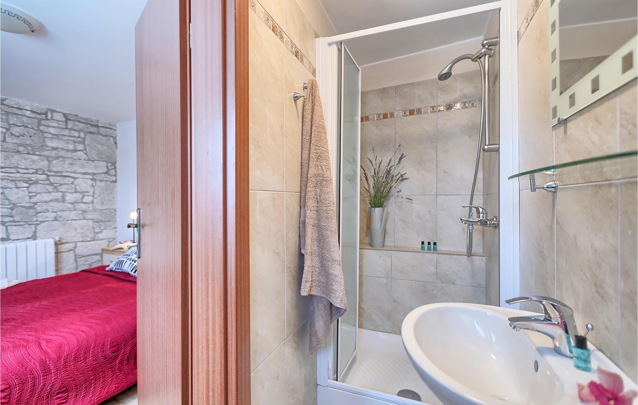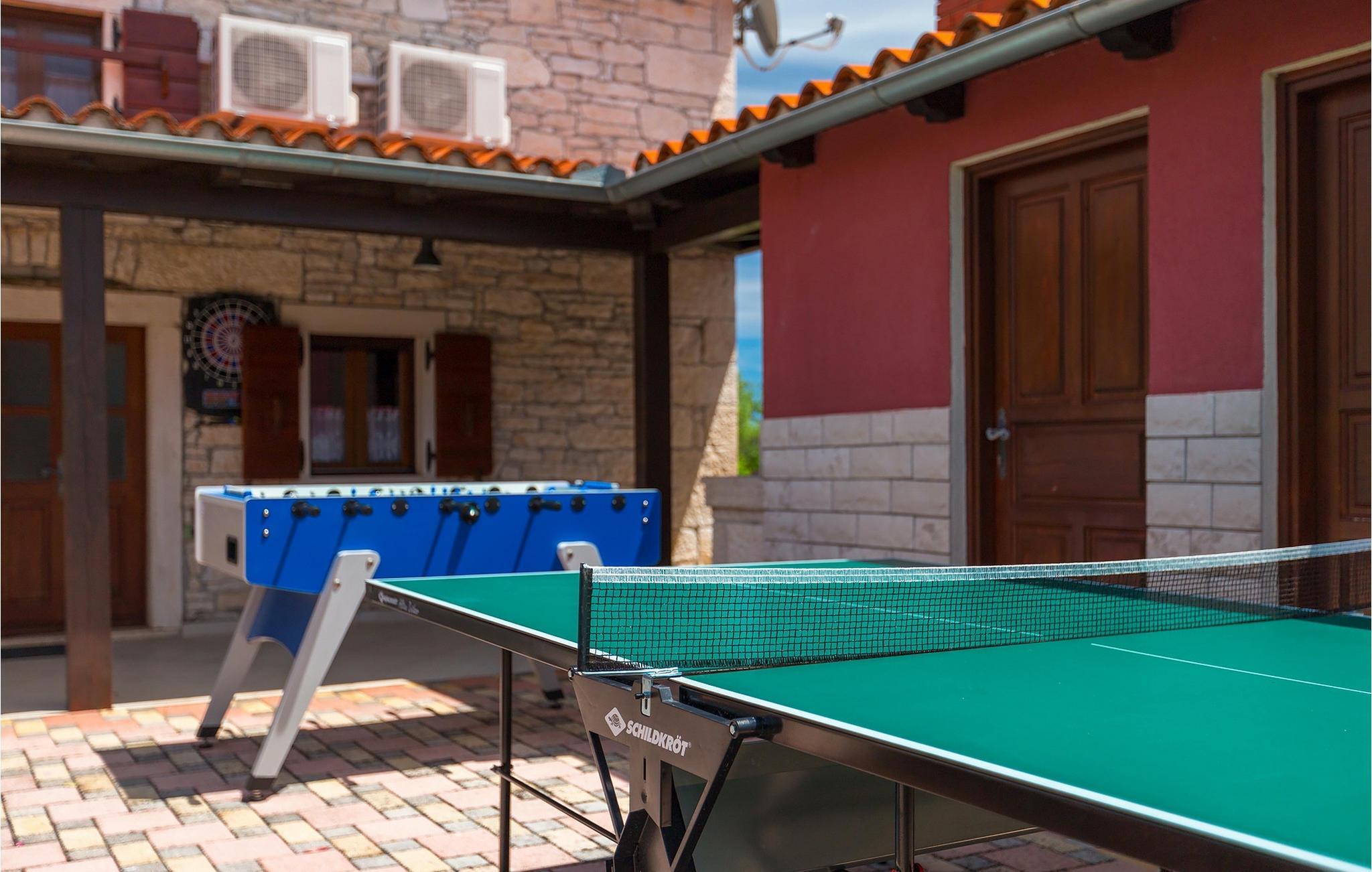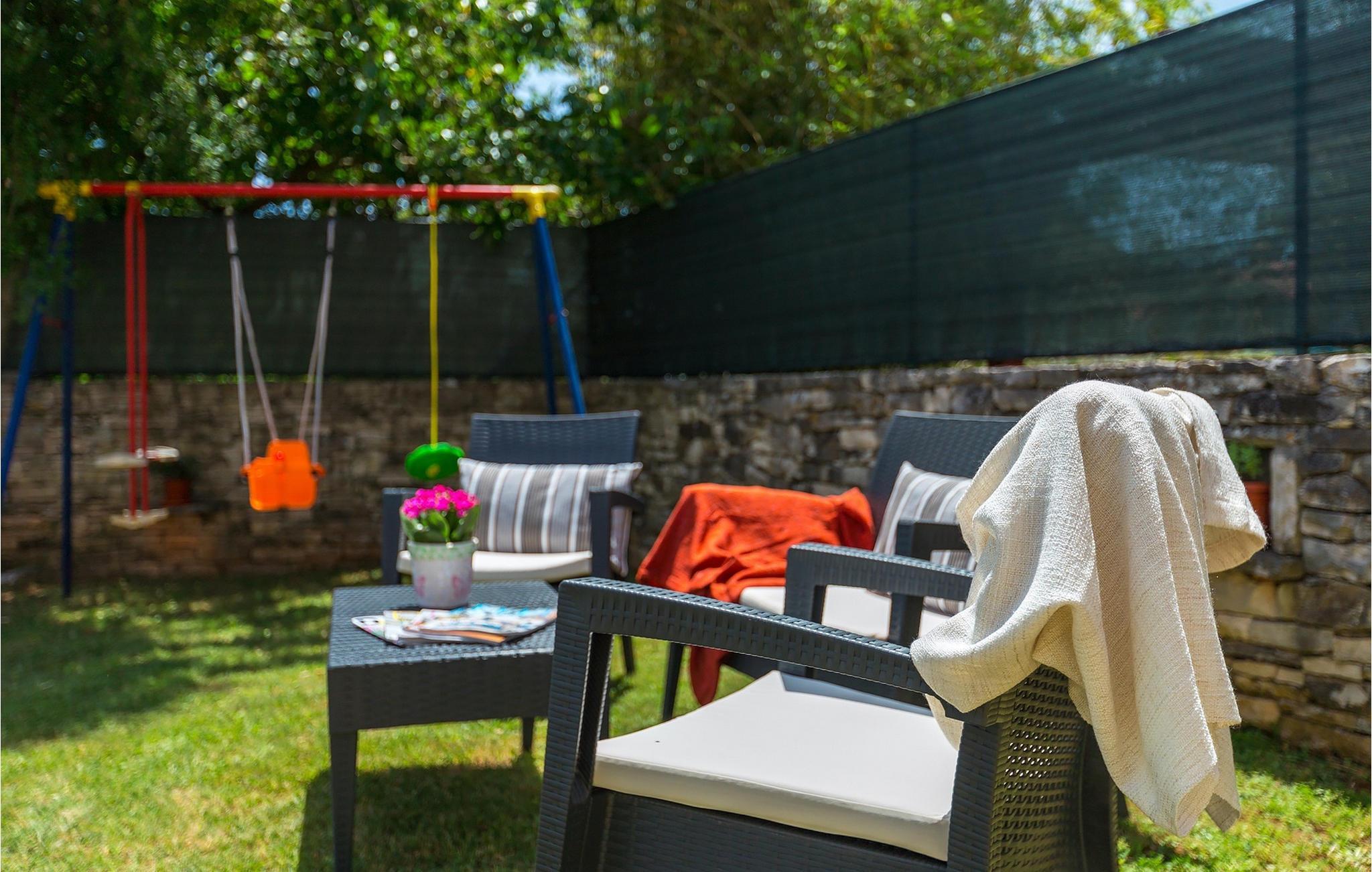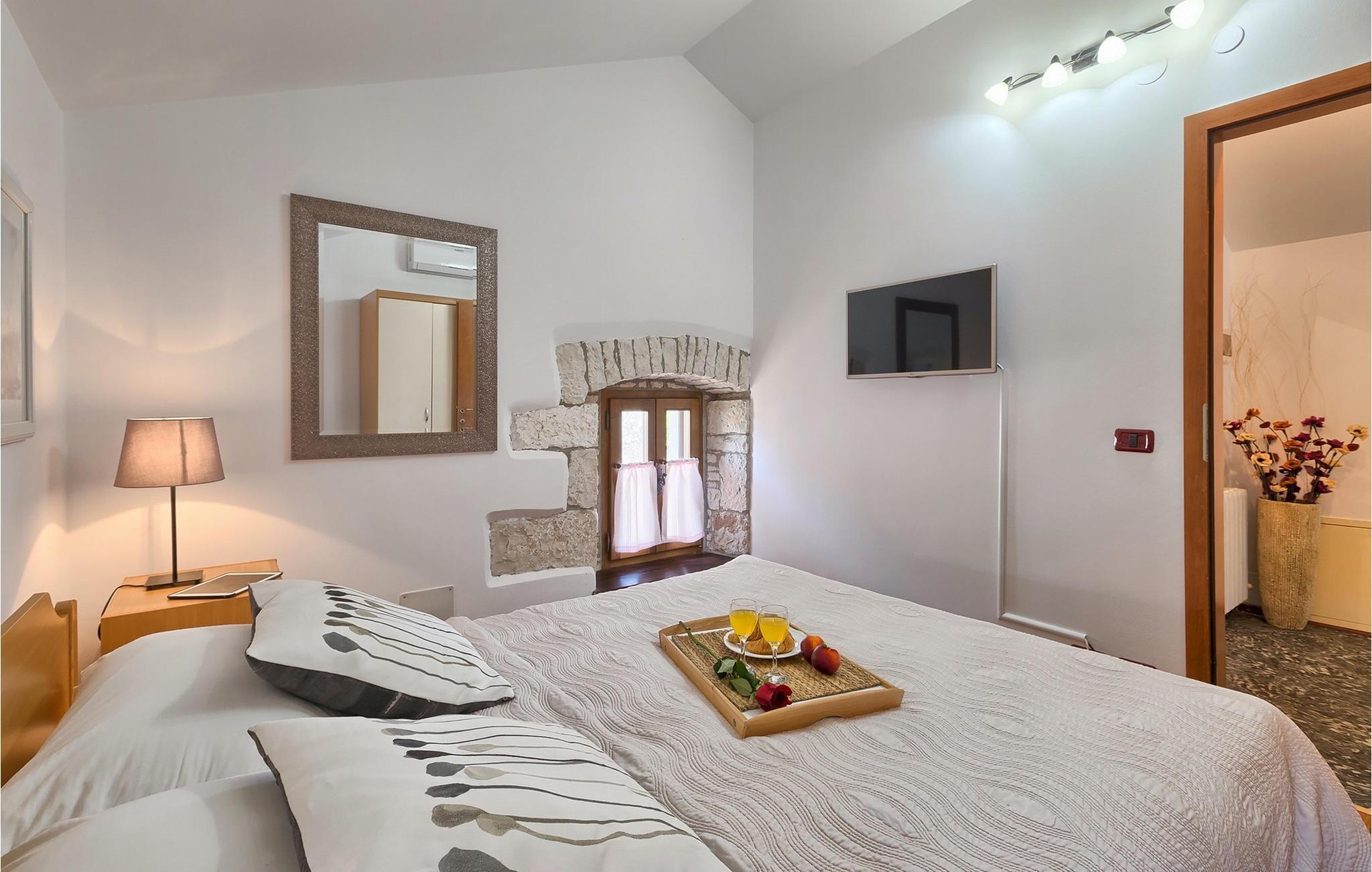 Diese charmante Villa wurde in 1860 gebaut und in 2010 komplett renoviert. Während der Renovierung wurde viel Wert darauf gelegt, den traditionellen Charme der Villa zu bewahren, sowohl im Innenraum als auch im Garten. Im Erdgeschoß finden Sie einen offenen Wohn-/Essbereich, in dem Holzbalken und offene Steinwände eine warme und einladende Atmosphäre schaffen. Für Saison 2018 ist eine Renovierung des Wohnzimmers vorgesehen. Der Kamin wird nicht mehr in diesem Raum sein. Im Erdgeschoß finden Sie auch das gemütliche Schlafzimmer mit Doppelbett, einem eigenen Badezimmer und schönem Blick auf den Poolbereich. 2 weitere Schlafzimmer, die über Klimaanlage und TV verfügen, befinden sich auf ersten Etage. Im ersten Stock gibt es noch ein weiteres Badezimmer. Mit insgesamt 3 Schlafzimmern und einem ausziehbaren Sofabett kann die Villa insgesamt 8 Personen beherbergen. Der Außenbereich ist auch bezaubernd: hier befindet sich der private Pool, der vom sorgfältig gepflegten Garten umgeben ist. Weiterhin können Sie im Garten leckere Mahlzeiten auf dem Grill zubereiten und im Freien essen, während Sie gleichzeitig die Friedlichkeit der istrischen Landschaft genießen. Den jüngsten Gästen steht der private Kinderspielplatz zur Verfügung.Diese wunderschöne Villa liegt inmitten der herrlichen hügeligen Landschaft Istriens ist aber zur gleichen Zeit nur einen Steinwurf vom smaragdblauen Meer und einsamen Kieselstränden der Adria entfernt. Eine sehr gute Pferderanch mit Trekking und Reiten in ihrem Angebot befindet sich gerade im Dorf Manjadvorci. Den Abenteurern stehen zur Verfügung ein großer Adrenalinpark nur 2 km von der Villa, ein Tauchzentrum in der schönen Bucht von Krnica (7 km entfernt), sowie zahlreiche verschiedene Wander- und Radwege in der Nähe der Villa. Hier gibt es eine große Auswahl an Gourmetgerichten zubereitet mit köstlichen lokalen Erzeugnissen, was bedeutet, dass Sie nie weit gehen werden müssen, um ein hervorragendes Essen zu finden. Ihre Lebensmitteln können Sie auch direkt von den lokalen Herstellern kaufen. Um die letzte Zutat zu dieser reichen Vielfalt an Aktivitäten hinzuzufügen, liegen die historische Stadt Pula, die für ihr atemberaubendes Kolosseum weltberühmt ist, und die lebendigen touristischen Hot Spots nur wenige Fahrminuten entfernt, sowie die Fähren für eine Tour um die atemberaubend schönen umliegenden Inseln.