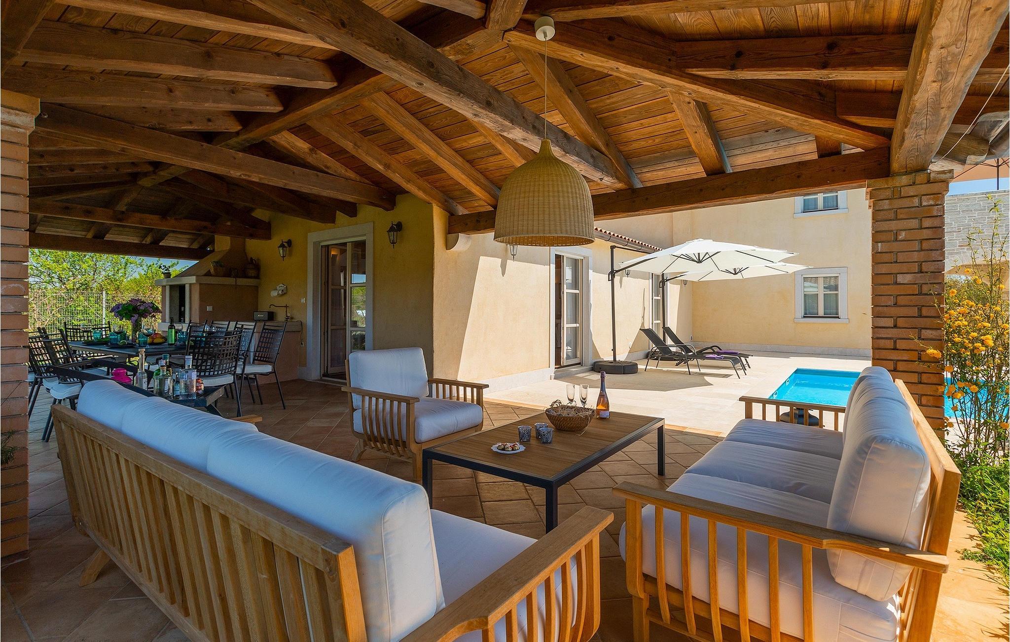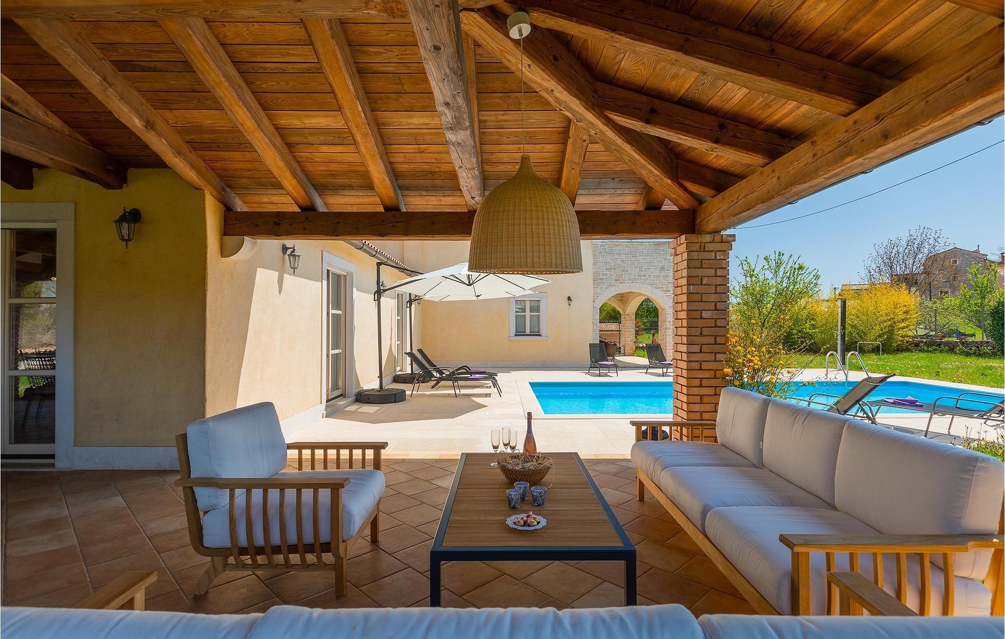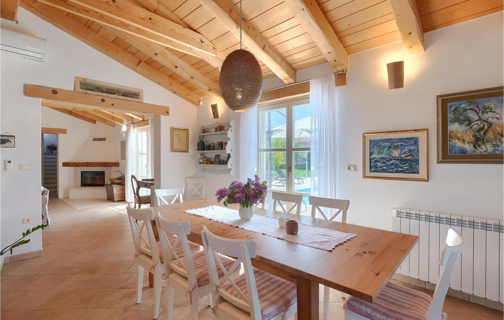Die schöne Villa Lavanda Savicenta befindet sich in dem kleinen Weiler Rojnici, in der Gemeinde Barban. Die Familienvilla kann insgesamt bis zu 10 Personen beherbergen. Das Erdgeschoss besteht aus einem geräumigen Wohnzimmer mit Kamin, einem Essbereich, einer voll ausgestatteten Küche und zwei Schlafzimmern mit eigenem Bad. Im Obergeschoss finden Sie zwei weitere Schlafzimmer, ebenfalls mit eigenem Bad. Insgesamt verfügt die Villa über 4 Schlafzimmer, von denen zwei mit einem Doppelbett und die anderen beiden mit zwei Einzelbetten ausgestattet sind. Vor der Villa befindet sich ein 40m2 großer privater Pool, in dem Sie ein erfrischendes Bad nehmen oder auf einer der bequemen Sonnenliegen entspannen können. Neben dem Poolbereich befindet sich ein überdachter Essbereich mit einem Holzkohlegrill, wo Sie köstliche Mahlzeiten für Ihre Familie und Freunde zubereiten können. Die Villa ist die perfekte Wahl für eine große Familie mit Kindern oder eine Gruppe von Freunden, die einen entspannten Urlaub in Istrien verbringen möchten.Die charmante Villa befindet sich in einem kleinen Dorf Rojnici, in der Gemeinde Barban. Alle notwendigen Einrichtungen wie Geschäfte, Cafés und Restaurants befinden sich in der Nähe der Villa. Wenn Sie Ihren Urlaub an der türkisfarbenen Adria verbringen möchten, ist der erste Strand 18 Kilometer entfernt in Trget. Die Lage der Villa ist ein idealer Ausgangspunkt für viele Tagesausflüge. Wir empfehlen Ihnen, Küstenstädte wie Pula mit seinem prächtigen Amphitheater, Rovinj mit seinen vielen bunten Häusern und Porec mit seiner Euphrasius-Basilika, die zum UNESCO-Kulturerbe gehört, zu besuchen. Ein unverzichtbares Ziel für alle Naturliebhaber ist der einzige Nationalpark in Istrien, die Brijuni. Dieser magische Ort wird Sie mit schönen Stränden, unberührter Natur und zahlreichen Wildtieren begeistern. Zentralistrien ist ideal für alle Liebhaber des aktiven Sports und der Gastronomie. Besuchen Sie das Tal des Flusses Mirna und zahlreiche Städte auf den Hügeln, wie Motovun, Grožnjan und Buzet.