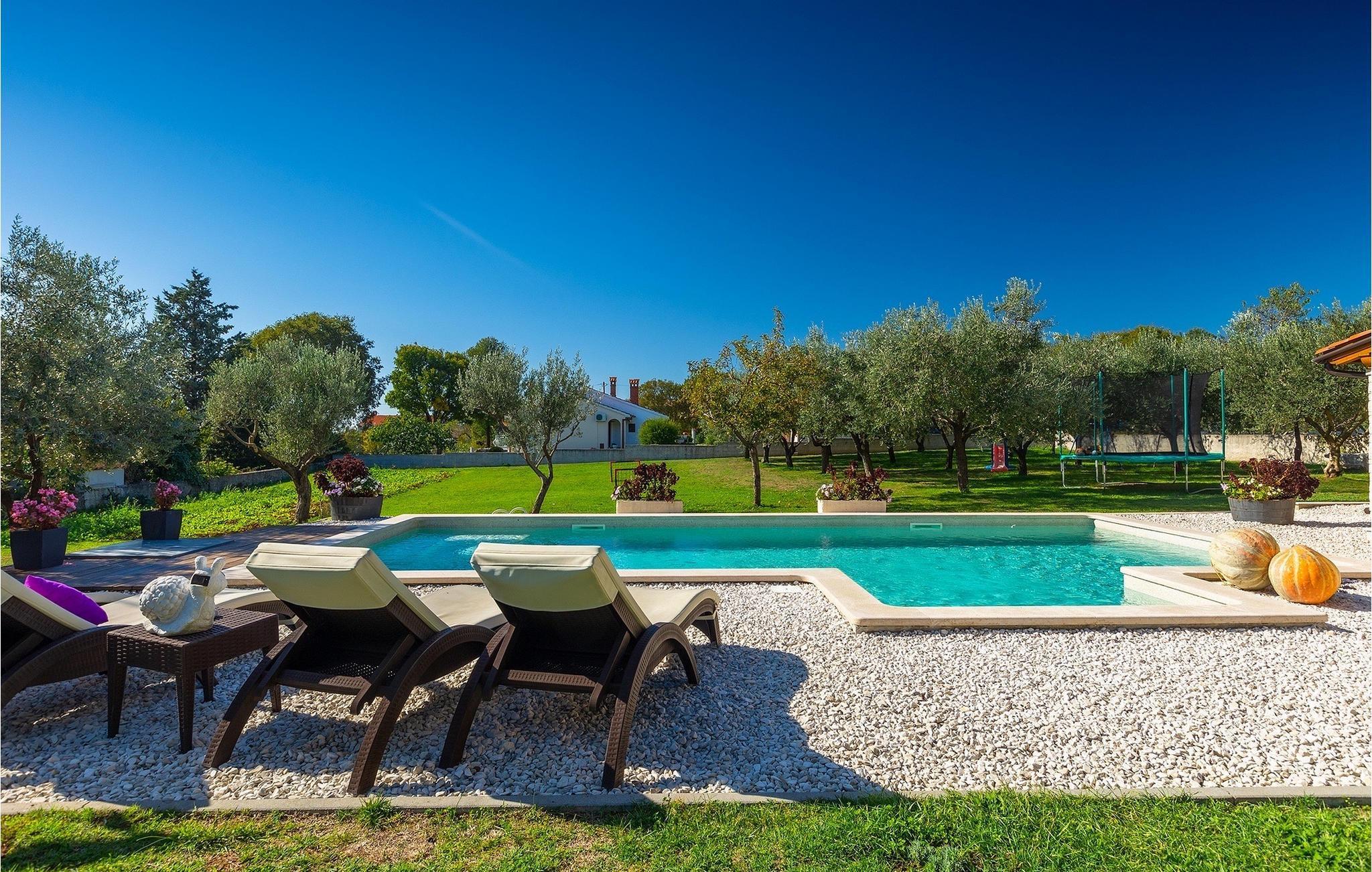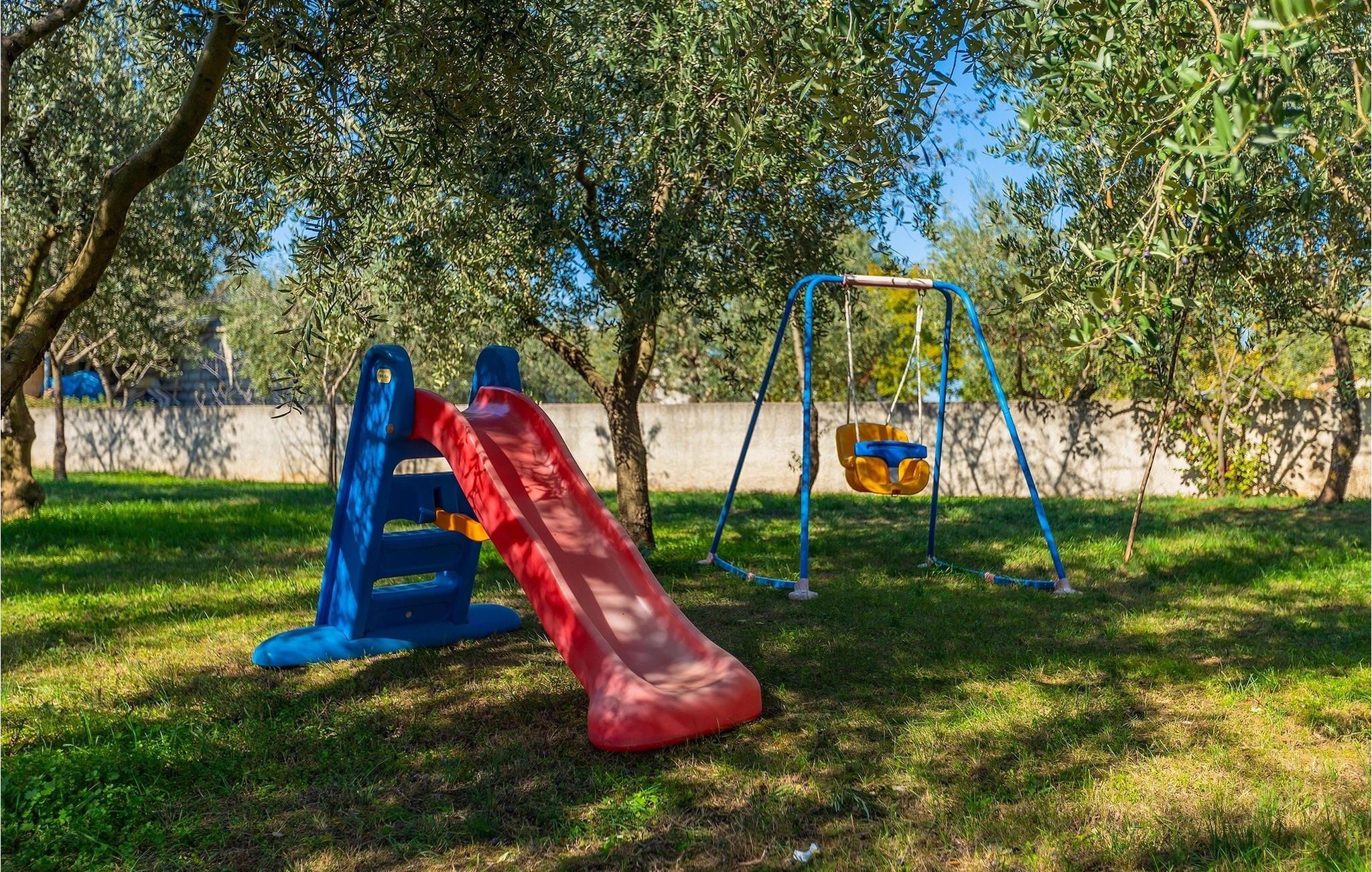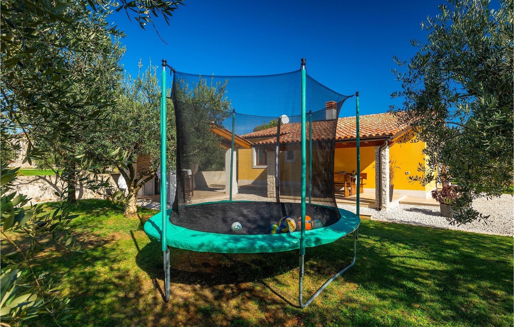 Genießen Sie also sonnige Morgen mit Kaffee in der Hand auf den Gartenmöbeln im Hof. Bei schönem Wetter bietet der Hof auch andere Möglichkeiten, Zeit im Freien zu verbringen. Wenn Sie gemeinsam eine Mahlzeit zubereiten möchten, stehen Ihnen unter dem Vordach ein Gas- und ein Kohlegrill zur Verfügung. Danach können Sie die Mahlzeit am Esstisch unter der überdachten Terrasse genießen, in einem von Pflanzen umgebenen Umfeld, das Ihr Erlebnis einer friedlichen Oase abrundet. Aber auch für Kinder, die aktiv sein wollen, gibt es viele Möglichkeiten - Fußball spielen auf der Wiese, den Spielplatz unter den Bäumen genießen oder auf dem Trampolin springen!Puntera ist ein ruhiger Ort in der Gemeinde Barban im kontinentalen Teil Istriens. Aufgrund seiner Lage bietet Ihnen Puntera viele Möglichkeiten für verschiedene Aktivitäten. Mit einer kurzen Autofahrt können Sie Rovinj mit seinen charmanten, farbenfrohen Häusern oder die Hinterlassenschaften der Römerzeit in Pula besuchen. In dieser Gegend finden Sie viele charakteristische istrische Dörfer und Strände befinden sich entlang der Küstenstädte in der Nähe. Naturliebhaber können das Tal des Flusses Raša und die Stelle, an der er in das Adriatische Meer mündet, direkt unterhalb von Puntera besuchen. Erwecken Sie Ihre Abenteuerlust bei einer Kajaksafari oder auf den Rad- und Wanderwegen. Für Pferdeliebhaber gibt es auch die Möglichkeit, auf Bergpfaden zu reiten und mit Pferden zu schwimmen.