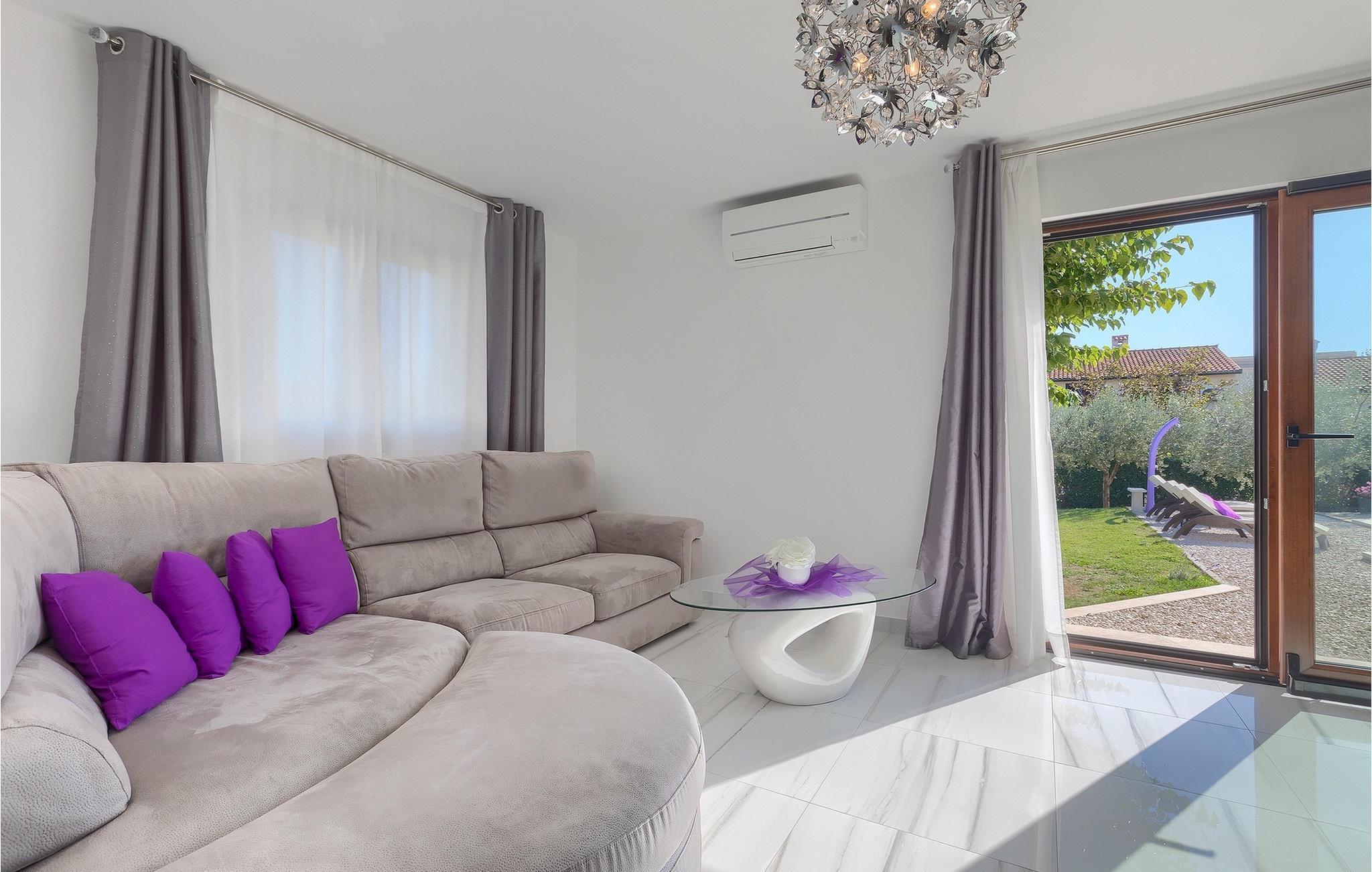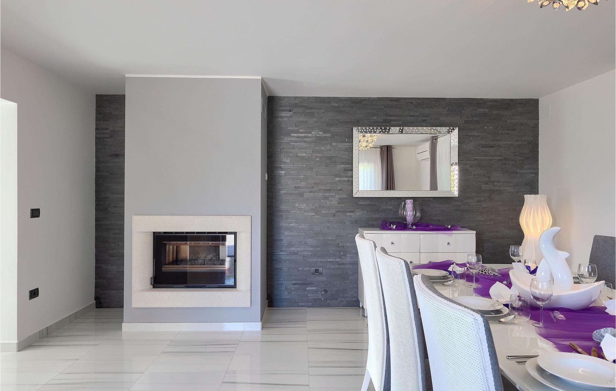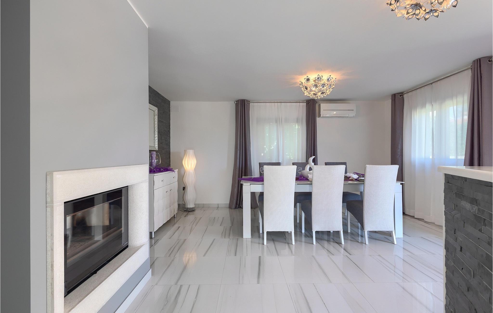Familien mit Kindern oder Personen mit eingeschränkter Mobilität werden die praktische Aufteilung dieser Villa besonders zu schätzen wissen, da alle Räume und Inhalte in unmittelbarer Nähe liegen. Komfort ist das wichtigste Urlaubsmotiv in diesem Haus, daher sind alle Zimmer klimatisiert. Zwei elegant eingerichtete Schlafzimmer mit TV sorgen für wohlverdiente Ruhe und gleich neben diesen, befinden sich auch zwei moderne Badezimmer. Die sorgfältig gestaltete Einrichtung dieser Villa erstreckt sich über das gesamte Haus und sticht besonders durch den offenen Grundriss des Esszimmers und der voll ausgestatteten Küche hervor. Der Kamin im Esszimmer steht Ihnen an kälteren Tagen zum Heizen, aber auch ansonsten zum Genießen einer besonderen Atmosphäre zur Verfügung. Die Helligkeit und Frische des Wohnzimmers wird durch eine Glastür gewährleistet, die vom Wohnzimmer aus einen direkten Zugang zum Hof ??ermöglicht.