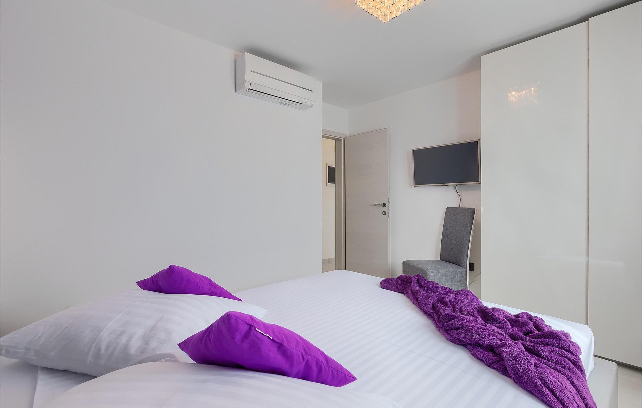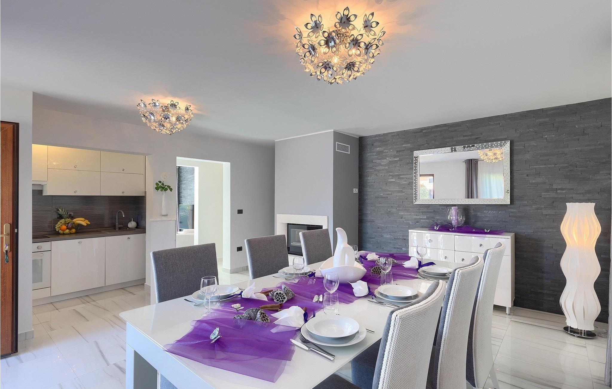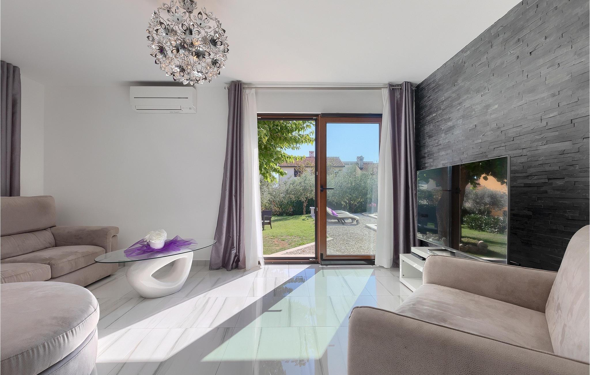 Familien mit Kindern oder Personen mit eingeschränkter Mobilität werden die praktische Aufteilung dieser Villa besonders zu schätzen wissen, da alle Räume und Inhalte in unmittelbarer Nähe liegen. Komfort ist das wichtigste Urlaubsmotiv in diesem Haus, daher sind alle Zimmer klimatisiert. Zwei elegant eingerichtete Schlafzimmer mit TV sorgen für wohlverdiente Ruhe und gleich neben diesen, befinden sich auch zwei moderne Badezimmer. Die sorgfältig gestaltete Einrichtung dieser Villa erstreckt sich über das gesamte Haus und sticht besonders durch den offenen Grundriss des Esszimmers und der voll ausgestatteten Küche hervor. Der Kamin im Esszimmer steht Ihnen an kälteren Tagen zum Heizen, aber auch ansonsten zum Genießen einer besonderen Atmosphäre zur Verfügung. Die Helligkeit und Frische des Wohnzimmers wird durch eine Glastür gewährleistet, die vom Wohnzimmer aus einen direkten Zugang zum Hof ??ermöglicht.