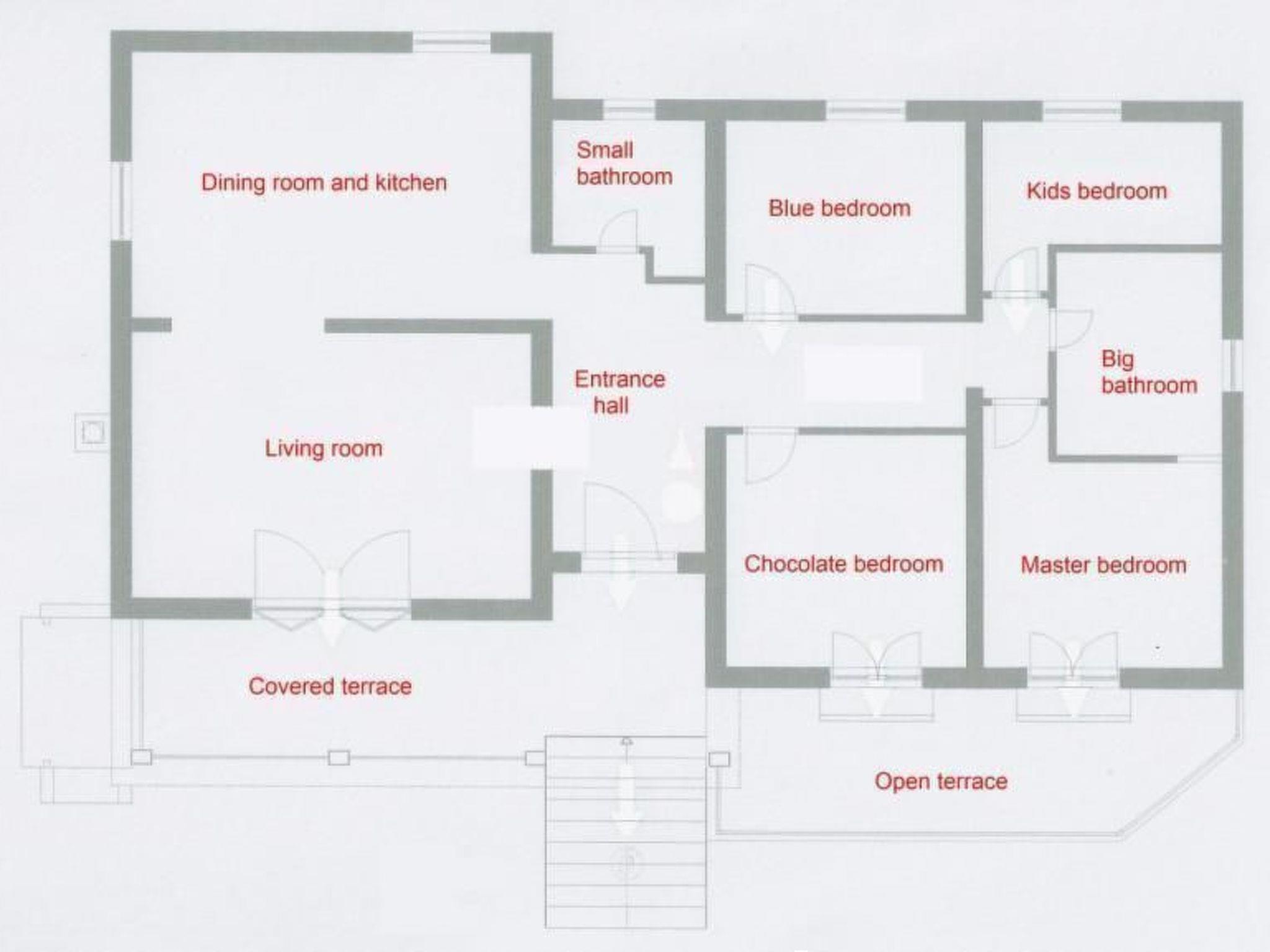 Die Ferienwohnung bietet alles, was Sie zu einem komfortablen Aufenthalt benötigen, wie eine komplett ausgestattete Küche, zwei Badezimmer, eines mit Dusche und eines mit Whirlpool, und vier Schlafzimmer mit vier großen Betten (drei Betten mit 200x90cm und ein französisches Bet mit 200x160cm). Zwei weitere Schlafmöglichkeiten bietet die bequeme Schlafcouch.