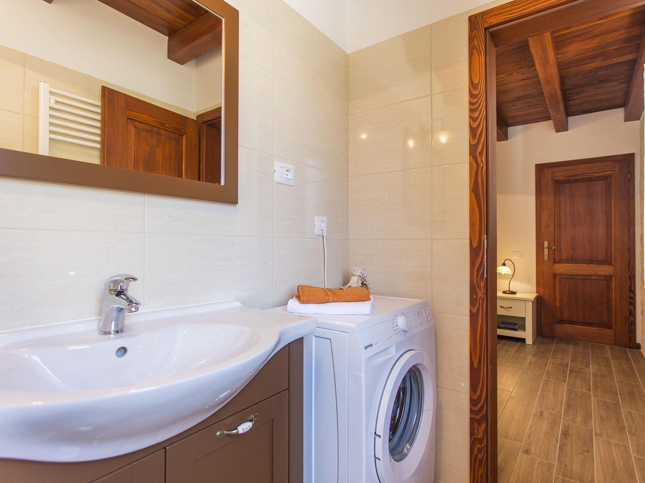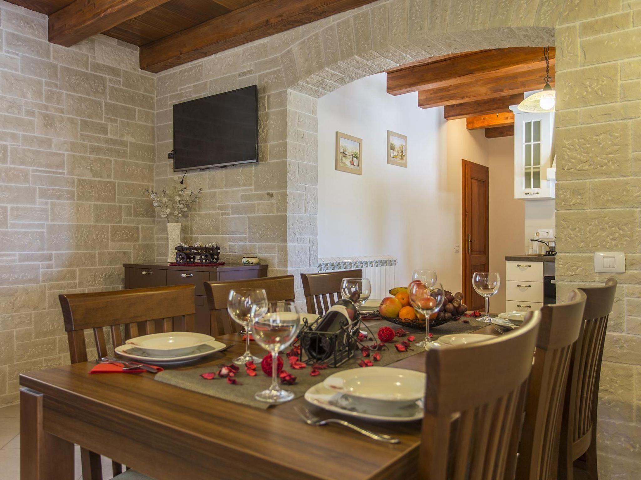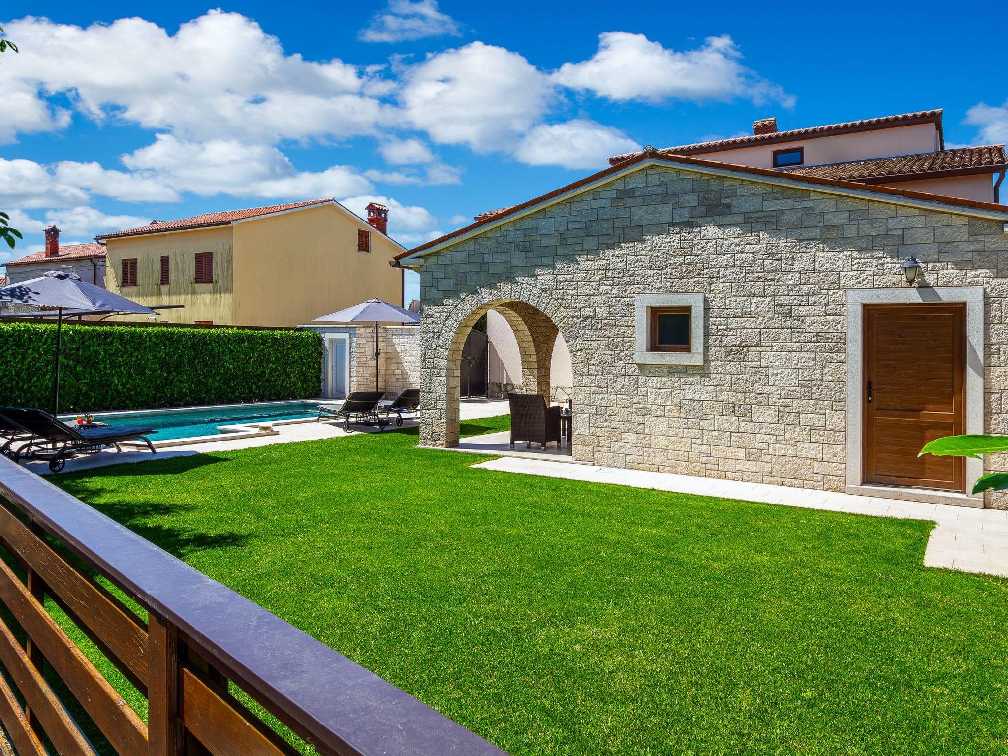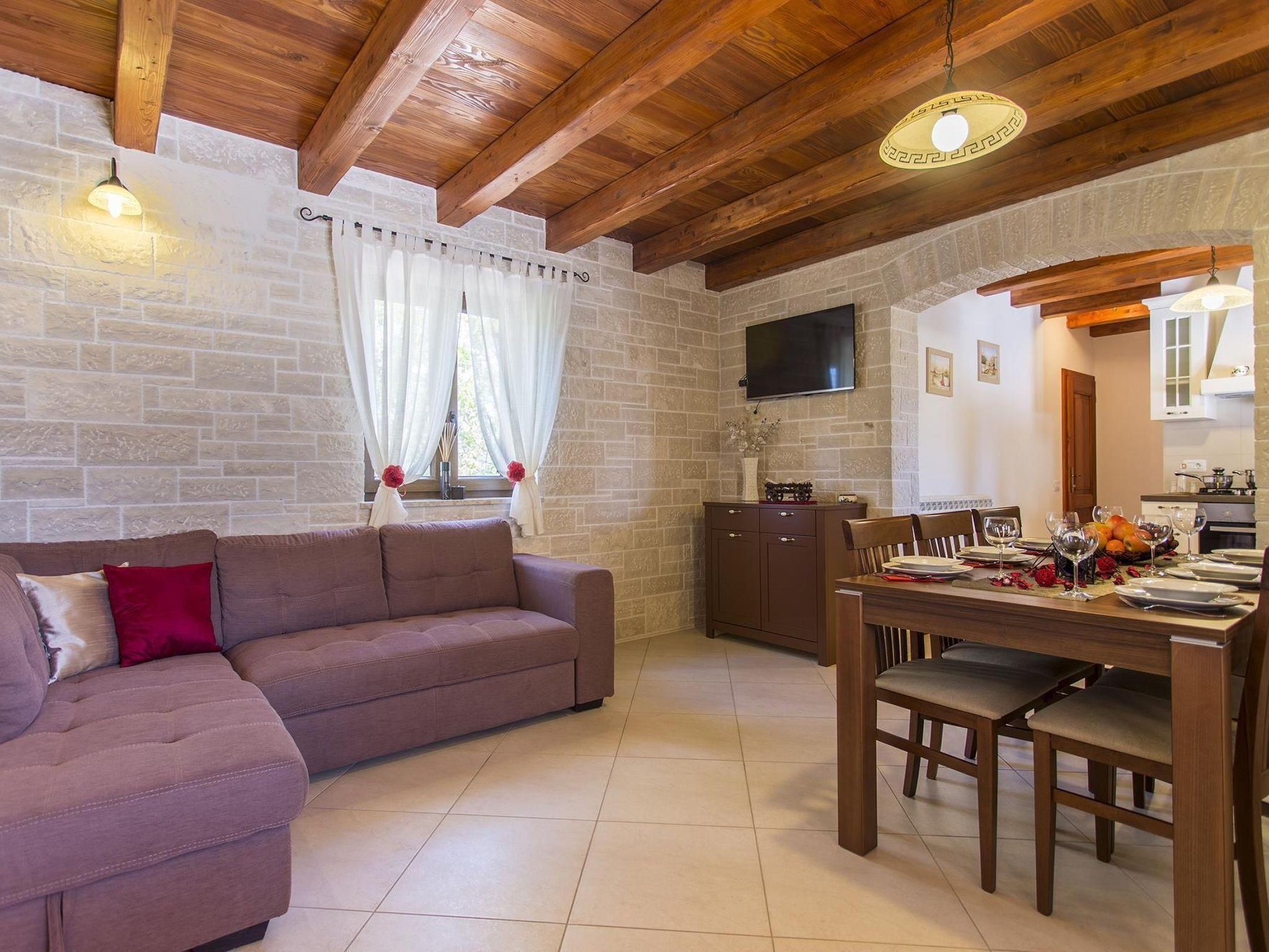 Die Steinvilla und das anliegende Ferienhaus wurden erst kürzlich im Jahre 2012 im traditionellen istrischen Stil neu erbaut. Das 77m² große Ferienhaus ist geschmackvoll eingerichtet und verfügt über alle modernen Annehmlichkeiten, um Ihren Aufenthalt so angenehm wie möglich zu machen. Im ganzen Haus befinden sich rustikale Holzbalken an den Decken, die eine warme und gemütliche Atmosphäre schaffen. Das Ferienhaus bietet einen großzügigen Wohn- und Essbereich, eine vollständig ausgestattete Küche, zwei Schlafzimmer und zwei Badezimmer. Der klimatisierte (Kühlung und Heizung) Wohnbereich ist mit einem Sechssitzer-Ecksofa, einem an die Wand befestigten Flachbildfernseher mit Satellitenempfang, einem Safe, in dem Sie Ihre Wertsachen aufbewahren können, und einem großen Esstisch aus Holz mit sechs passenden Stühlen ausgestattet. Durch einen großen Durchgang gelangen Sie vom Wohnbereich in die moderne Einbauküche, die eine Spülmaschine, einen Vier Zonen Gasherd mit eleganter Abzugshaube, einen Ofen, Kühlschrank mit Gefrierfach, eine Mikrowelle, einen Wasserkocher und eine Kaffeemaschine bietet. Das Elternschlafzimmer verfügt über ein 180 cm x 200 cm großes Doppelbett und einen geräumigen Kleiderschrank, der genügend Platz für Ihre Kleidung und Ihr Gepäck bietet, und hat zudem sein eigenes en Suite Badezimmer. In dem hellen Tageslicht-Badezimmer finden Sie eine großzügige Duschkabine, einen Waschtisch mit Unterschrank und Wandspiegel, eine Toilette und eine Waschmaschine. Neben dem Elternschlafzimmer befindet sich das zweite Schlafzimmer, das mit einem Einbauschrank und zwei 90 cm x 200cm großen Einzelbetten ausgestattet ist, die Sie auch zu einem Doppelbett zusammenschieben können. Das zweite, separate, Badezimmer ist ebenfalls mit einer Duschkabine, einem Waschbecken und einer Toilette ausgestattet. Ein Babybett kann auf Anfrage zur Verfügung gestellt werden. Zuverlässiger WLAN Internetzugang wird Ihnen im Ferienhaus kostenlos geboten.