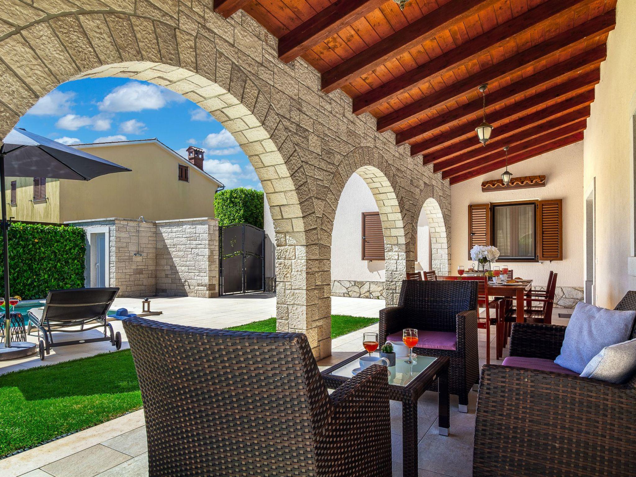 Dieses zeitgemäße Ferienhaus genießt eine ruhige Lage in dem kleinen malerischen Dörfchen Bicici in der Region Istarska im südlichen Teil Ostistriens, ein idealer Ort für einen entspannten Urlaub weit weg vom Touristenlärm.