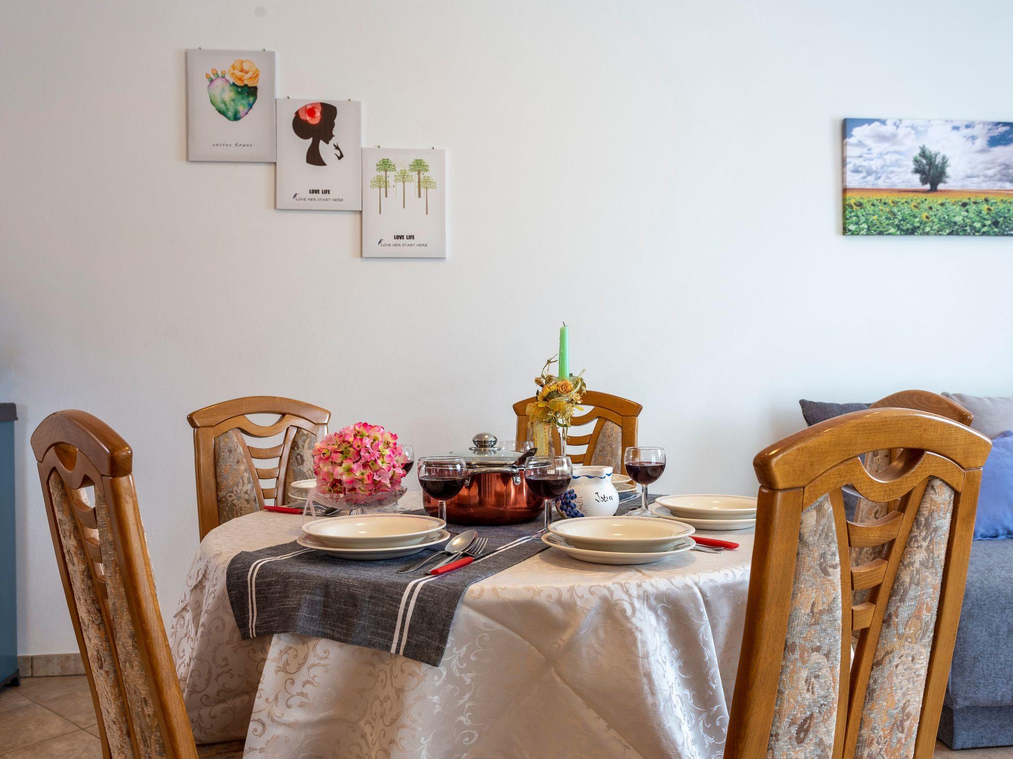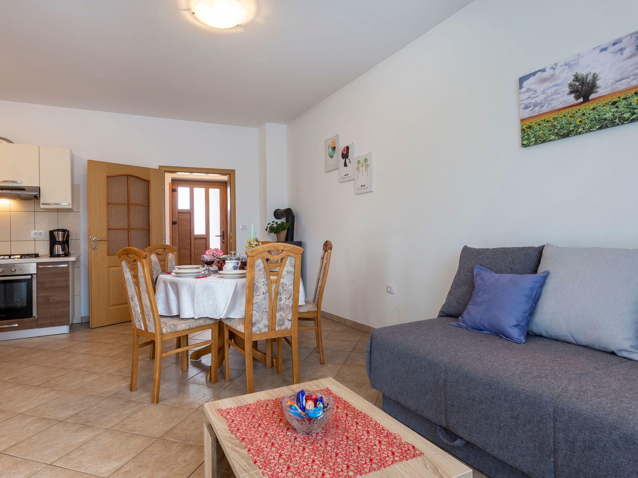 Im Inneren der Villa Mirela finden Sie eine wunderschöne Einrichtung, die Komfort mit Eleganz verbindet. Die Villa Mirela verfügt über zwei gemütliche Doppelschlafzimmer, die allen Gästen eine erholsame Nachtruhe garantieren. Das Herzstück des Hauses ist die einladende Küche, die mit modernen Annehmlichkeiten ausgestattet ist und an ein Esszimmer grenzt, das sich perfekt für gemeinsame Mahlzeiten eignet. Das Wohnzimmer, eine Mischung aus Stil und Komfort, bietet einen direkten Zugang zur Terrasse, so dass das Leben drinnen und draußen nahtlos ineinander übergehen. Die Klimaanlage und der WiFi-Internetanschluss sorgen für einen angenehmen Aufenthalt, so dass Sie sich jederzeit wohlfühlen.