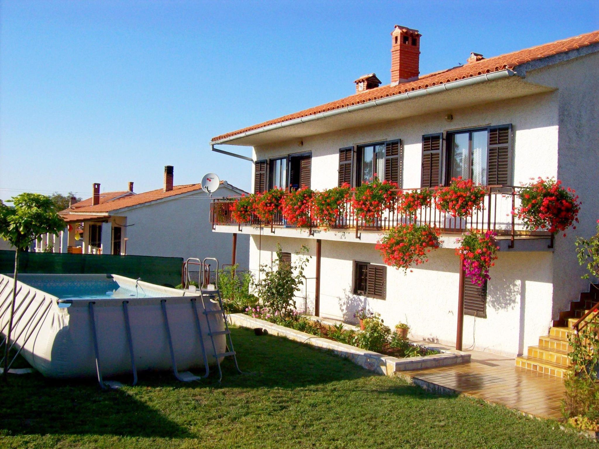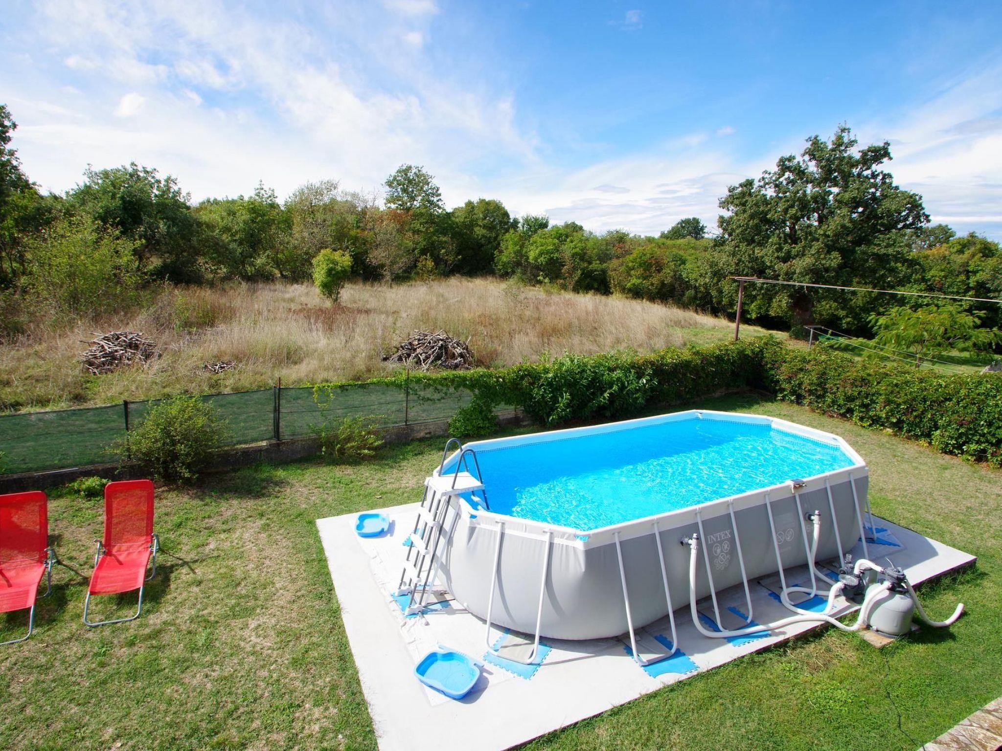 Der Außenbereich des Anwesens ist ebenso einladend, mit einem 1000 m2 großen eingezäunten Garten, der Privatsphäre und Sicherheit gewährleistet. Ein oberirdischer, herausnehmbarer Swimmingpool bietet schnelle Erfrischung, während Sitzmöbel und ein Grillplatz zum Essen und Entspannen im Freien einladen. Der Garten ist perfekt für diejenigen, die sich in der Ruhe ihres eigenen privaten Rückzugsortes entspannen möchten, und schafft einen ruhigen Ort, um die natürliche Schönheit Istriens zu genießen.