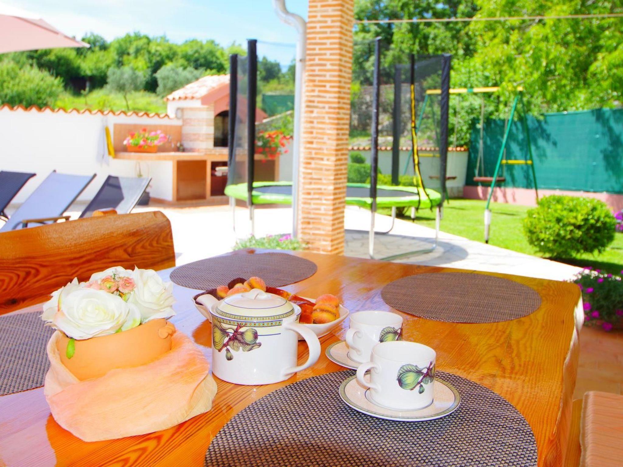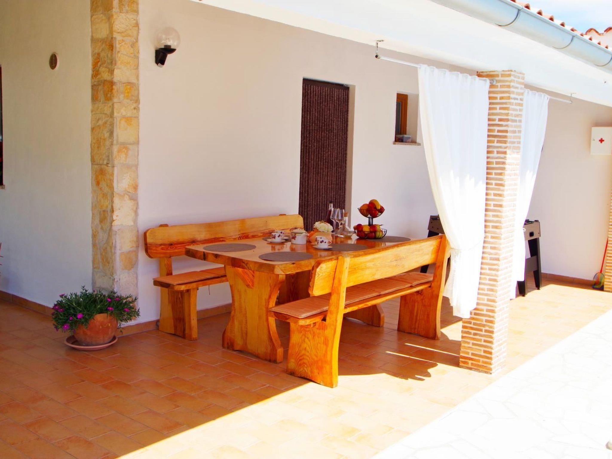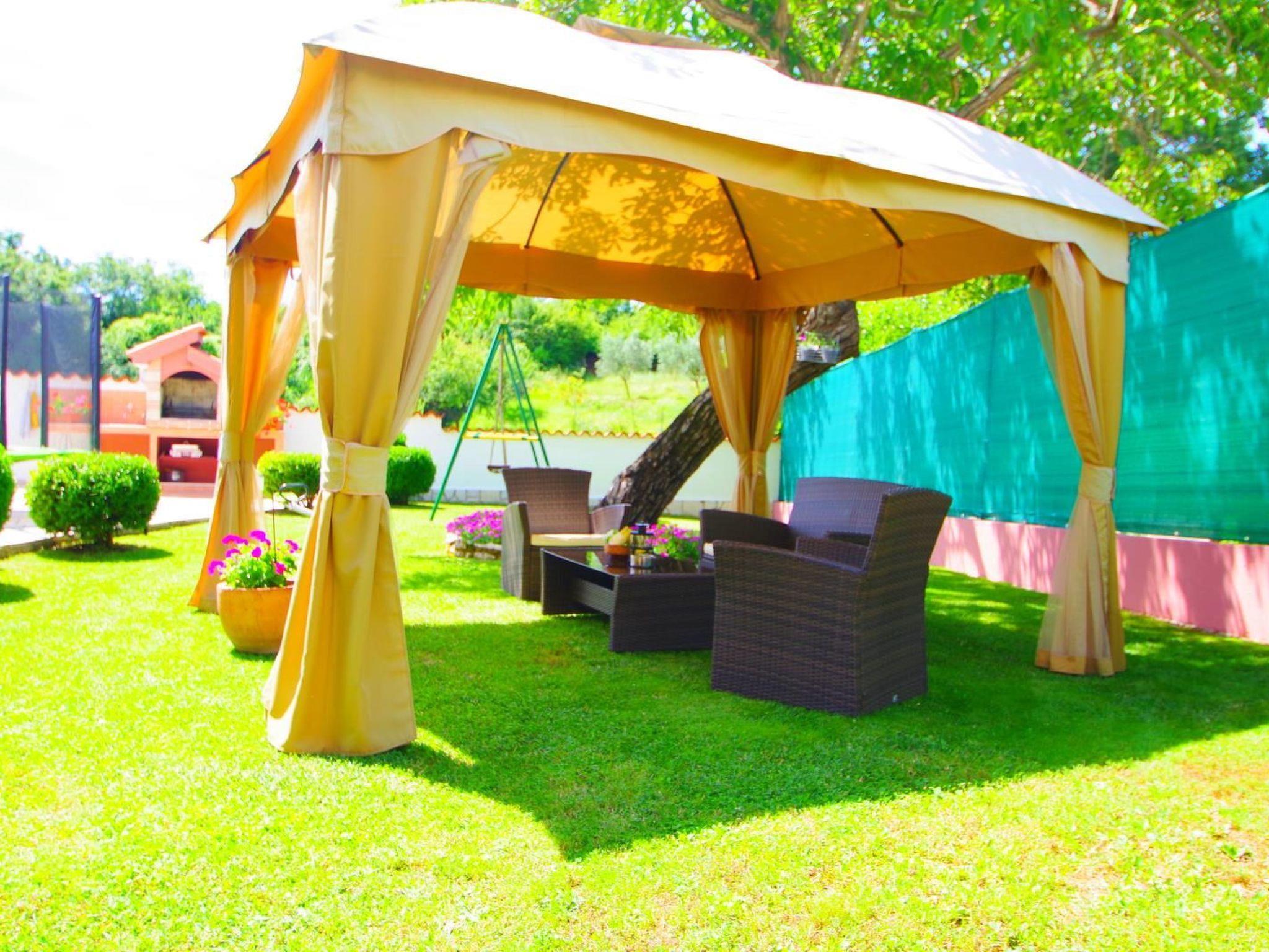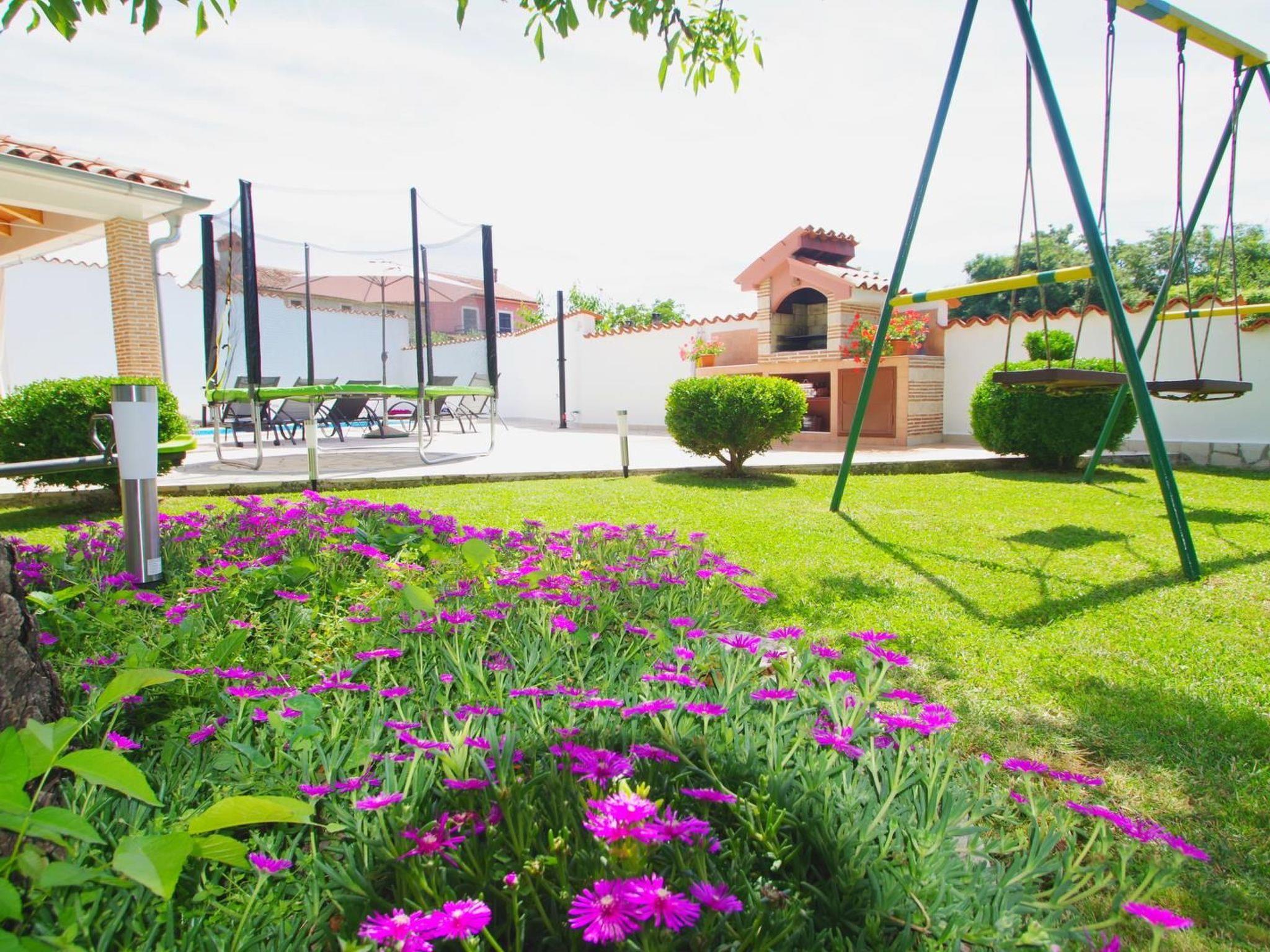Das Schwimmbad ist 25 m2 groß und 1,35 m tief, umgeben von 8 Sonnenliegen, Außendusche, Sonnenschirm und Grill.