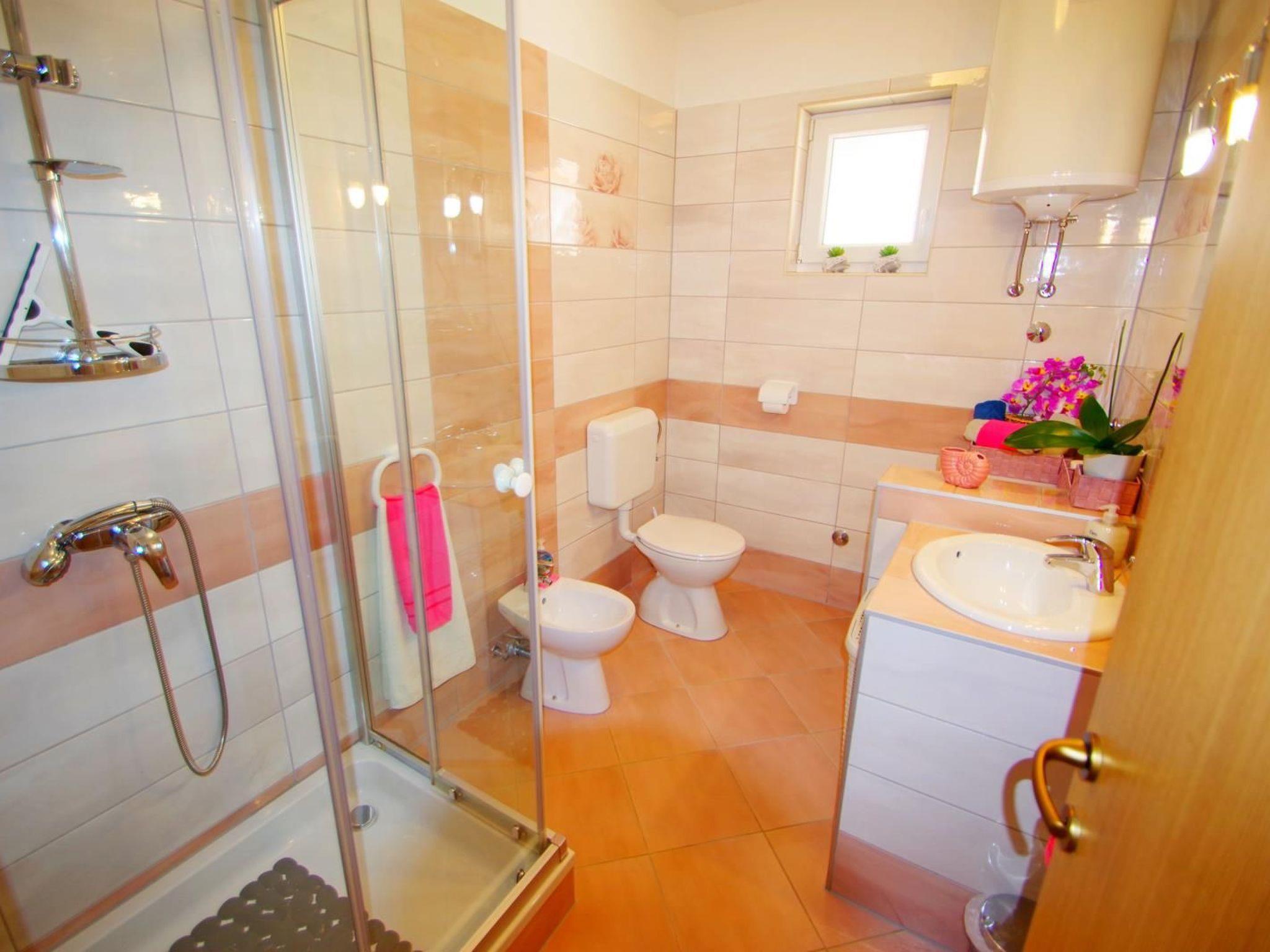 Erstes Badezimmer: Dusche, Toilette, Waschbecken, Bidet, Haartrockner, Waschmaschine