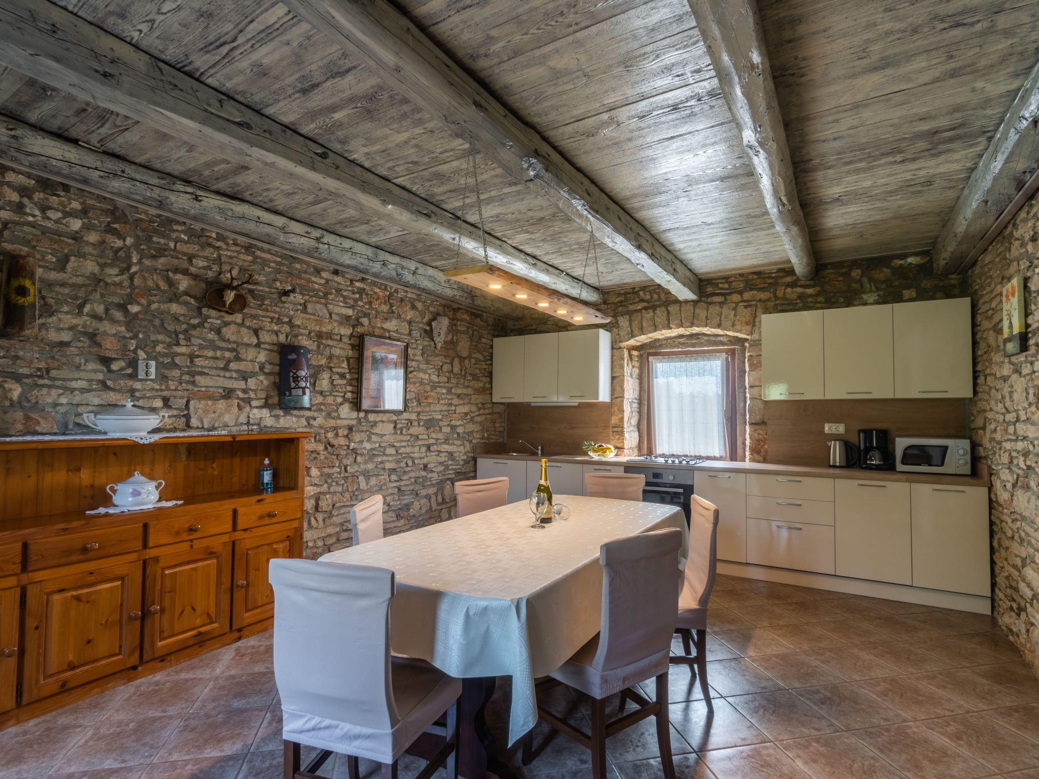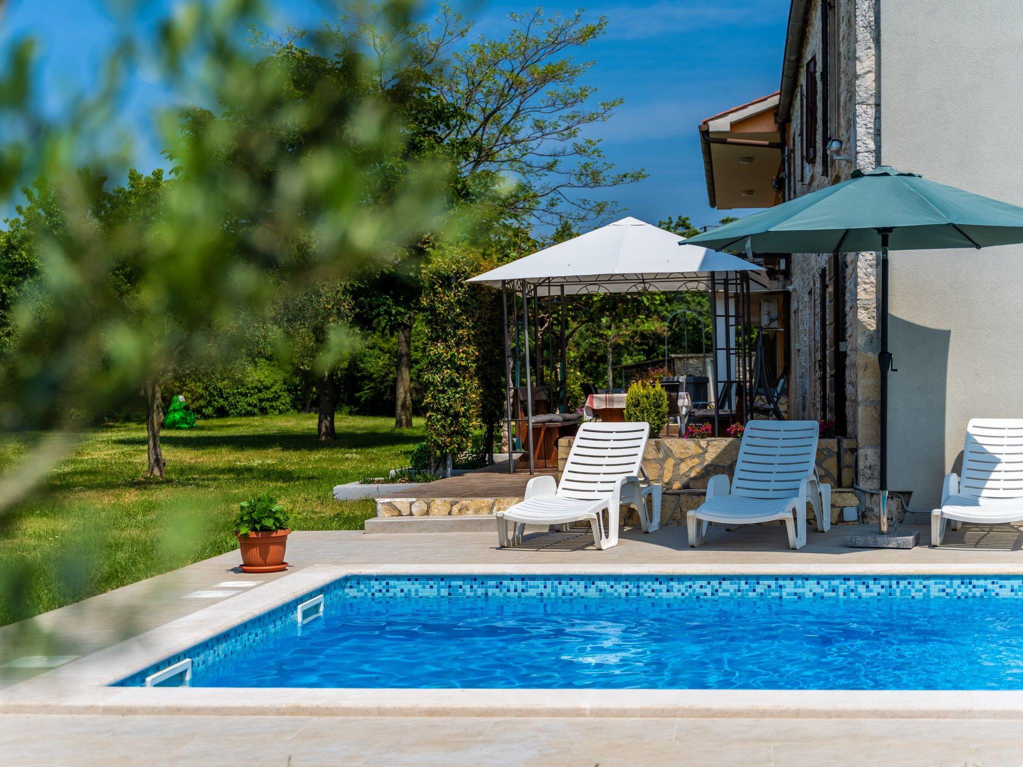 Schönes Haus mit großer grüner Umgebung und privatem Schwimmbad befindet sich in einem kleinen malerischen Dorf namens Bulici. Die Lage im Landesinneren von Istrien macht dieses Haus zu einer guten Wahl für einen entspannten und ruhigen Urlaub. Auf dem weitläufigen Privatgrundstück können Sie verschiedene Sportarten ausüben, einen Kinderspielplatz nutzen oder einfach nur schwimmen und am Pool liegen. Abende unter freiem Himmel mit geschmackvollem BBQ-Abendessen sind ein schöner Abschluss eines langen Sommertages.