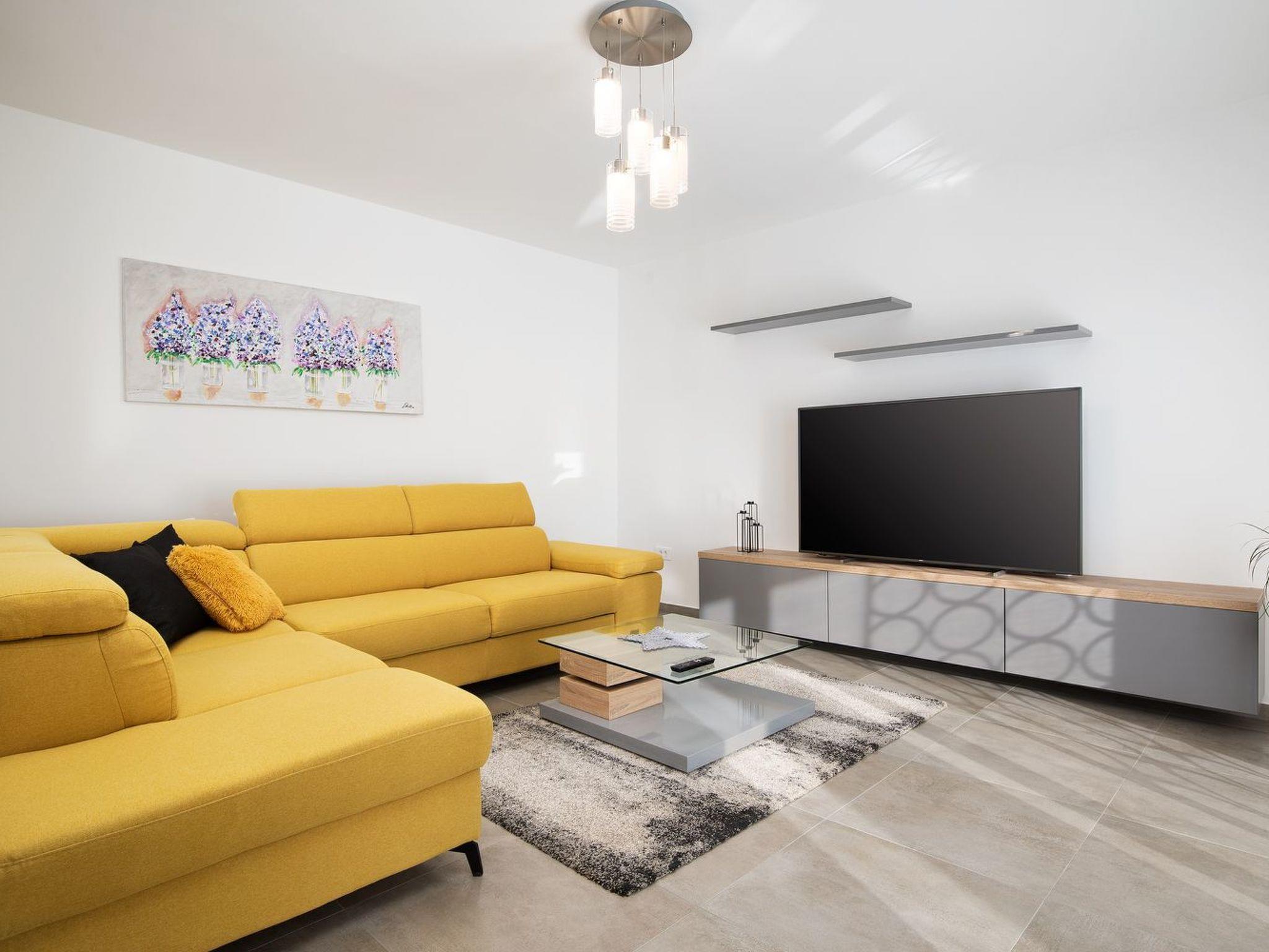 Die gut ausgestattete Wohnung mit viel Platz wird den Ansprüchen einer größeren Familie oder einer kleineren Gruppe von Freunden gerecht. Um Ihren Aufenthalt zu vervollständigen, steht Ihnen der 2000 m2 große Garten mit Gemeinschaftspool, Grill, Sitzmöbeln, Volleyballplatz und Kinderspielplatz zur Verfügung. Parkplatz auf dem Grundstück, W-LAN und Klimaanlage sind im Preis inbegriffen. Babybett: auf Anfrage; kostenlos.