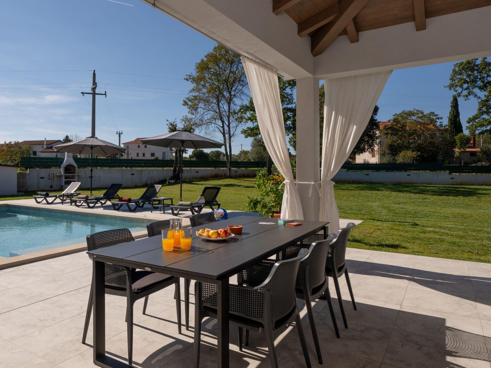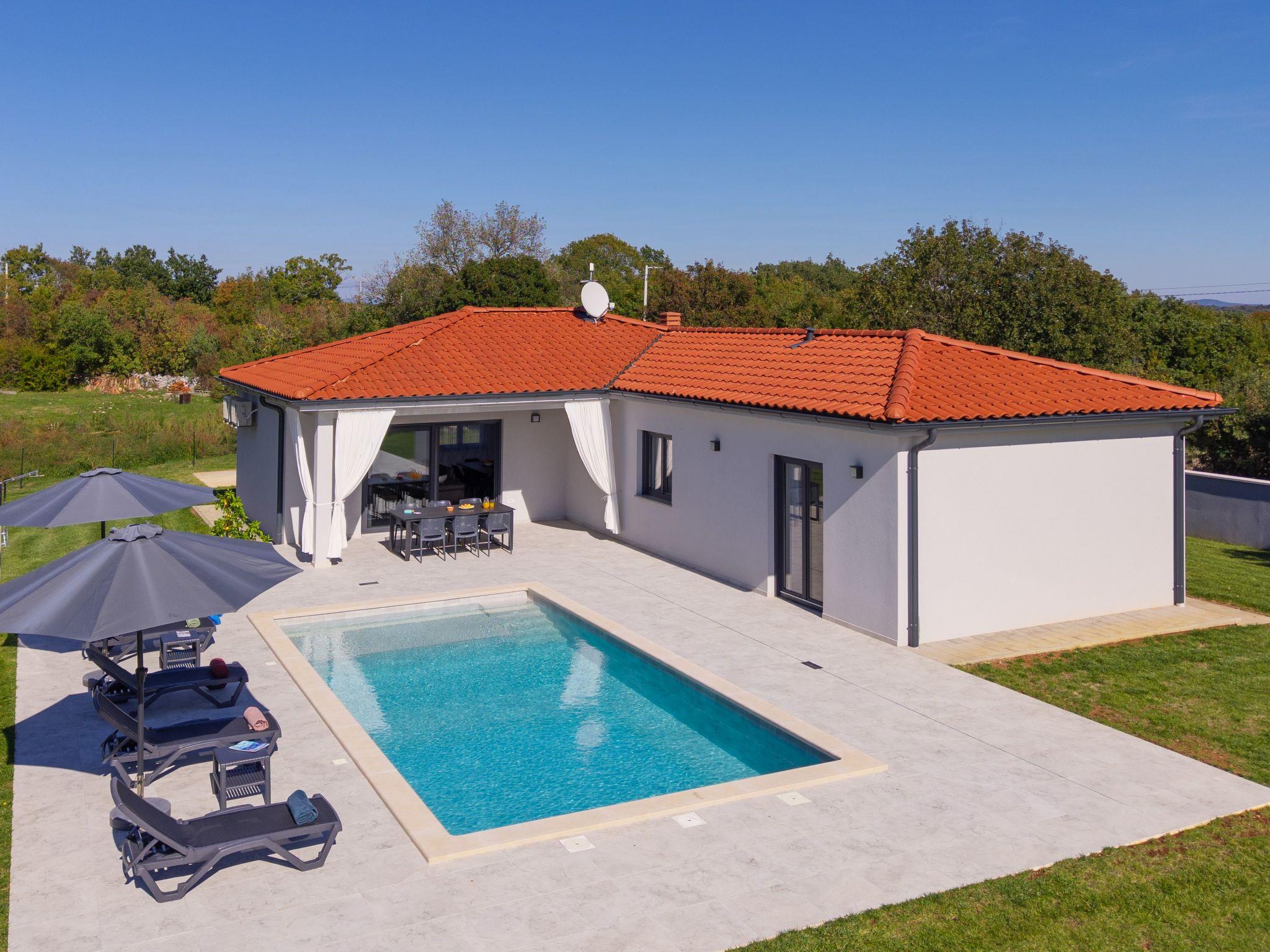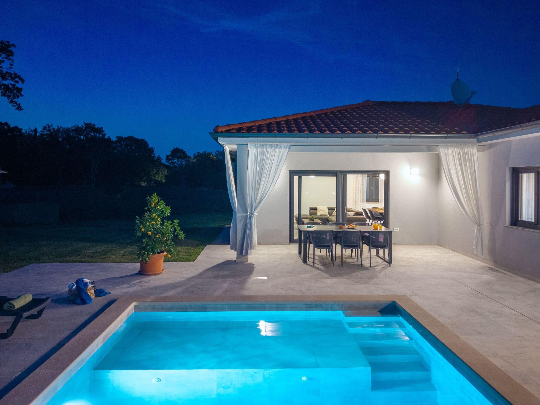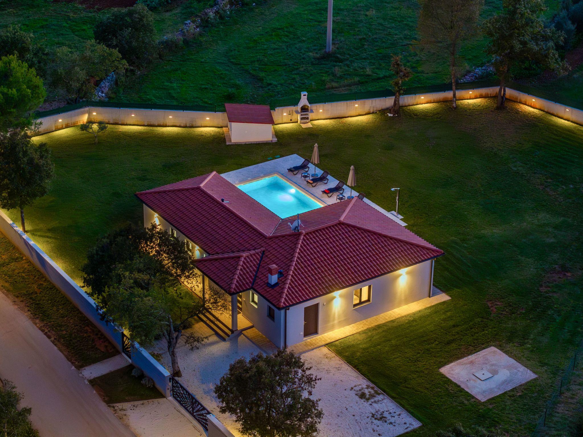 Die schöne, neu gebaute, moderne Villa L&Z bietet Ihnen einen idealen Ort für eine Pause vom hektischen Alltag. Es befindet sich in einer ruhigen Lage in einem kleinen Dorf Glavani in der Nähe von Barban, 20 km von Pula entfernt. Die Villa ist sehr geschmackvoll mit neuen modernen Möbeln eingerichtet. Sie besteht aus einer voll ausgestatteten Küche, einem Esszimmer, einem gemütlichen Wohnzimmer, einer Toilette und zwei Schlafzimmern mit eigenem Bad. Ein Außenkamin und eine überdachte Terrasse mit Blick auf den Pool sind die perfekte Kombination für Mahlzeiten im Freien und romantische istrische Nächte mit einem Glas Wein zu genießen. Im Außenpool mit Salzwasser können Sie sich von der Sommerhitze erfrischen, und auf den bequemen Liegestühlen im Schatten des Sonnenschirms können Sie sich sorglos ausruhen. Das Haus bietet kostenlose Privatparkplätze, WI-FI und ist voll klimatisiert. Der Hof ist eingezäunt und Sie können sich ungestört ausruhen und sich mit der Familie oder Freunden treffen. Die Lage der Villa ermöglicht es Ihnen, alle Reize der Halbinsel Istrien leicht zu erkunden und es ist ein ausgezeichneter Ausgangspunkt für zahlreiche Ausflüge.