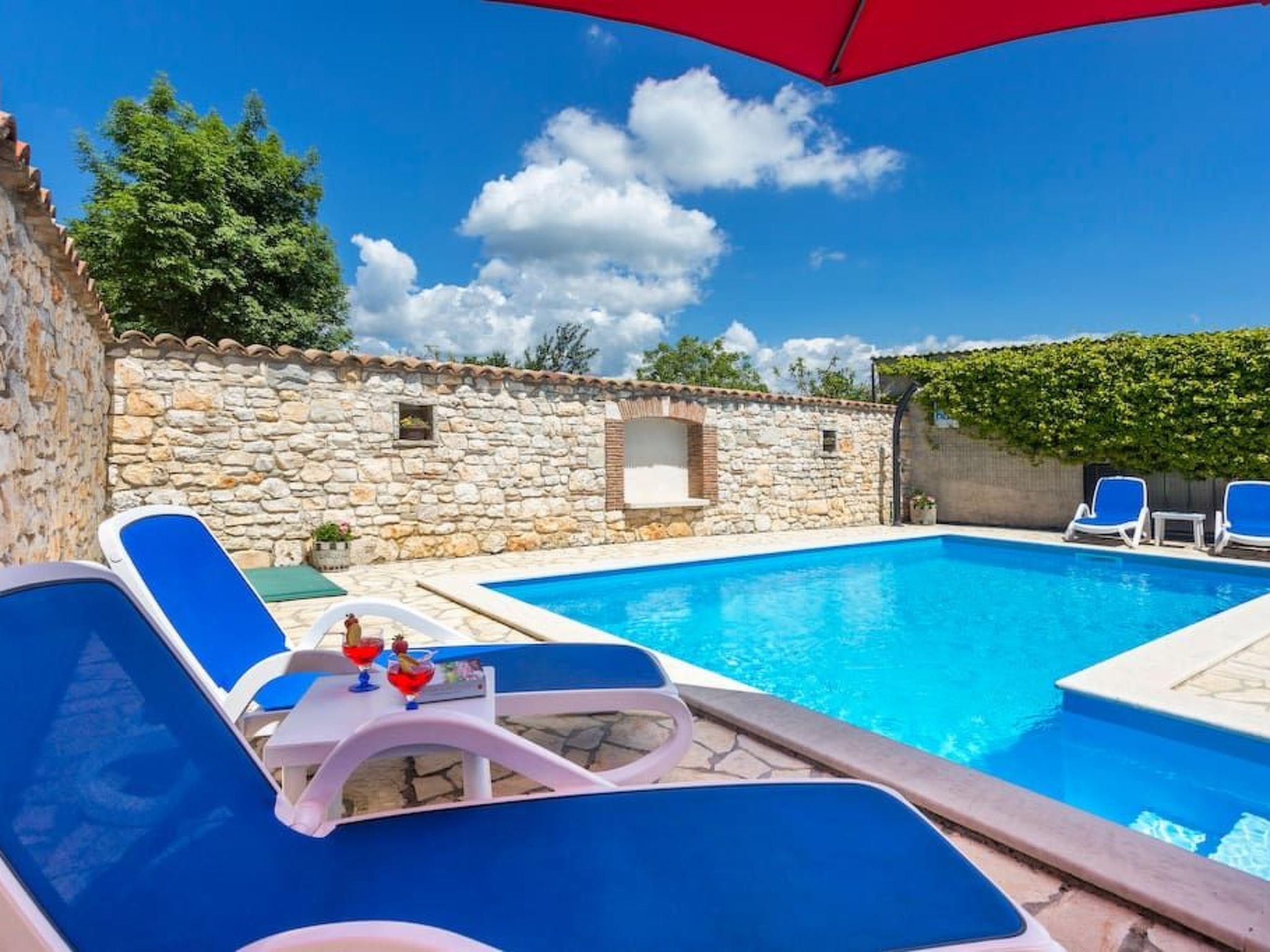 Dieses modern und geschmackvoll eingerichtete Natursteinhaus ist in einem ruhigen Wohngebiet ein wenig außerhalb des Örtchens Prhati im westlichen Teil des Landesinneren der sonnigen istrischen Halbinsel gelegen und bietet eine ideale Unterkunft für einen entspannten Urlaub mit viel Privatsphäre, weit weg vom Touristenlärm.Erst kürzlich (2012) vollständig renoviertes und in ein modernes Ferienhaus konvertiertes authentisches Natursteinhaus mit privatem Pool, Außendusche und traditionellen Steingrill auf der überdachten Terrasse im ummauerten, grünen Gartengelände