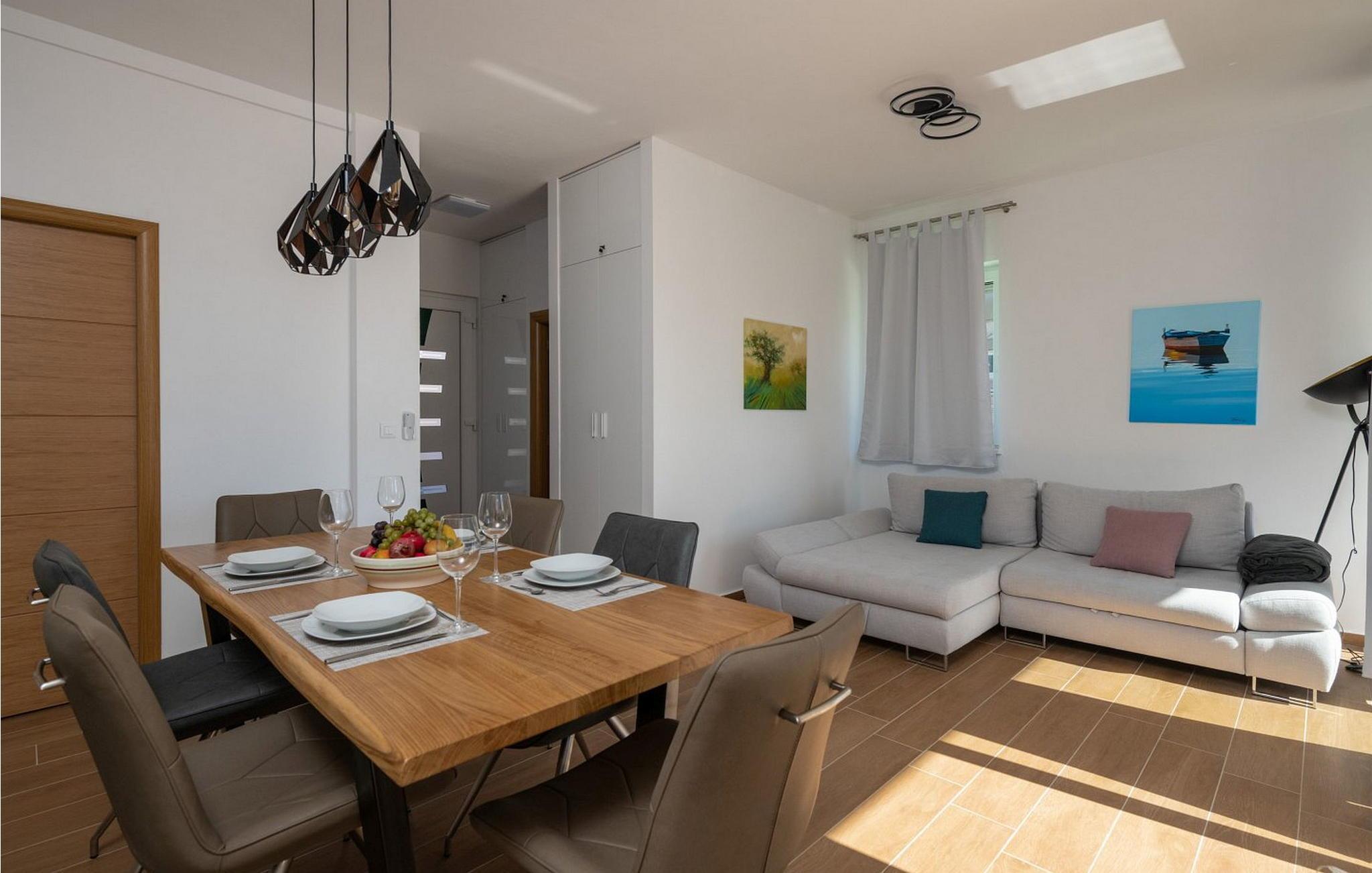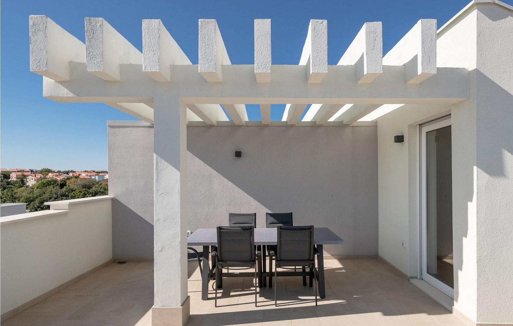 Ferienhaus für 4-6 Personen von 90 qm erstreckt sich auf zwei Etagen. Die Dachterrasse von 45 qm auf der dritten Etage verfügt über Panoramameerblick und Blick auf die Brijuni Inseln, Esstisch, Grill und Sonnenliegen. Im Erdgeschoss gibt es einen Wohnraum mit ausgestatteter Küche, Esstisch und Schlafsofa für zwei Personen, eine Dusche/WC. Auf dem ersten Stock sind zwei Doppelzimmer und eine Dusche/WC. Bitte beachten Sie, dass diese Unterkunft auf Anfrage möglicherweise Jugendgruppen akzeptiert. Bitte kontaktieren Sie uns, um dies zu überprüfen. Eine Jugendgruppe in dieser Unterkunft besteht aus Personen im Alter von 26 Jahren oder jünger. Wenn Sie eine Jugendgruppe sind [oder einen Junggesellenabschied planen], werden Sie möglicherweise bei der Ankunft um die Zahlung einer zusätzlichen Kaution gebeten. Etwaige Beträge, die zur Behebung von Schäden an der Immobilie erforderlich sind, werden von der Kaution abgezogen.