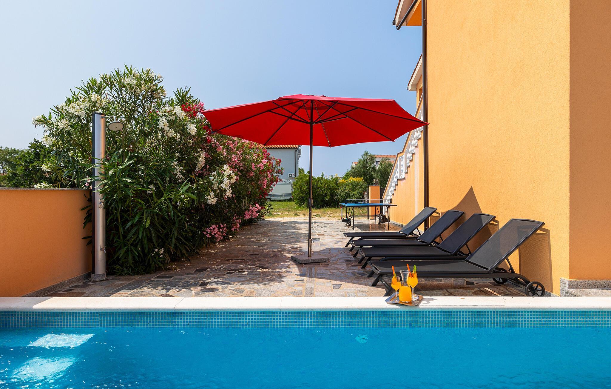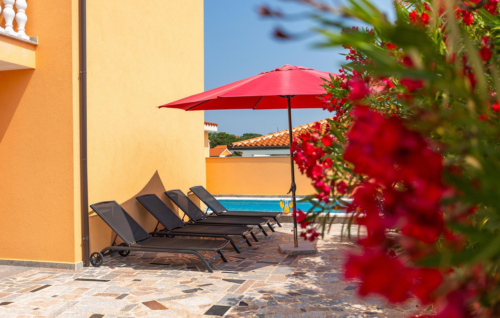 Starten Sie mit einem ausgiebigen Frühstück auf der großzügigen, überdachten Terrasse und erfrischen Sie sich nach Lust und Laune in Ihrem Pool. Lassen Sie die Seele auf einer komfortablen Liege baumeln und zelebrieren Sie laue Sommernächte mit einem köstlichen Barbecue unter freiem Himmel.