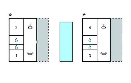 Badezimmer 5m2 (nr. 1) - WC. Warmes und kaltes Wasser. Dusche