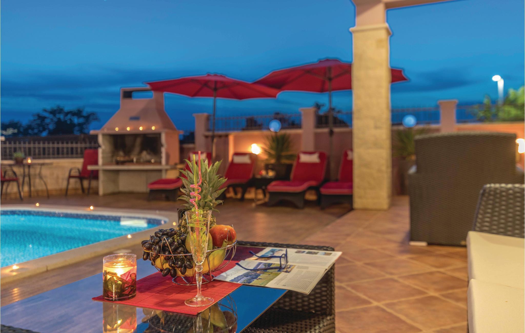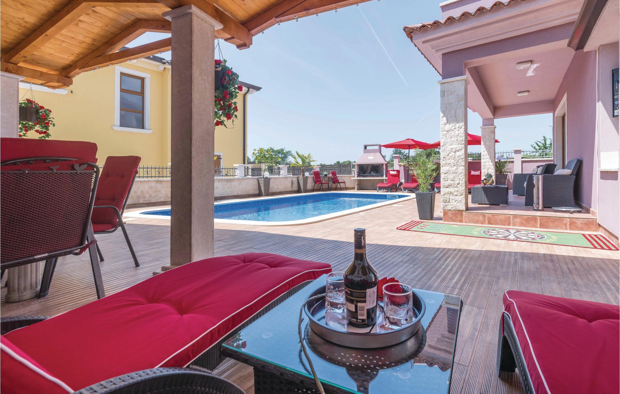 Genießen Sie Ihren Urlaub in diesem schönen Ferienhaus mit Pool im kleinen Ort Betiga, nicht weit vom Nationalpark auf der Insel Brioni und der historischen Stadt Pula entfernt. Der Weg zum Haus führt durch eine schöne Landschaft, mit kleinen steinernen Hirtenhäusern, den sogenannten „Kažuns“, die Sie von der Straße aus sehen können. Das Erdgeschoss verfügt über eine geräumige Wohnküche, Schlafzimmer und ein Bad. Im ersten Stock befinden sich zwei Schlafzimmer, jedes mit eigenem Bad und Balkon, die teilweise Meerblick bieten. Die Räumlichkeiten sind hell und luftig. Vom Wohnzimmer aus erreichen Sie den Poolbereich, in dem Sie sich vollkommen entspannen können. Ein großer Grill und Spielecke für Kinder runden den Außenbereich ab. Besuchen Sie die malerischen Orte in der Umgebung, die Ihnen im Sommer viel Spaß bieten werden.