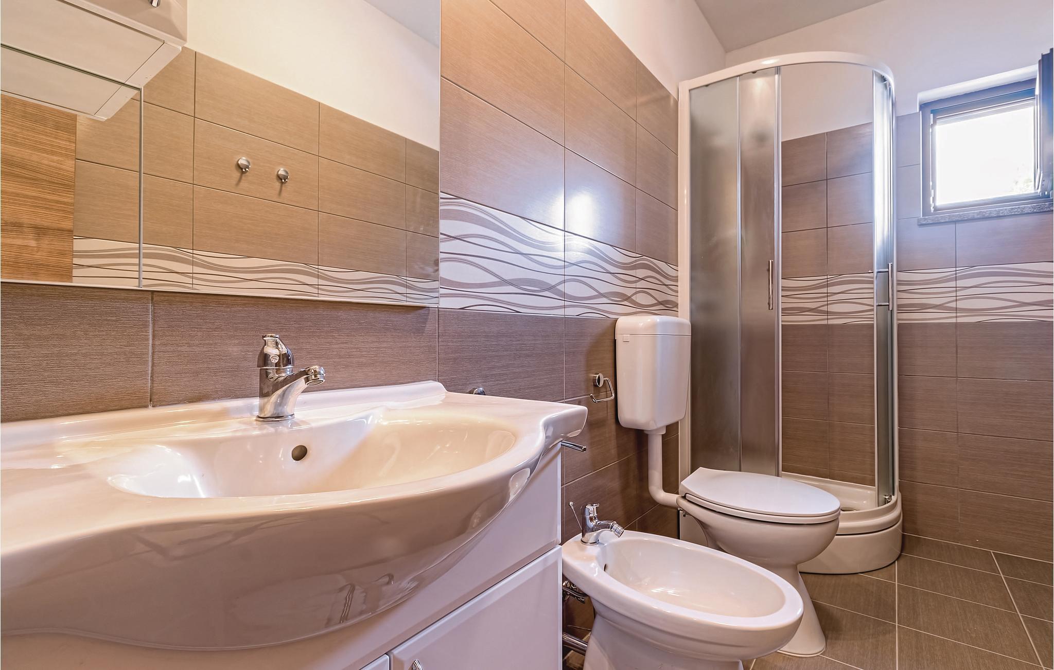 Badezimmer (nr. 2) - WC. Warmes und kaltes Wasser. Dusche
