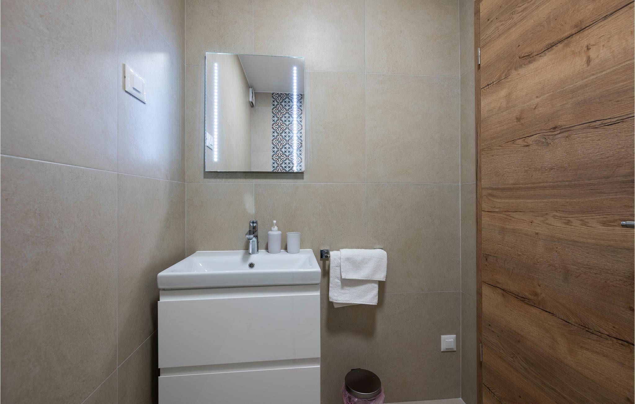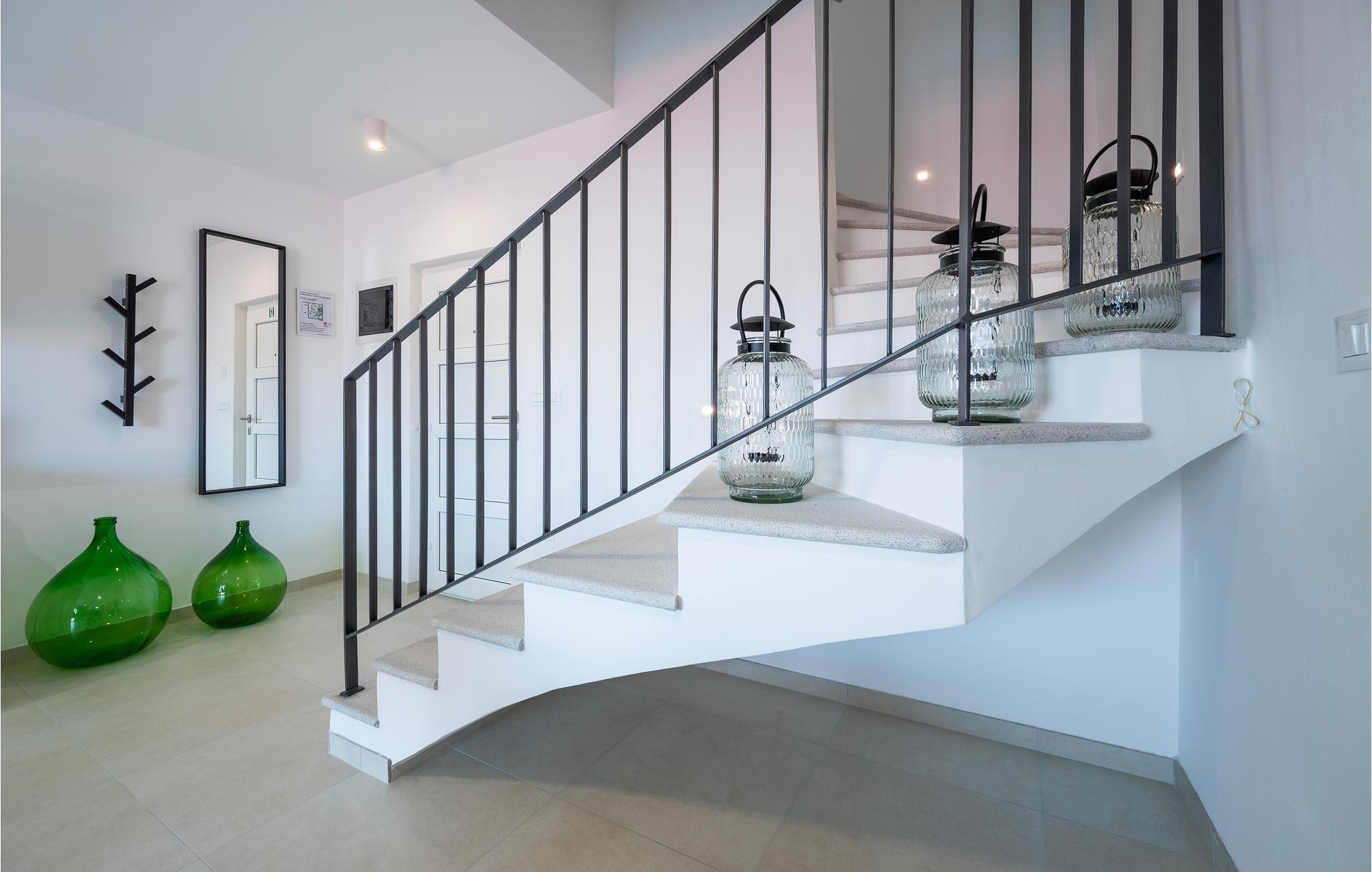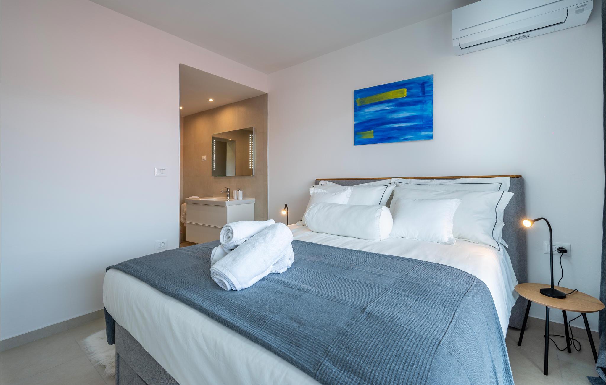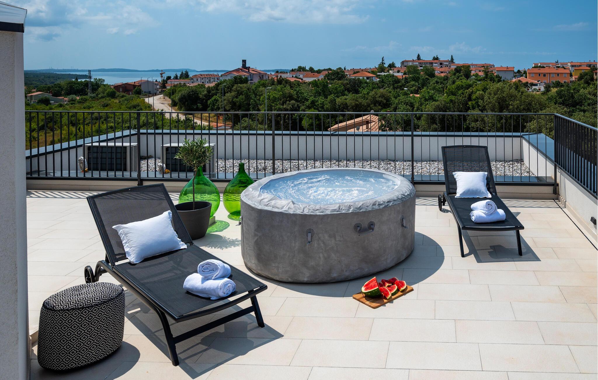 Unweit des Kiesstrandes empfängt Sie dieses moderne Haus mit schönen Ferienwohnungen. Im 1. Stockwerk können Sie in dieser einladenden und geschmackvollen Wohnung entspannen und das stilvolle Ambiente für Ihre Entspannung nutzen. Hochwertige Möbel und ausgewählte Dekor schaffen eine tolle Wohlfühlatmosphäre, in der Sie sich nach langen Strandtagen oder Ihren Ausflügen ausruhen können. Eine Besonderheit ist die großartige Dachterrasse, auf der Sie im Whirlpool ein Bad unter dem Sternenhimmel genießen können.