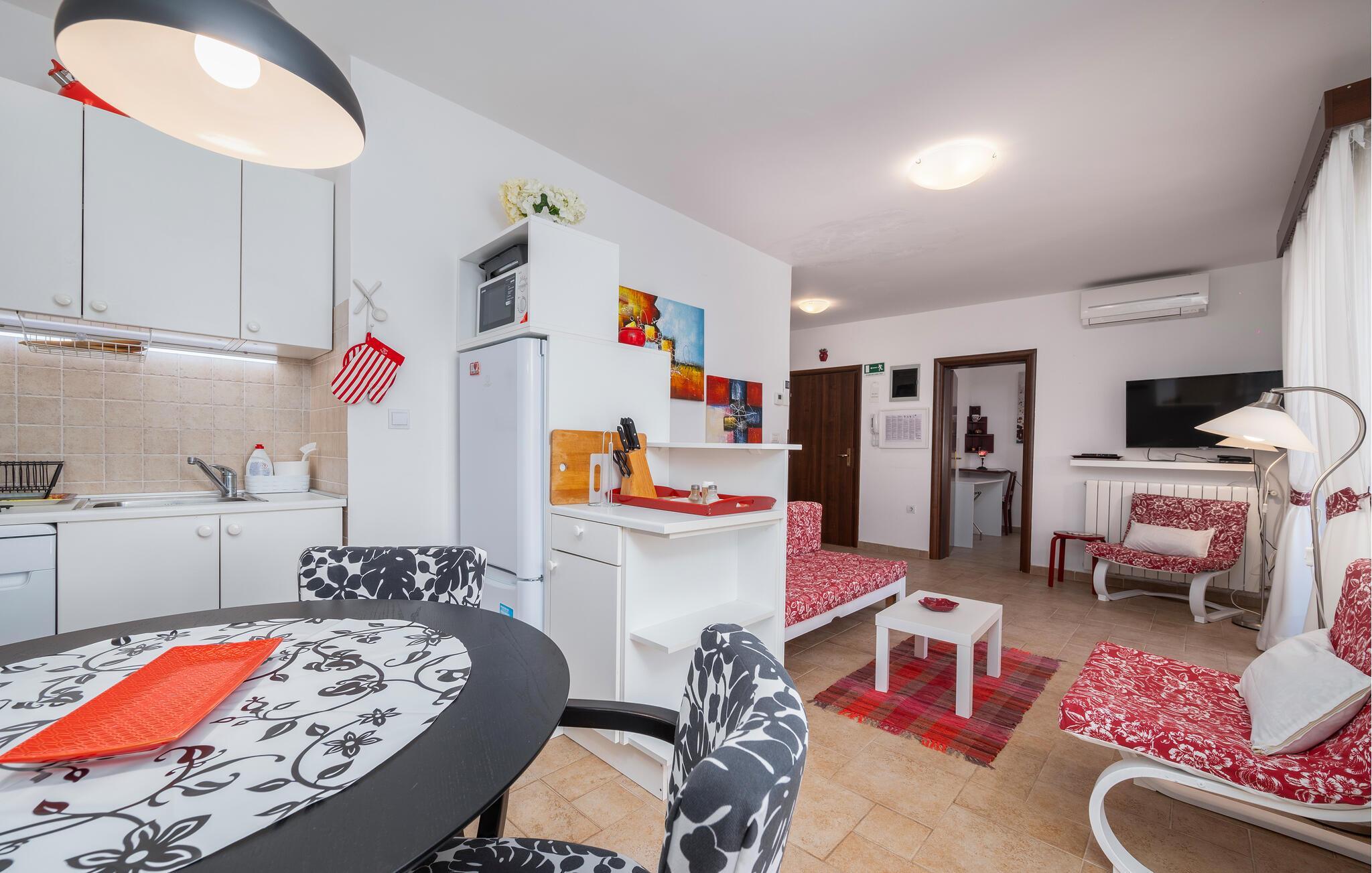 Kommen Sie in dieser gemütlichen Ferienwohnung mit Gemeinschaftspool zur Ruhe.