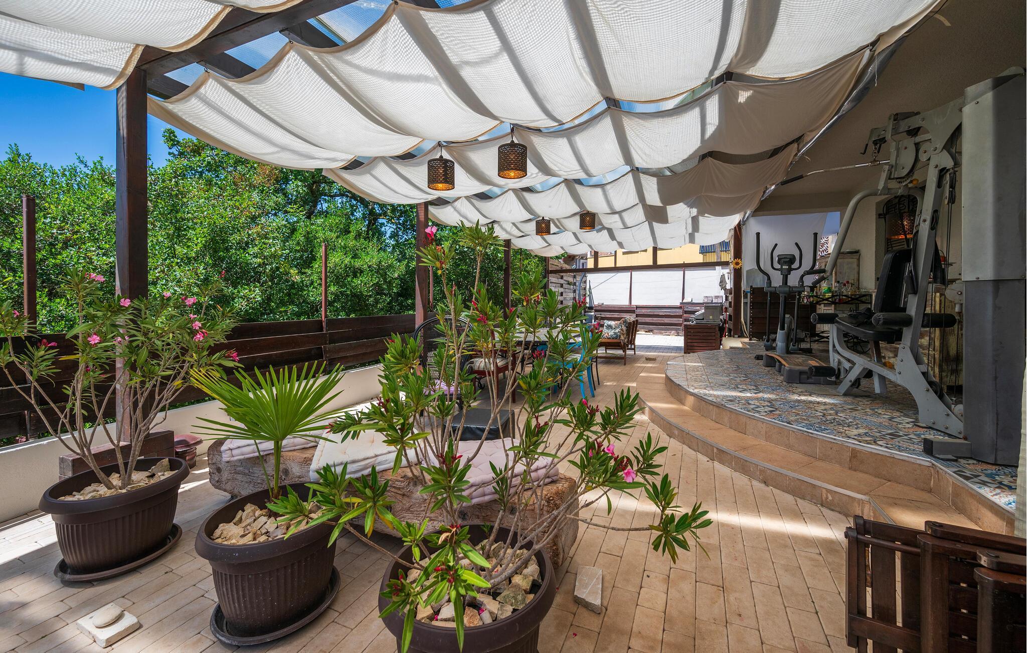 Wenn Sie Lust auf Gesellschaft haben, lädt die große Gemeinschaftsterrasse zu entspannten Gesprächen und geselligen Stunden ein. Der Pool bietet eine willkommene Erfrischung und ist der perfekte Ort für Spaß und Erholung. Diese Ferienwohnung bietet alles, was Sie für einen unvergesslichen Urlaub brauchen.