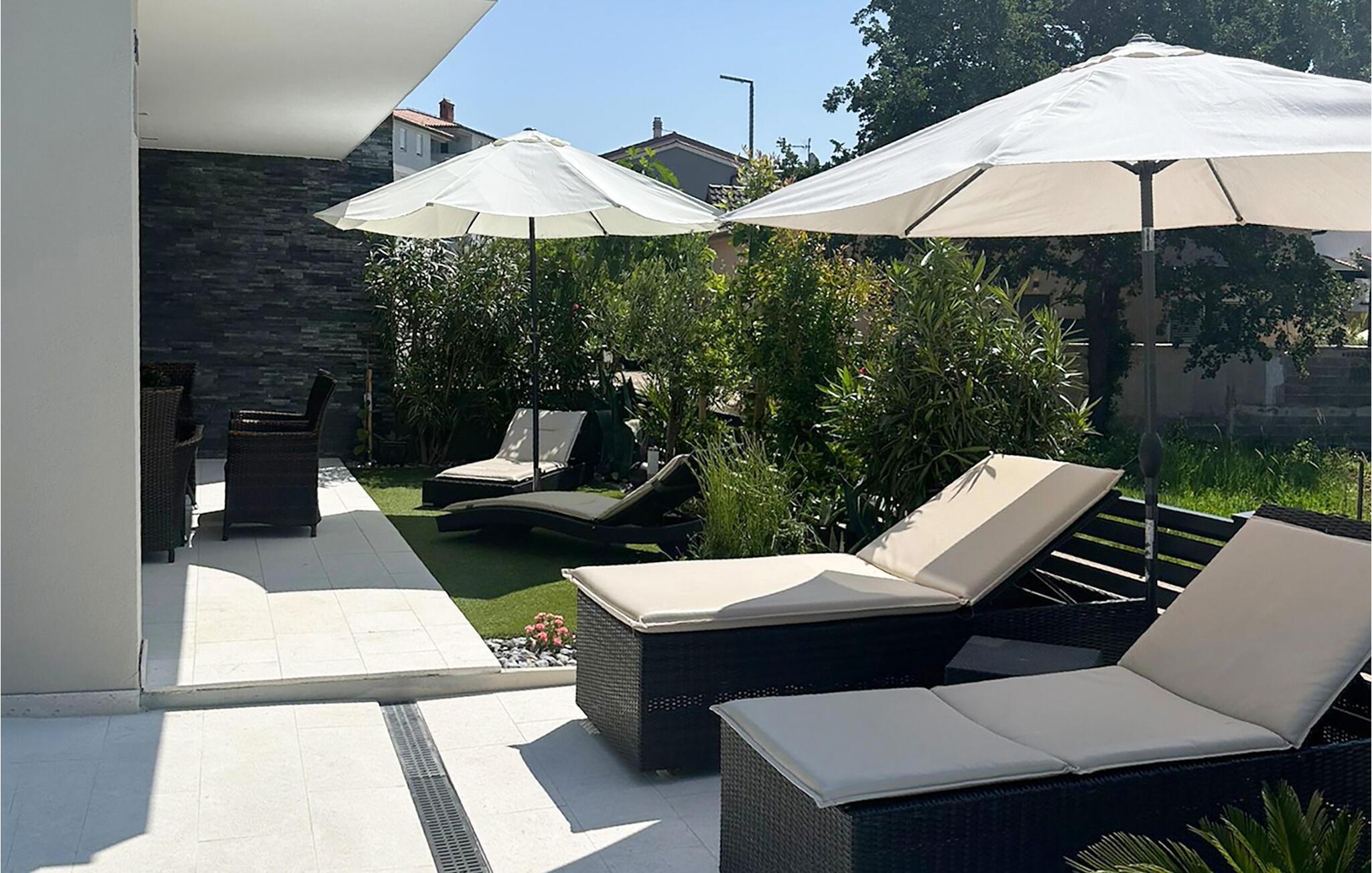 Dieses modern gestaltete Ferienhaus mit Pool befindet sich in Betiga. Es ist so konzipiert, dass es eine Kombination aus zwei geräumigen Apartments gibt, die durch externe Kommunikation miteinander verbunden sind. Somit ist es ideal für einen Urlaub mit zwei Familien oder einer Gruppe von Freunden, die ihren Urlaub zusammen verbringen und dennoch ihre Privatsphäre haben möchten. Die Einheiten verfügen jeweils über geräumige offene Wohnbereiche, ein Badezimmer, eine Toilette und zwei Schlafzimmer. Das Haus hat auch zwei schöne Terrassen, auf denen Sie Ihren ersten Morgenkaffee trinken können. In der Nähe der Unterkunft befinden sich Strände, an denen Sie wunderschöne Sonnentage mit Schwimmen und Sonnenbaden verbringen können. Während Ihres Aufenthalts empfehlen wir Ihnen, die Stadt Pula und ihre Arena zu besuchen, wo in den Sommermonaten viele Konzerte und andere Veranstaltungen stattfinden, wie zum Beispiel das Pula Film Festival. Für Naturliebhaber empfehlen wir einen Besuch des Brijuni-Nationalparks, der Sie mit der Landschaft und den dort lebenden Tieren begeistern wird.