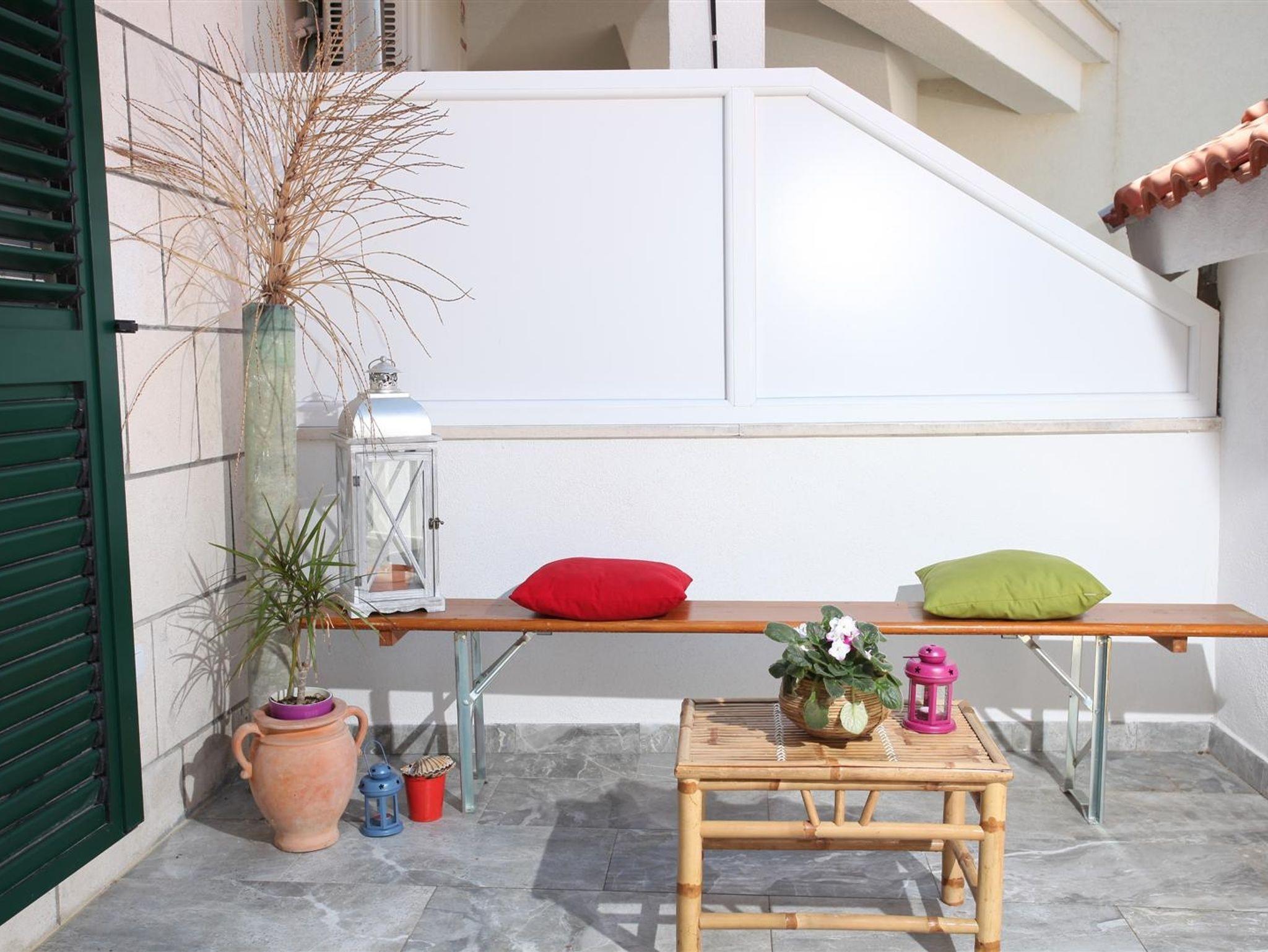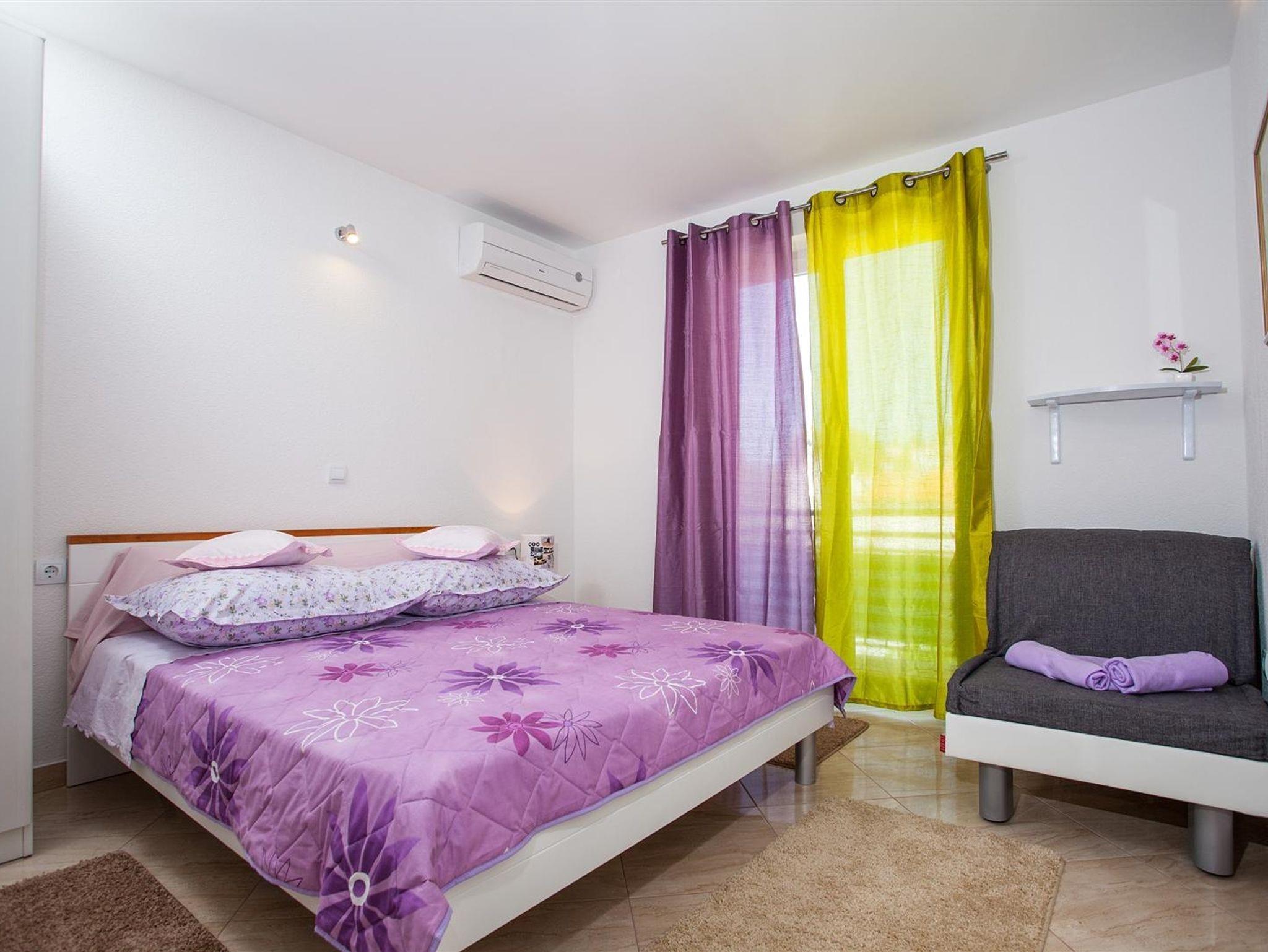 Ferienwohnung bietet Platz für 4 Gäste. Die Betten sind in Schlafzimmern, die es 2 gibt, innerhalb einer Gesamtfläche von 55m2, angeordnet. Die Gäste haben eine eigene Terrasse zur Verfügung, auf der sie in warmen Sommernächten genießen können. Das Apartment bietet Meerblick. IM PREIS INBEGRIFFEN: Kurtaxe, Endreinigung, Klimatisierung, Parkplatz, Internet, Bügeleisen, Bügelbrett, Föhn. VERBINDLICHE ZUSÄTZLICHE KOSTEN: Aufzahlung für Kurzaufenthalte (prozentualer Zuschlag pro Nächtigungsanzahl: 30% - 1, 20% - 2, 10% - 3). Die Verfügbarkeit zusätzlicher Dienstleistungen in Ihrem reservierten Termin und die Preise derselben (falls nicht aufgeführt) müssen im Voraus überprüft werden. Zusätzliche Dienstleistungen die in der Zahlungsaufforderung nicht aufgeführt sind werden direkt beim Vermieter bezahlt, angenommen der Gast nutzt auch diese.