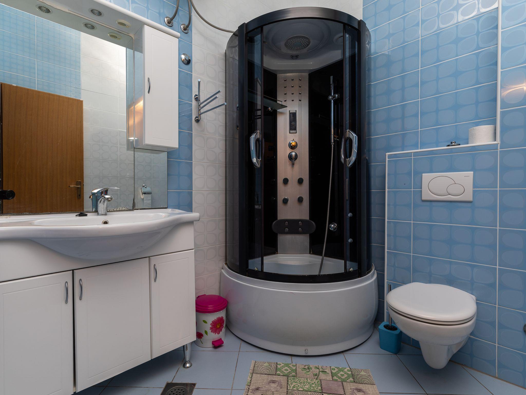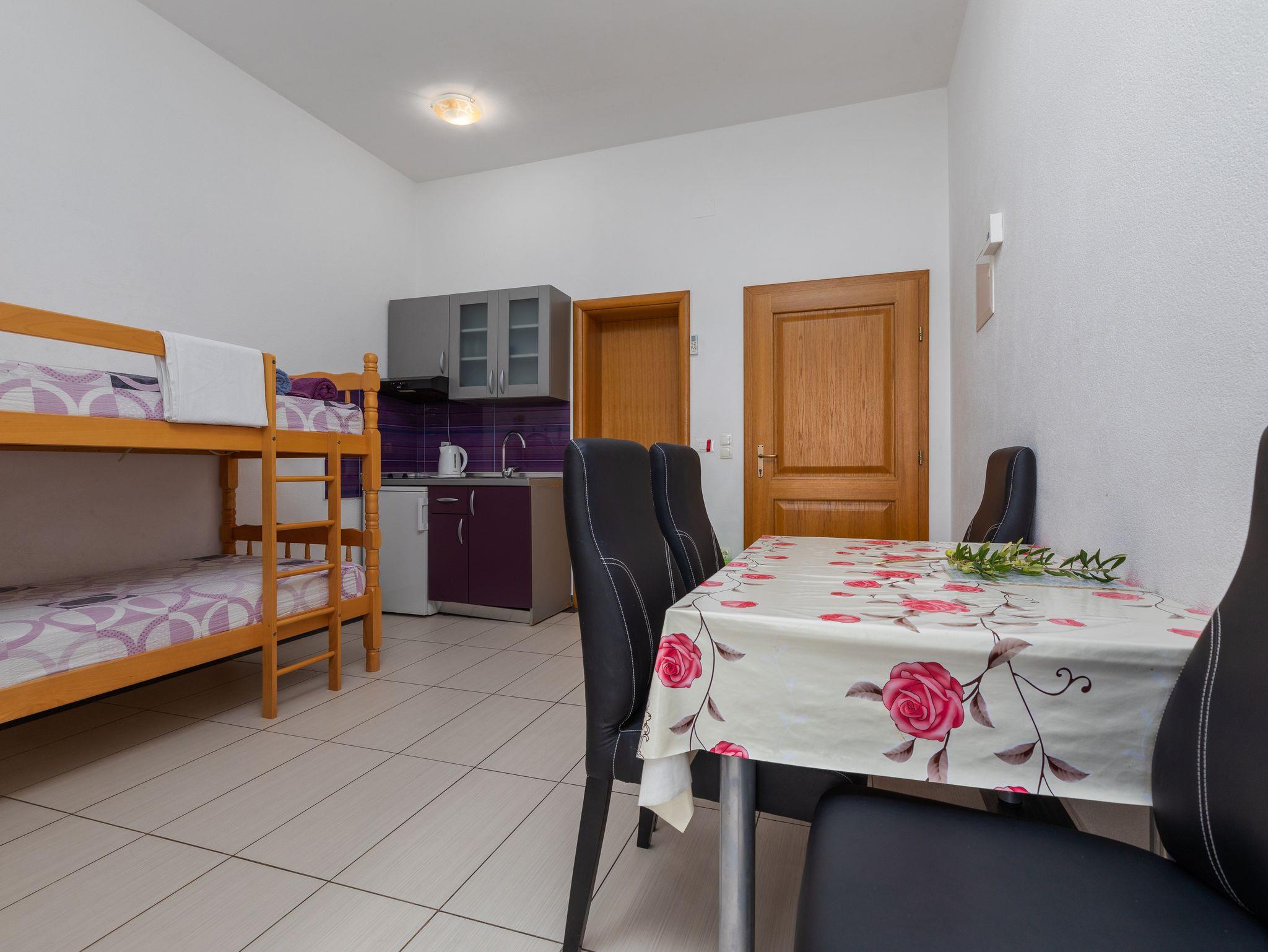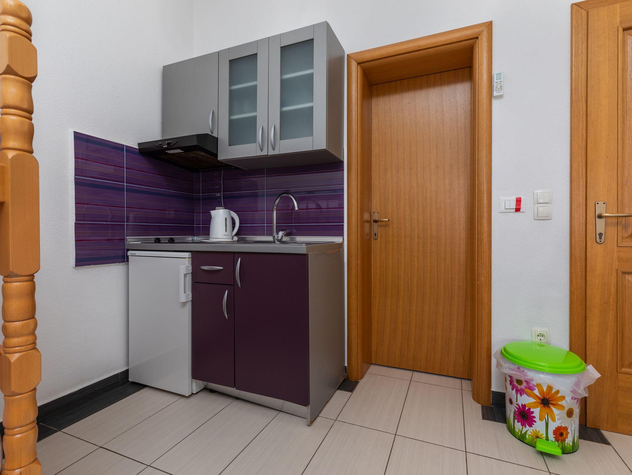 Studio bietet Platz für 2 Gäste. Die Betten sind in Schlafzimmern, die es 1 gibt, innerhalb einer Gesamtfläche von 22m2, angeordnet. Die Gäste haben einen eigenen Balkon zur Verfügung, auf der sie in warmen Sommernächten genießen können. Das Studio-Apartment bietet Meerblick. Es ist erlaubt, Speisen auf dem Gemeinschafts-Grill vorzubereiten. IM PREIS INBEGRIFFEN: Kurtaxe, Endreinigung, Klimatisierung, Parkplatz, Internet, Kinderbett, 2 Kinderbettchen (im Preis enthalten). VERBINDLICHE ZUSÄTZLICHE KOSTEN: Aufzahlung für Kurzaufenthalte (prozentualer Zuschlag pro Nächtigungsanzahl: 30% - 1, 20% - 2, 10% - 3). Die Verfügbarkeit zusätzlicher Dienstleistungen in Ihrem reservierten Termin und die Preise derselben (falls nicht aufgeführt) müssen im Voraus überprüft werden. Zusätzliche Dienstleistungen die in der Zahlungsaufforderung nicht aufgeführt sind werden direkt beim Vermieter bezahlt, angenommen der Gast nutzt auch diese.