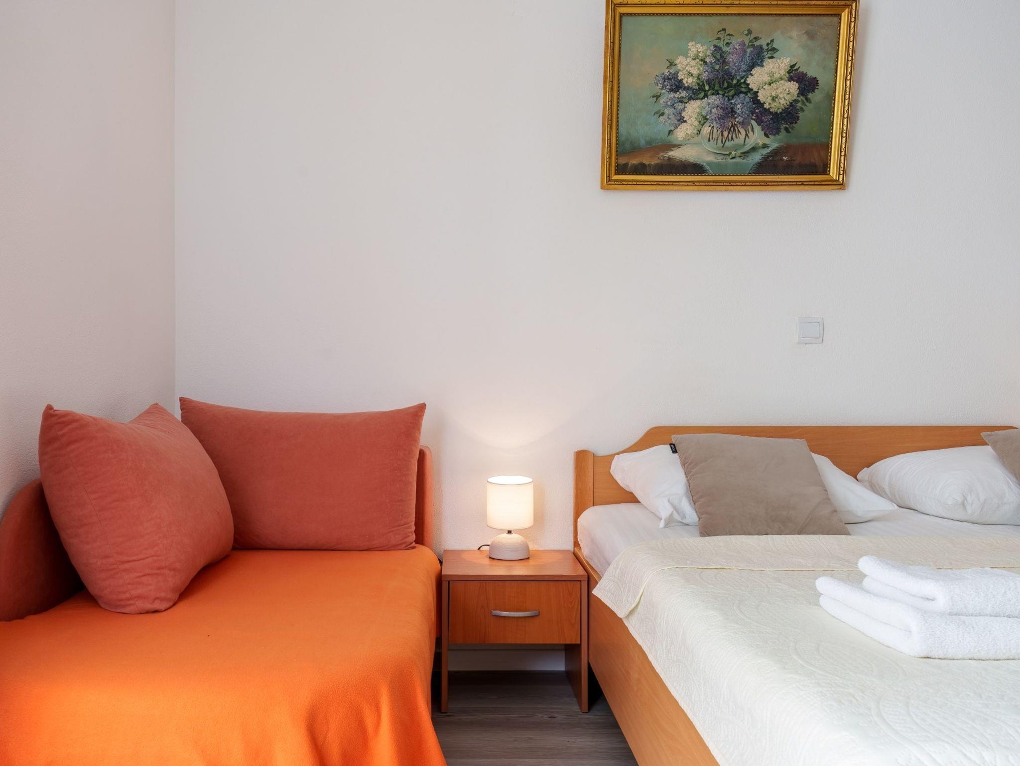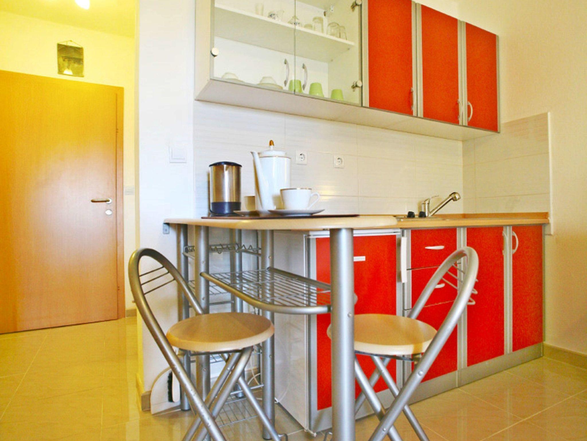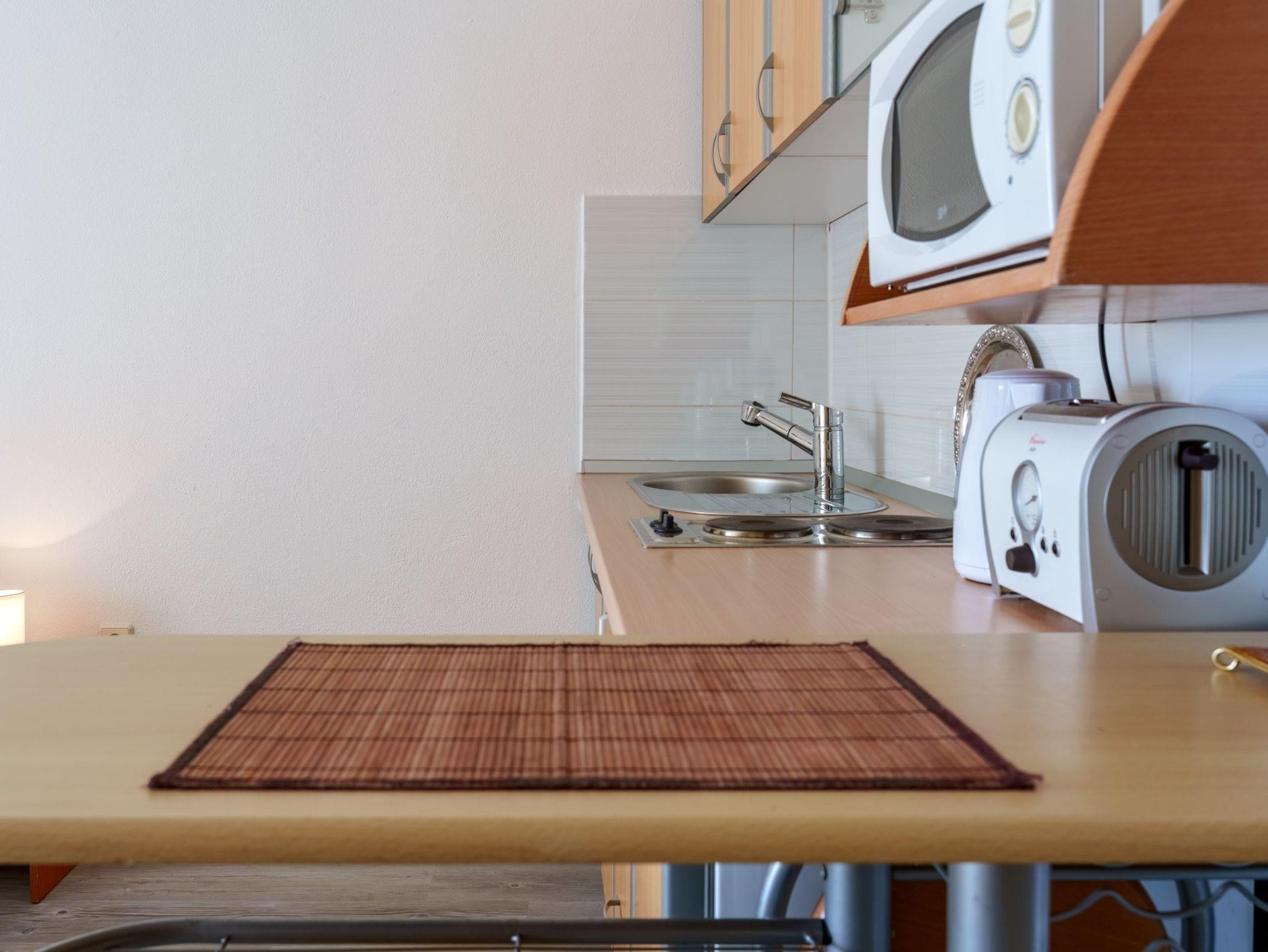 Studio bietet Platz für 2 Gäste. Die Betten sind in Schlafzimmern, die es 1 gibt, innerhalb einer Gesamtfläche von 23m2, angeordnet. Die Gäste haben einen eigenen Balkon zur Verfügung, auf der sie in warmen Sommernächten genießen können. Das Studio-Apartment bietet Meerblick. Es ist erlaubt, Speisen auf dem Gemeinschafts-Grill vorzubereiten. IM PREIS INBEGRIFFEN: Kurtaxe, Endreinigung, Klimatisierung, Parkplatz, Internet, Kinderbett, Bügeleisen, Bügelbrett, Föhn. VERBINDLICHE ZUSÄTZLICHE KOSTEN: Aufzahlung für Kurzaufenthalte (prozentualer Zuschlag pro Nächtigungsanzahl: 30% - 1, 20% - 2, 10% - 3). UNVERBINDLICHE ZUSÄTZLICHE KOSTEN: Wäschewaschen (10,00 € Waschen). Die Verfügbarkeit zusätzlicher Dienstleistungen in Ihrem reservierten Termin und die Preise derselben (falls nicht aufgeführt) müssen im Voraus überprüft werden. Zusätzliche Dienstleistungen die in der Zahlungsaufforderung nicht aufgeführt sind werden direkt beim Vermieter bezahlt, angenommen der Gast nutzt auch diese. Ermäßigung auf den Grundpreis: Gratistag 21=19 (bei einem Aufenthalt von 21 Tagen oder mehr erhalten Sie 2 Gratistage für den Aufenthalt bis 31.12.26).