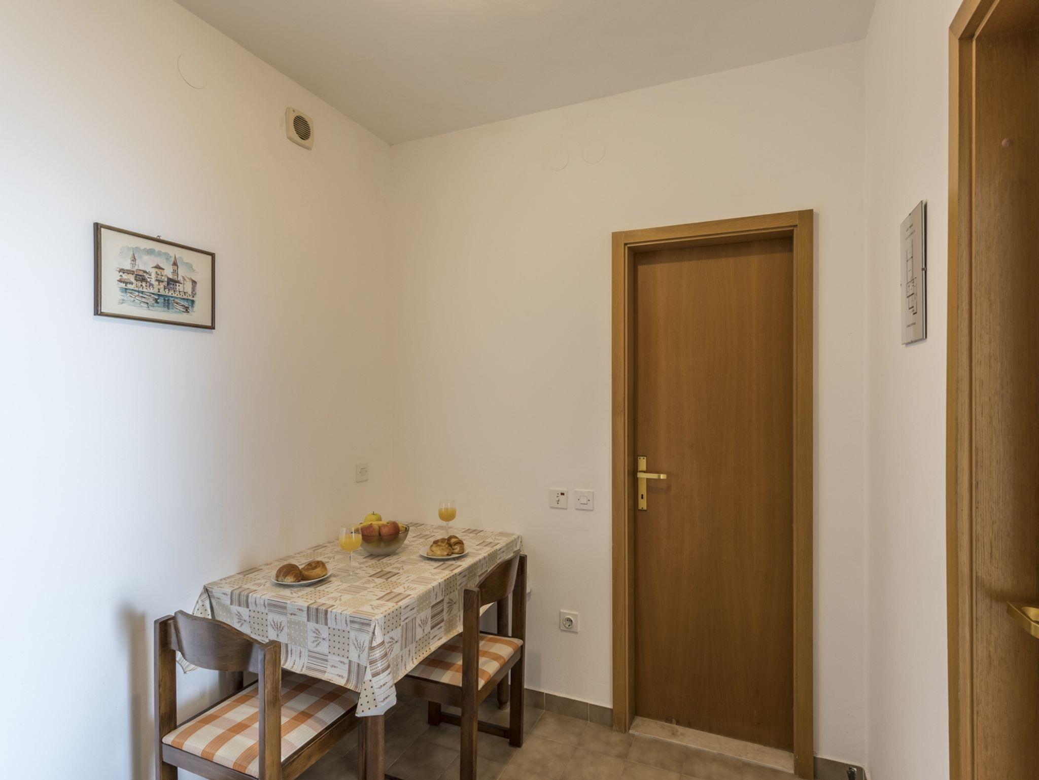 Studio bietet Platz für 3 Gäste. Die Betten sind in Schlafzimmern, die es 1 gibt, innerhalb einer Gesamtfläche von 23m2, angeordnet. Die Gäste haben einen eigenen Balkon zur Verfügung, auf der sie in warmen Sommernächten genießen können. Das Studio-Apartment bietet Meerblick. Es ist erlaubt, Speisen auf dem Gemeinschafts-Grill vorzubereiten. In der Unterkunftseinheit besteht die Möglichkeit des Mitbringens von Haustieren gegen Aufpreis. IM PREIS INBEGRIFFEN: Kurtaxe, Endreinigung, Klimatisierung, Parkplatz, Internet, Kinderbett, Bügeleisen, Sonnenschirm. VERBINDLICHE ZUSÄTZLICHE KOSTEN: Aufzahlung für Kurzaufenthalte (prozentualer Zuschlag pro Nächtigungsanzahl: 30% - 1, 20% - 2, 10% - 3). UNVERBINDLICHE ZUSÄTZLICHE KOSTEN: Wäschewaschen (5,00 € Waschen), Haustiere (5,00 € pro Nacht). Die Verfügbarkeit zusätzlicher Dienstleistungen in Ihrem reservierten Termin und die Preise derselben (falls nicht aufgeführt) müssen im Voraus überprüft werden. Zusätzliche Dienstleistungen die in der Zahlungsaufforderung nicht aufgeführt sind werden direkt beim Vermieter bezahlt, angenommen der Gast nutzt auch diese.