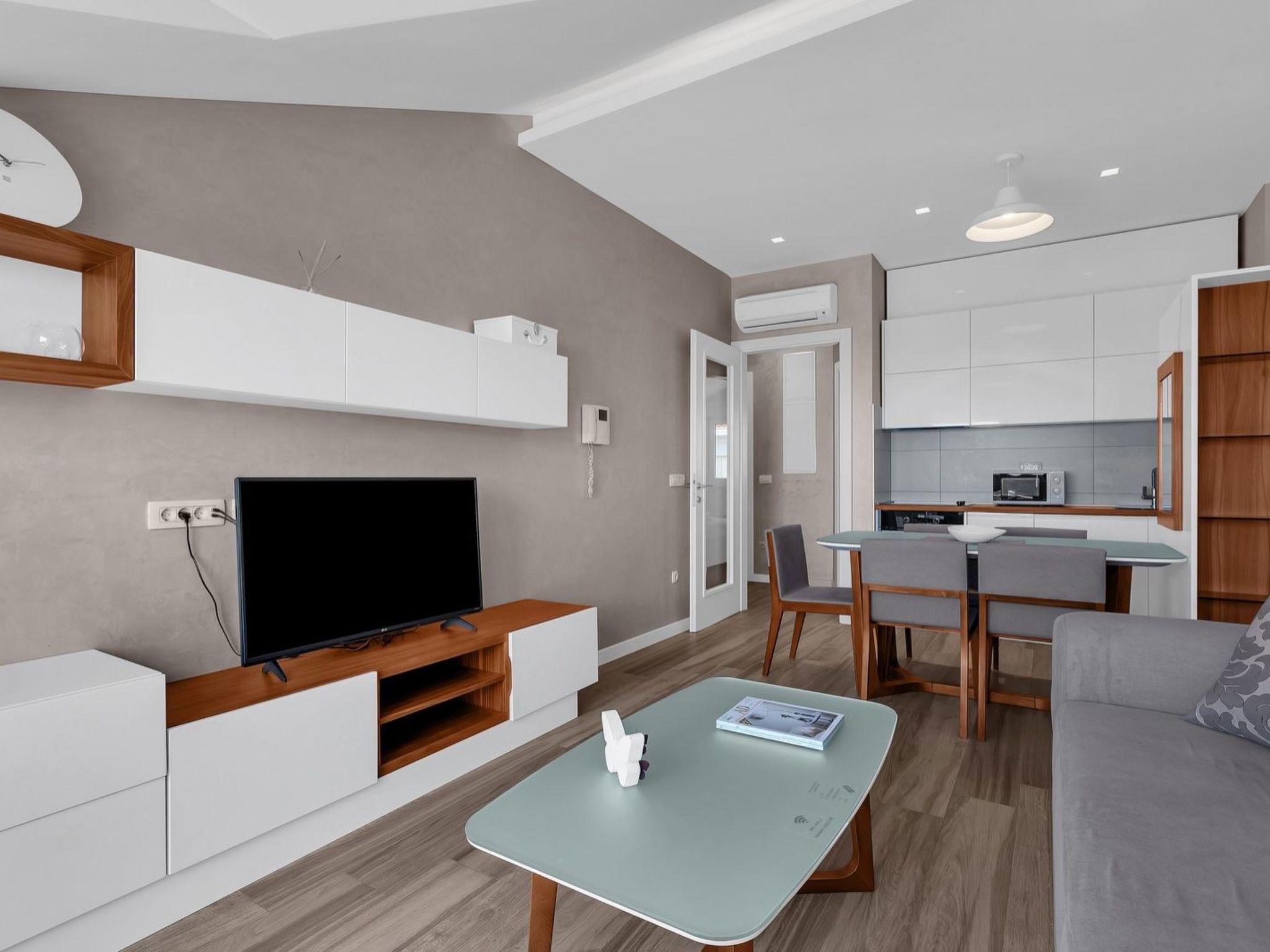 Der Balkon des Apartments lädt dazu ein, die sanfte Meeresbrise zu genießen und bietet einen zusätzlichen Raum im Freien, wo Sie entspannte Momente erleben können. Obwohl der direkte Blick auf das Meer in der Beschreibung des Apartments nicht erwähnt wird, verstärkt die Nähe zum Wasser das Urlaubsgefühl bedeutend. Hier können Sie den Alltag hinter sich lassen und in die Ruhe dieser schönen Gegend eintauchen.