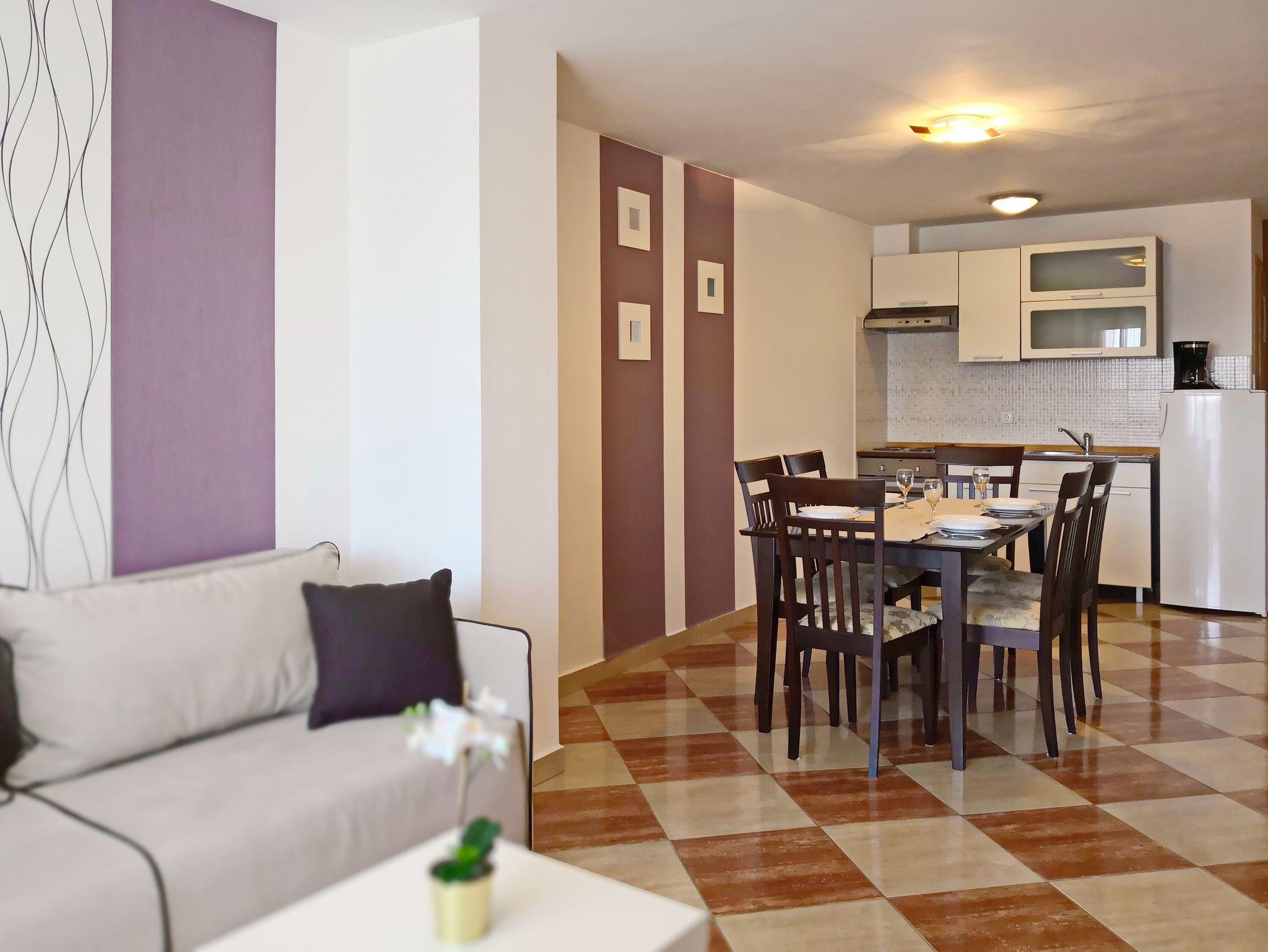 Ferienwohnung bietet Platz für 4 Gäste. Die Betten sind in Schlafzimmern, die es 2 gibt, innerhalb einer Gesamtfläche von 57m2, angeordnet. Die Gäste haben eine eigene Terrasse zur Verfügung, auf der sie in warmen Sommernächten genießen können. IM PREIS INBEGRIFFEN: Kurtaxe, Endreinigung, Klimatisierung, Parkplatz, Internet. VERBINDLICHE ZUSÄTZLICHE KOSTEN: Aufzahlung für Kurzaufenthalte (prozentualer Zuschlag pro Nächtigungsanzahl: 30% - 1, 20% - 2, 10% - 3). Die Verfügbarkeit zusätzlicher Dienstleistungen in Ihrem reservierten Termin und die Preise derselben (falls nicht aufgeführt) müssen im Voraus überprüft werden. Zusätzliche Dienstleistungen die in der Zahlungsaufforderung nicht aufgeführt sind werden direkt beim Vermieter bezahlt, angenommen der Gast nutzt auch diese.