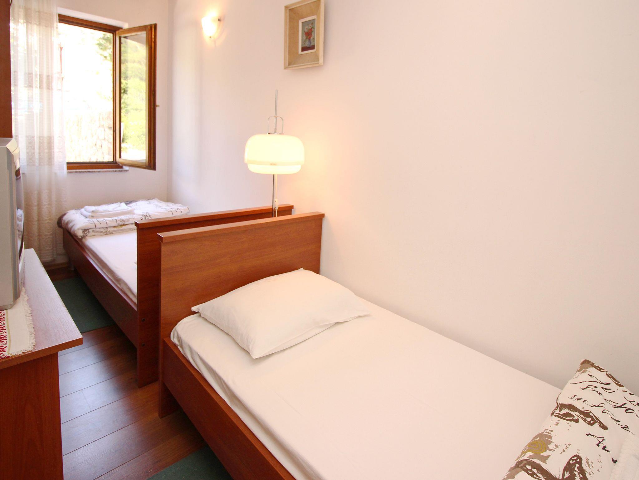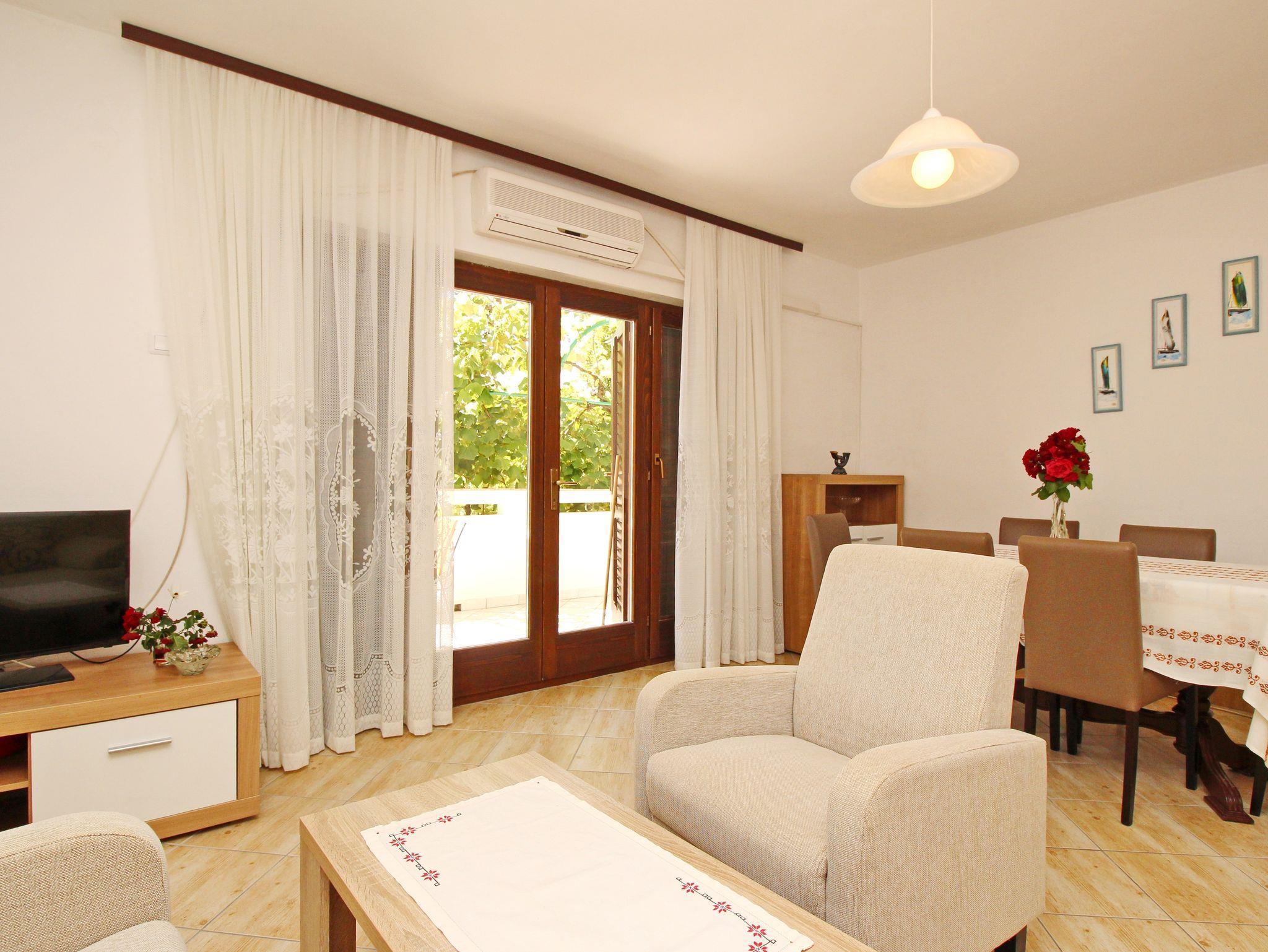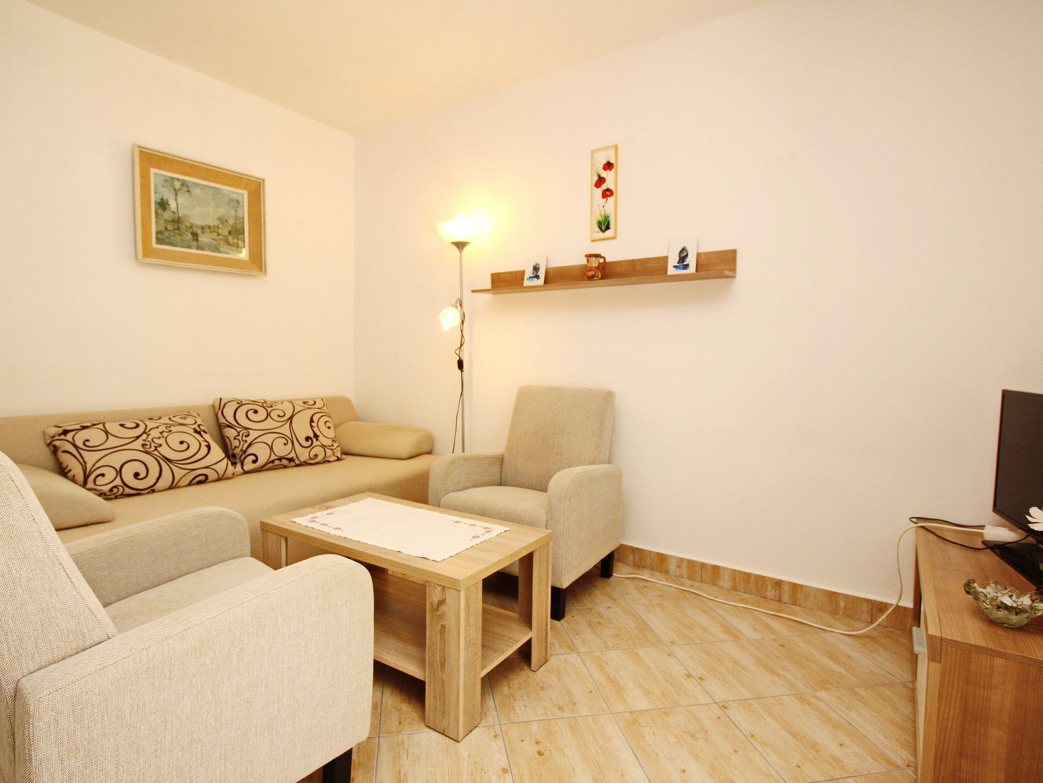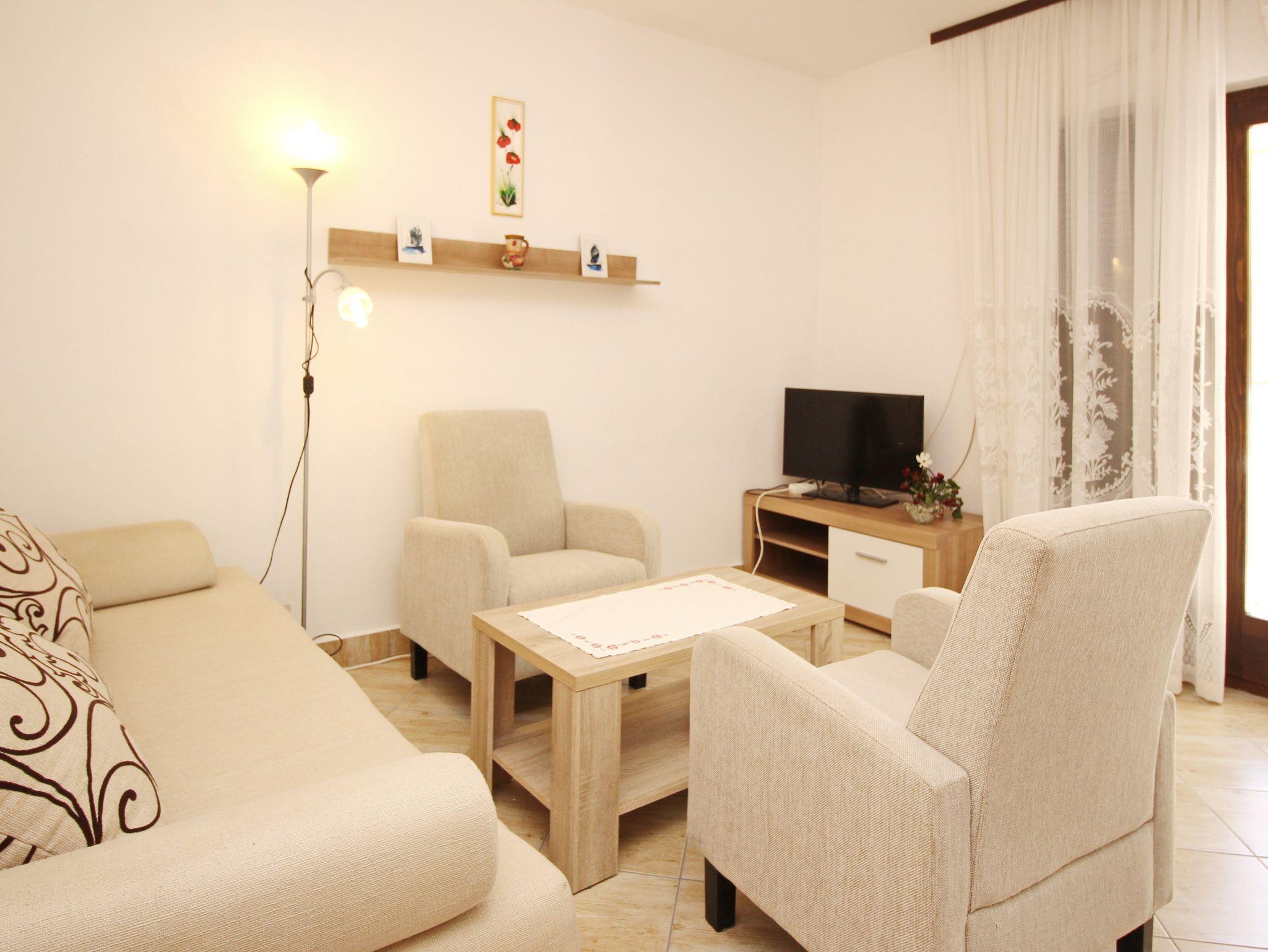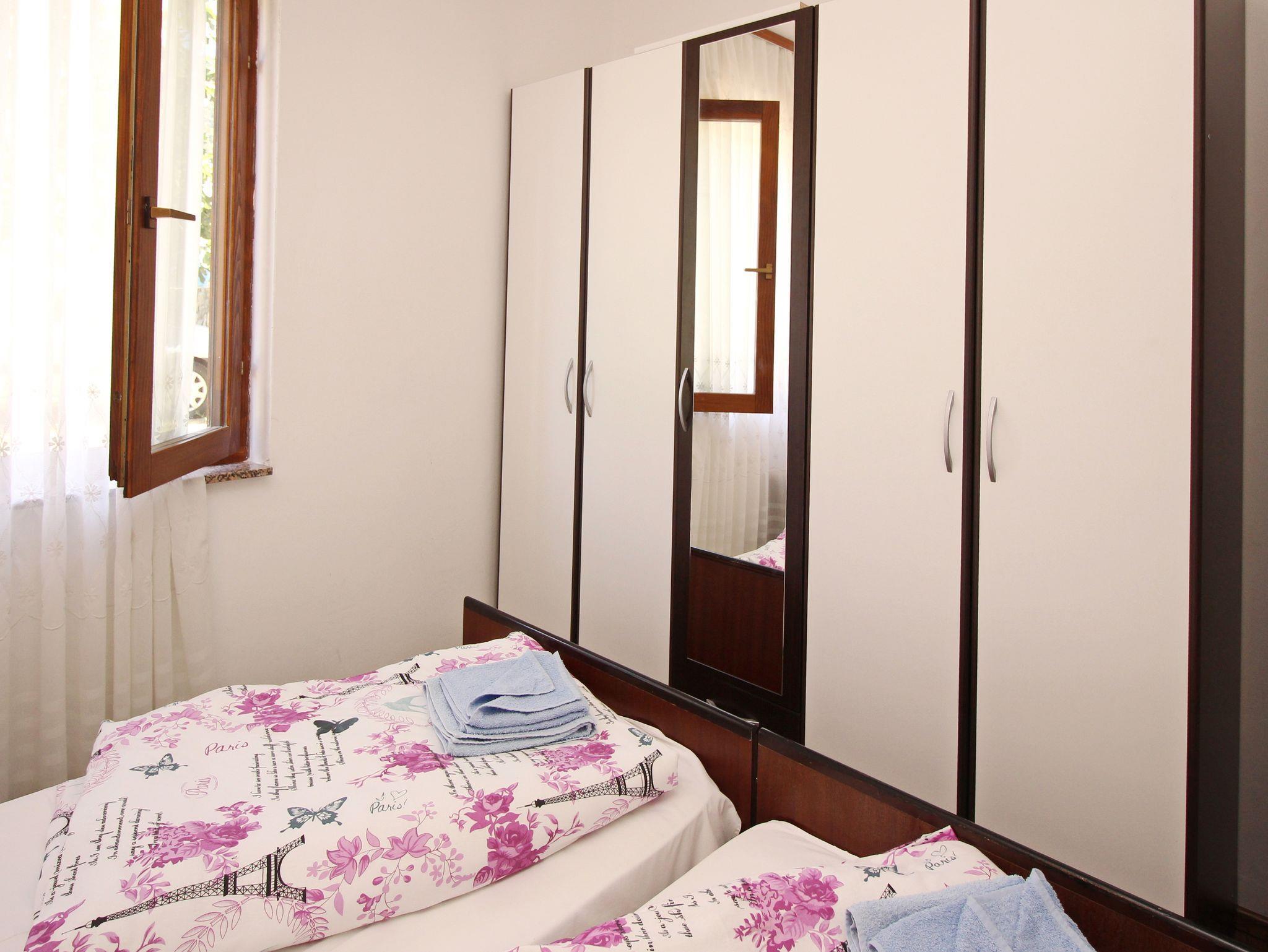 Ferienwohnung bietet Platz für 5 Gäste. Die Betten sind in Schlafzimmern, die es 2 gibt, und in Wohnzimmer, innerhalb einer Gesamtfläche von 55m2, angeordnet. Die Gäste haben eine eigene Terrasse zur Verfügung, auf der sie in warmen Sommernächten genießen können. Für vollen Genuss und Entspannung gibt es einen privaten Grill für Gäste dieser Unterkunft. IM PREIS INBEGRIFFEN: Kurtaxe, Endreinigung, Klimatisierung, Parkplatz, Internet. VERBINDLICHE ZUSÄTZLICHE KOSTEN: Aufzahlung für Kurzaufenthalte (prozentualer Zuschlag pro Nächtigungsanzahl: 30% - 1, 20% - 2, 10% - 3). Die Verfügbarkeit zusätzlicher Dienstleistungen in Ihrem reservierten Termin und die Preise derselben (falls nicht aufgeführt) müssen im Voraus überprüft werden. Zusätzliche Dienstleistungen die in der Zahlungsaufforderung nicht aufgeführt sind werden direkt beim Vermieter bezahlt, angenommen der Gast nutzt auch diese.