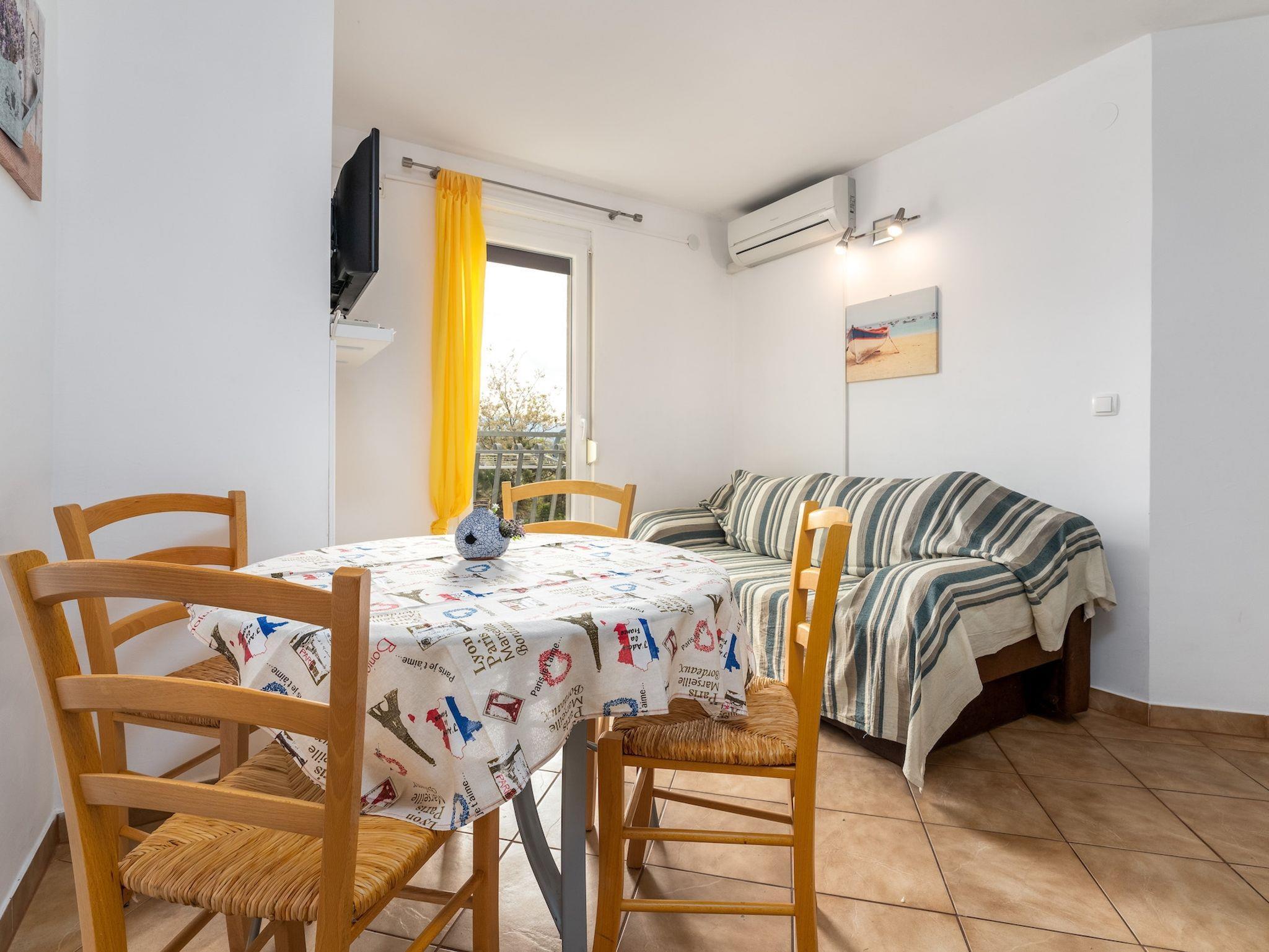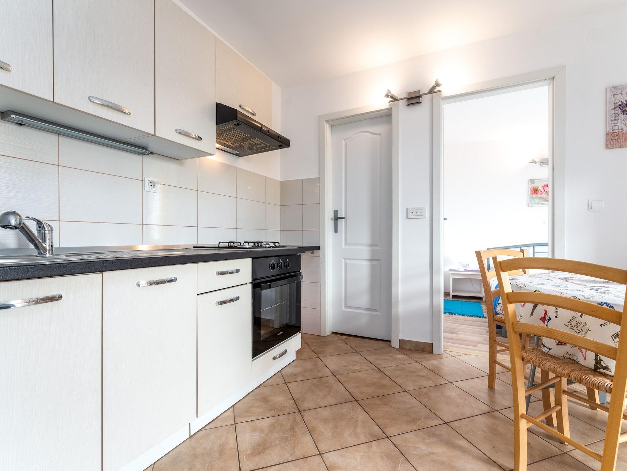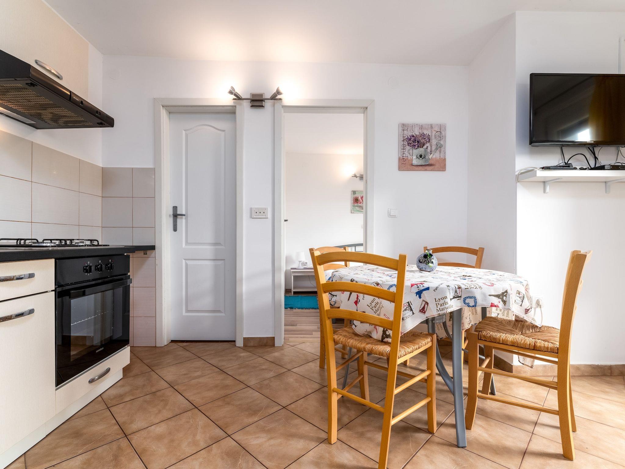 Ferienwohnung bietet Platz für 4 Gäste. Die Betten sind in Schlafzimmern, die es 2 gibt, innerhalb einer Gesamtfläche von 37m2, angeordnet. Die Gäste haben eine eigene Terrasse zur Verfügung, auf der sie in warmen Sommernächten genießen können. Es ist erlaubt, Speisen auf dem Gemeinschafts-Grill vorzubereiten. Durch die Terrasse der gebuchten Unterkunftseinheit gehen auch andere Gäste oder Vermieter. Unterkunftseinheit hat Räume, die von dem Rest der Einheit abgetrennt werden. IM PREIS INBEGRIFFEN: Kurtaxe, Endreinigung, Klimatisierung, Parkplatz, Internet, Kinderbett, Sonnenschirm. VERBINDLICHE ZUSÄTZLICHE KOSTEN: Aufzahlung für Kurzaufenthalte (prozentualer Zuschlag pro Nächtigungsanzahl: 30% - 1, 20% - 2, 10% - 3). Die Verfügbarkeit zusätzlicher Dienstleistungen in Ihrem reservierten Termin und die Preise derselben (falls nicht aufgeführt) müssen im Voraus überprüft werden. Zusätzliche Dienstleistungen die in der Zahlungsaufforderung nicht aufgeführt sind werden direkt beim Vermieter bezahlt, angenommen der Gast nutzt auch diese. Ermäßigung auf den Grundpreis: Gratistag 14=13 (bei einem Aufenthalt von 14 Tagen oder mehr erhalten Sie einen Gratistag für den Aufenthalt bis 31.12.26).
