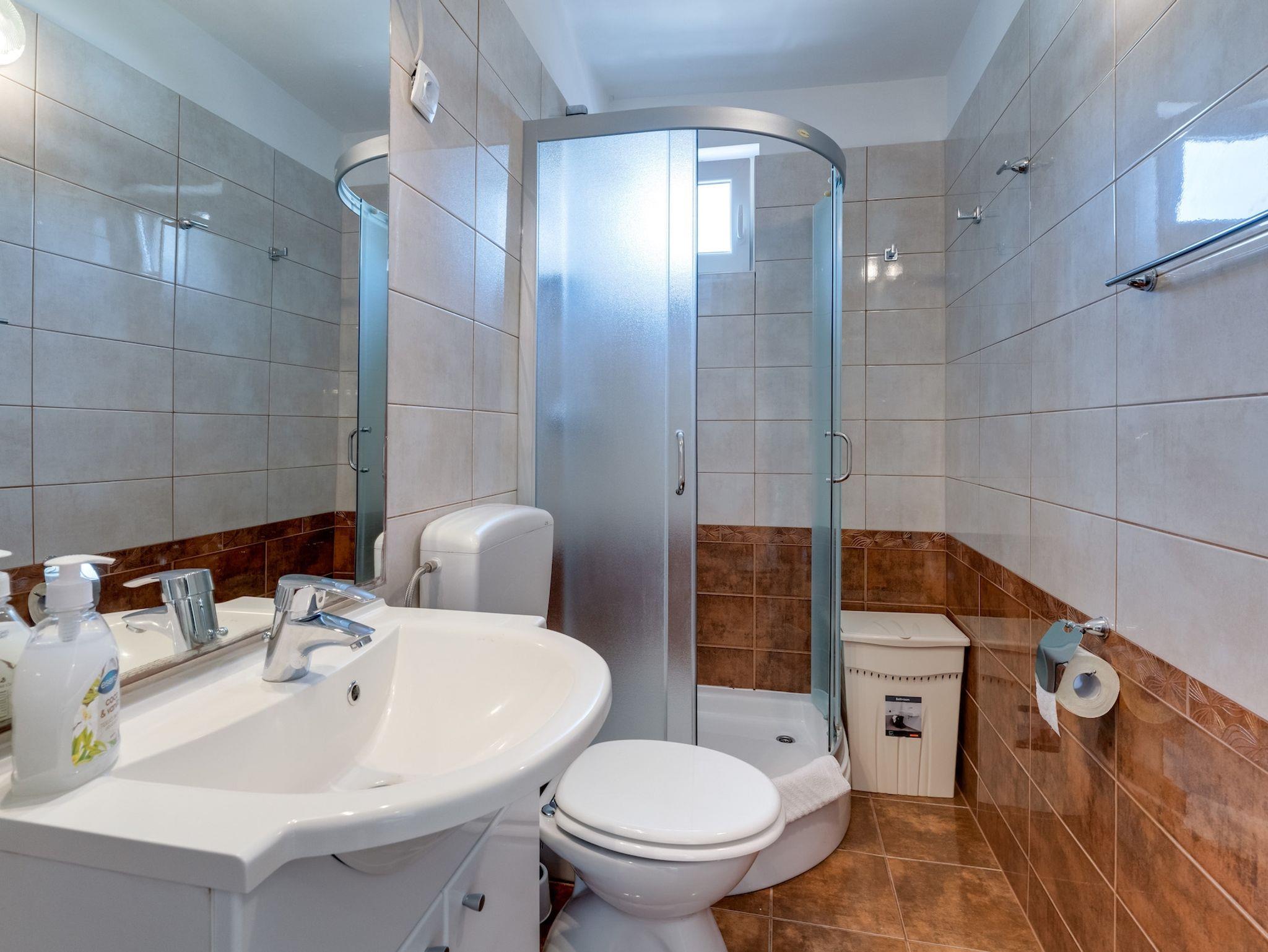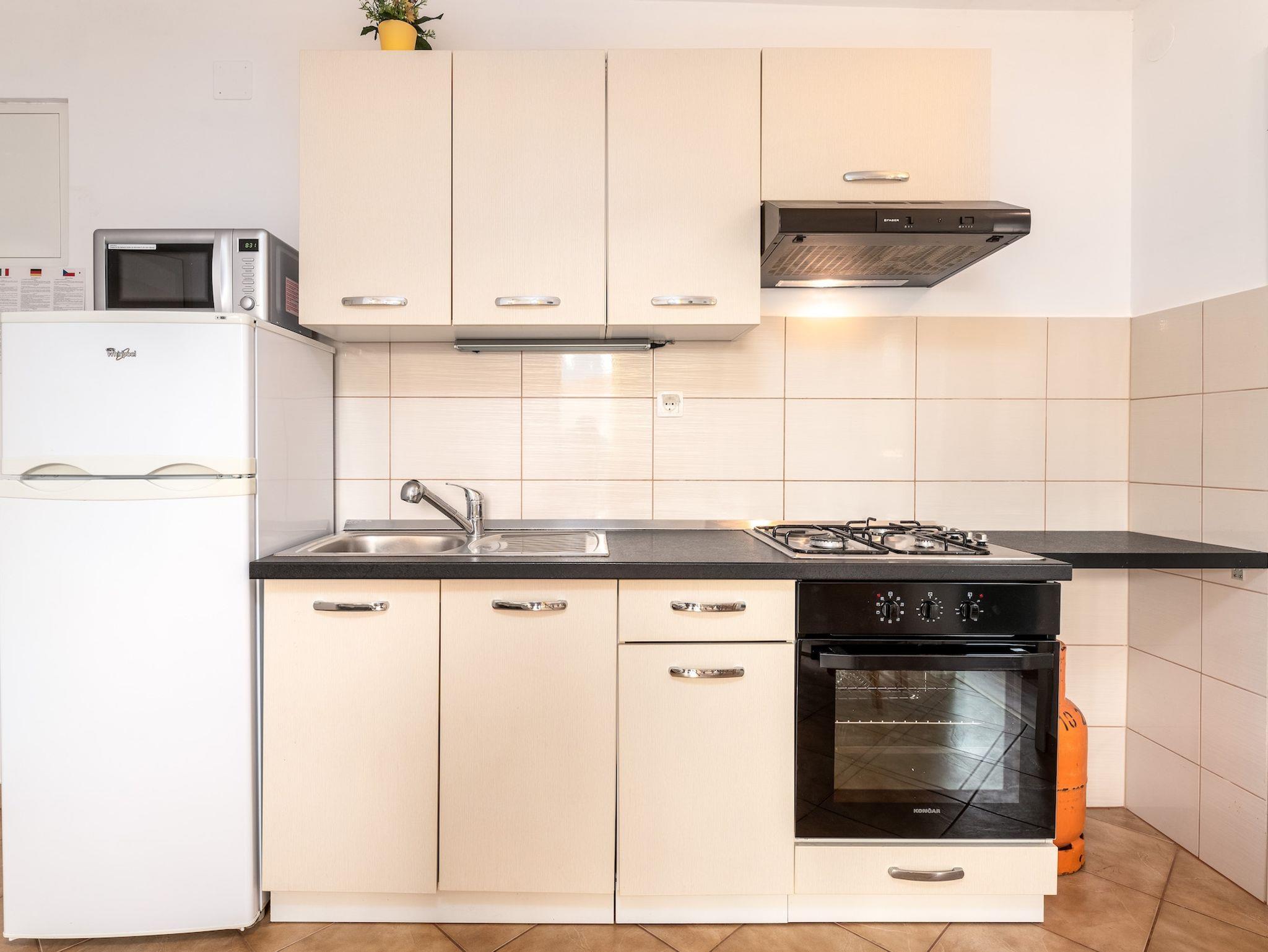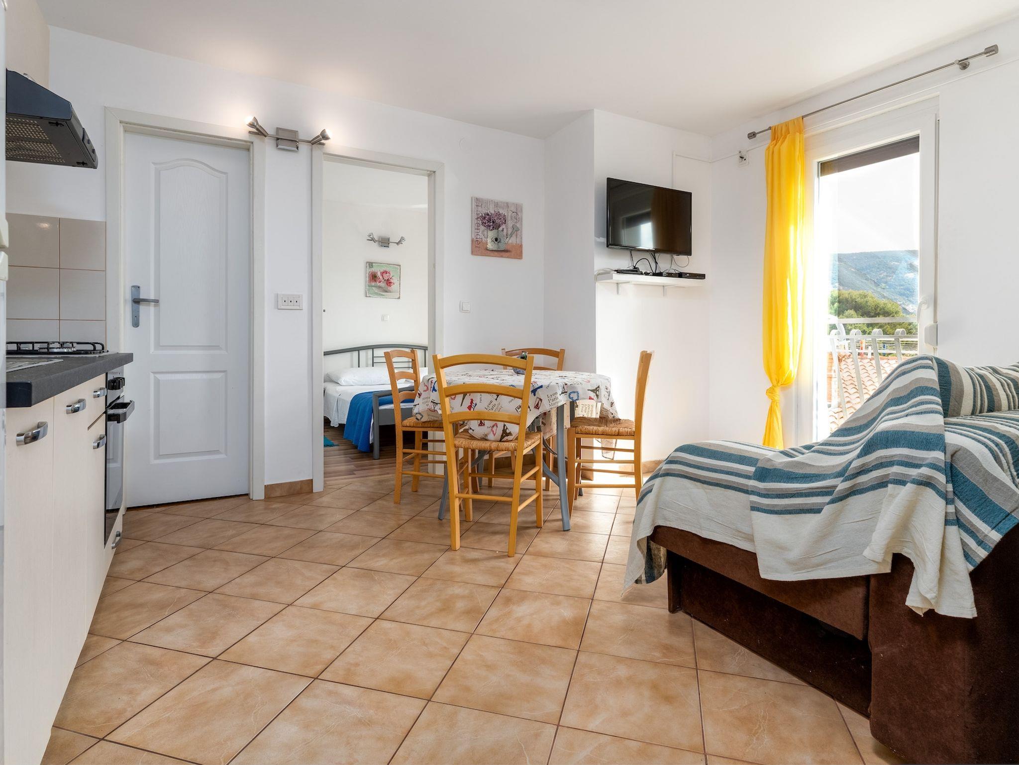 Ferienwohnung bietet Platz für 4 Gäste. Die Betten sind in Schlafzimmern, die es 2 gibt, innerhalb einer Gesamtfläche von 37m2, angeordnet. Die Gäste haben eine eigene Terrasse zur Verfügung, auf der sie in warmen Sommernächten genießen können. Es ist erlaubt, Speisen auf dem Gemeinschafts-Grill vorzubereiten. Durch die Terrasse der gebuchten Unterkunftseinheit gehen auch andere Gäste oder Vermieter. Unterkunftseinheit hat Räume, die von dem Rest der Einheit abgetrennt werden. IM PREIS INBEGRIFFEN: Kurtaxe, Endreinigung, Klimatisierung, Parkplatz, Internet, Kinderbett, Sonnenschirm. VERBINDLICHE ZUSÄTZLICHE KOSTEN: Aufzahlung für Kurzaufenthalte (prozentualer Zuschlag pro Nächtigungsanzahl: 30% - 1, 20% - 2, 10% - 3). Die Verfügbarkeit zusätzlicher Dienstleistungen in Ihrem reservierten Termin und die Preise derselben (falls nicht aufgeführt) müssen im Voraus überprüft werden. Zusätzliche Dienstleistungen die in der Zahlungsaufforderung nicht aufgeführt sind werden direkt beim Vermieter bezahlt, angenommen der Gast nutzt auch diese. Ermäßigung auf den Grundpreis: Gratistag 14=13 (bei einem Aufenthalt von 14 Tagen oder mehr erhalten Sie einen Gratistag für den Aufenthalt bis 31.12.26).