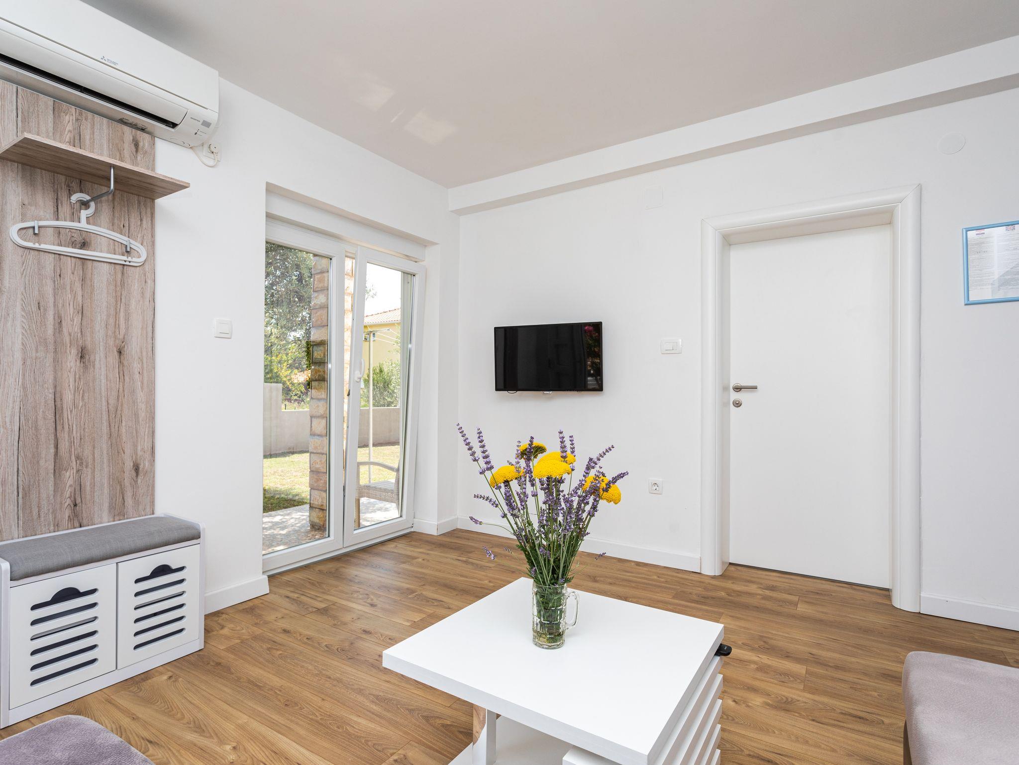 Ferienwohnung bietet Platz für 4 Gäste. Die Betten sind in Schlafzimmern, die es 1 gibt, und in Wohnzimmer, innerhalb einer Gesamtfläche von 39m2, angeordnet. Die Gäste haben eine eigene Terrasse zur Verfügung, auf der sie in warmen Sommernächten genießen können. IM PREIS INBEGRIFFEN: Kurtaxe, Endreinigung, Klimatisierung, Parkplatz, Internet. VERBINDLICHE ZUSÄTZLICHE KOSTEN: Aufzahlung für Kurzaufenthalte (prozentualer Zuschlag pro Nächtigungsanzahl: 30% - 1, 20% - 2, 10% - 3). Die Verfügbarkeit zusätzlicher Dienstleistungen in Ihrem reservierten Termin und die Preise derselben (falls nicht aufgeführt) müssen im Voraus überprüft werden. Zusätzliche Dienstleistungen die in der Zahlungsaufforderung nicht aufgeführt sind werden direkt beim Vermieter bezahlt, angenommen der Gast nutzt auch diese.