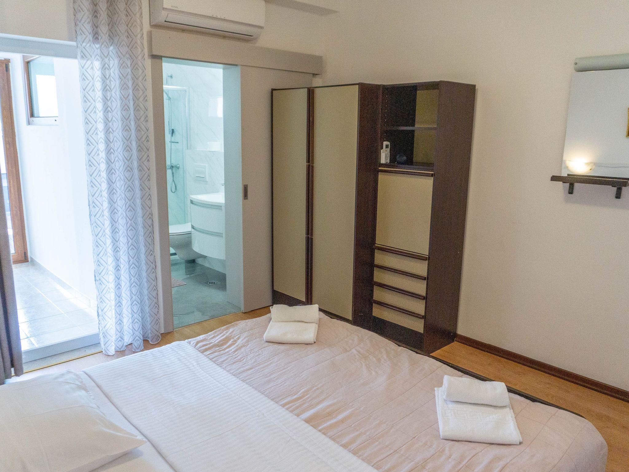 Ferienwohnung bietet Platz für 4 Gäste. Die Betten sind in Schlafzimmern, die es 2 gibt, innerhalb einer Gesamtfläche von 62m2, angeordnet. Die Gäste haben eine eigene Terrasse zur Verfügung, auf der sie in warmen Sommernächten genießen können. Es ist erlaubt, Speisen auf dem Gemeinschafts-Grill vorzubereiten. IM PREIS INBEGRIFFEN: Kurtaxe, Endreinigung, Klimatisierung, Parkplatz, Internet, Föhn. VERBINDLICHE ZUSÄTZLICHE KOSTEN: Aufzahlung für Kurzaufenthalte (prozentualer Zuschlag pro Nächtigungsanzahl: 30% - 1, 20% - 2, 10% - 3). Die Verfügbarkeit zusätzlicher Dienstleistungen in Ihrem reservierten Termin und die Preise derselben (falls nicht aufgeführt) müssen im Voraus überprüft werden. Zusätzliche Dienstleistungen die in der Zahlungsaufforderung nicht aufgeführt sind werden direkt beim Vermieter bezahlt, angenommen der Gast nutzt auch diese.