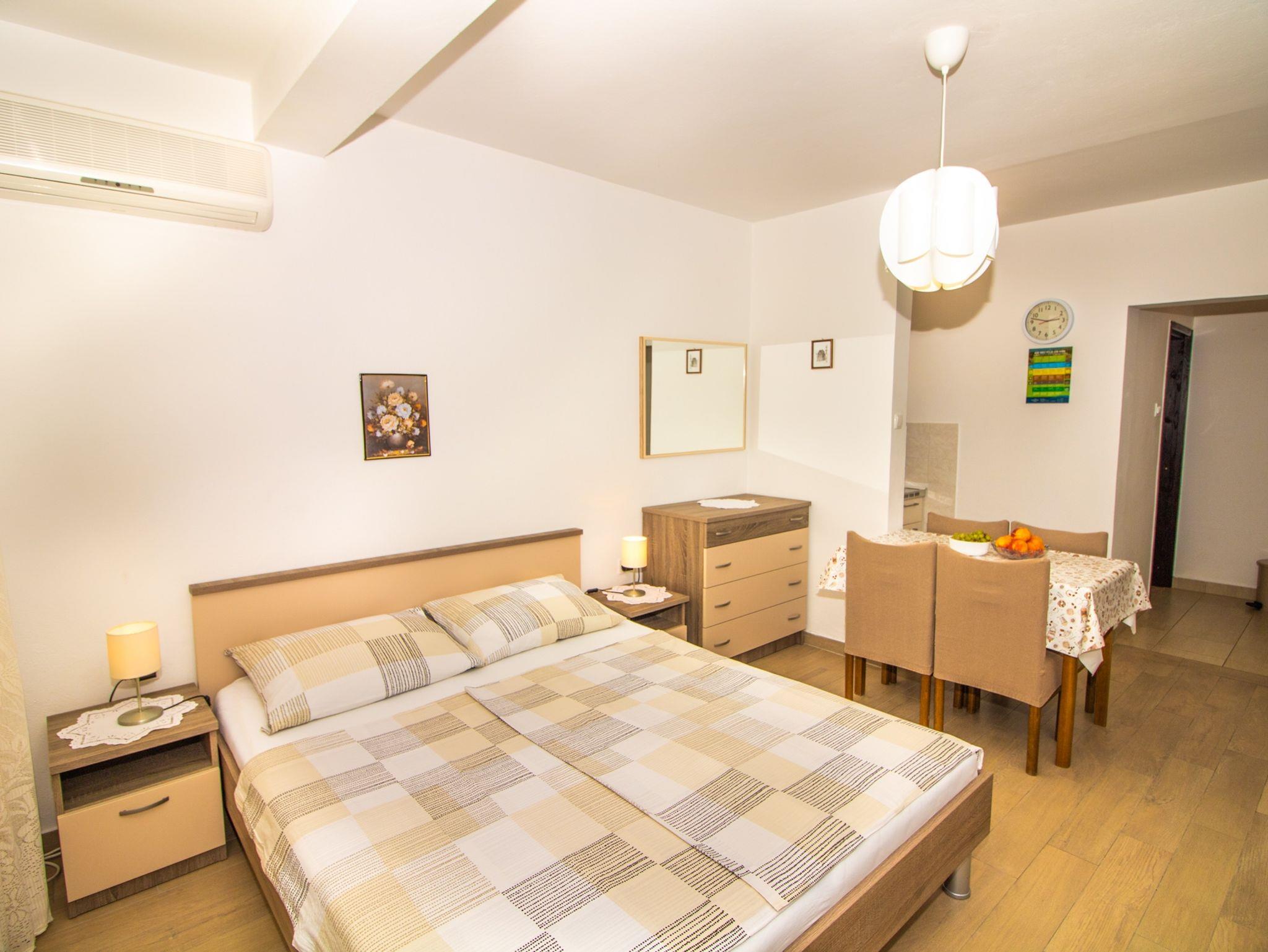 Studio bietet Platz für 2 Gäste. Die Betten sind in Schlafzimmern, die es 1 gibt, innerhalb einer Gesamtfläche von 17m2, angeordnet. Die Gäste haben eine eigene Terrasse zur Verfügung, auf der sie in warmen Sommernächten genießen können. IM PREIS INBEGRIFFEN: Kurtaxe, Endreinigung, Klimatisierung, Parkplatz, Internet. VERBINDLICHE ZUSÄTZLICHE KOSTEN: Aufzahlung für Kurzaufenthalte (prozentualer Zuschlag pro Nächtigungsanzahl: 30% - 1, 20% - 2, 10% - 3). Die Verfügbarkeit zusätzlicher Dienstleistungen in Ihrem reservierten Termin und die Preise derselben (falls nicht aufgeführt) müssen im Voraus überprüft werden. Zusätzliche Dienstleistungen die in der Zahlungsaufforderung nicht aufgeführt sind werden direkt beim Vermieter bezahlt, angenommen der Gast nutzt auch diese.