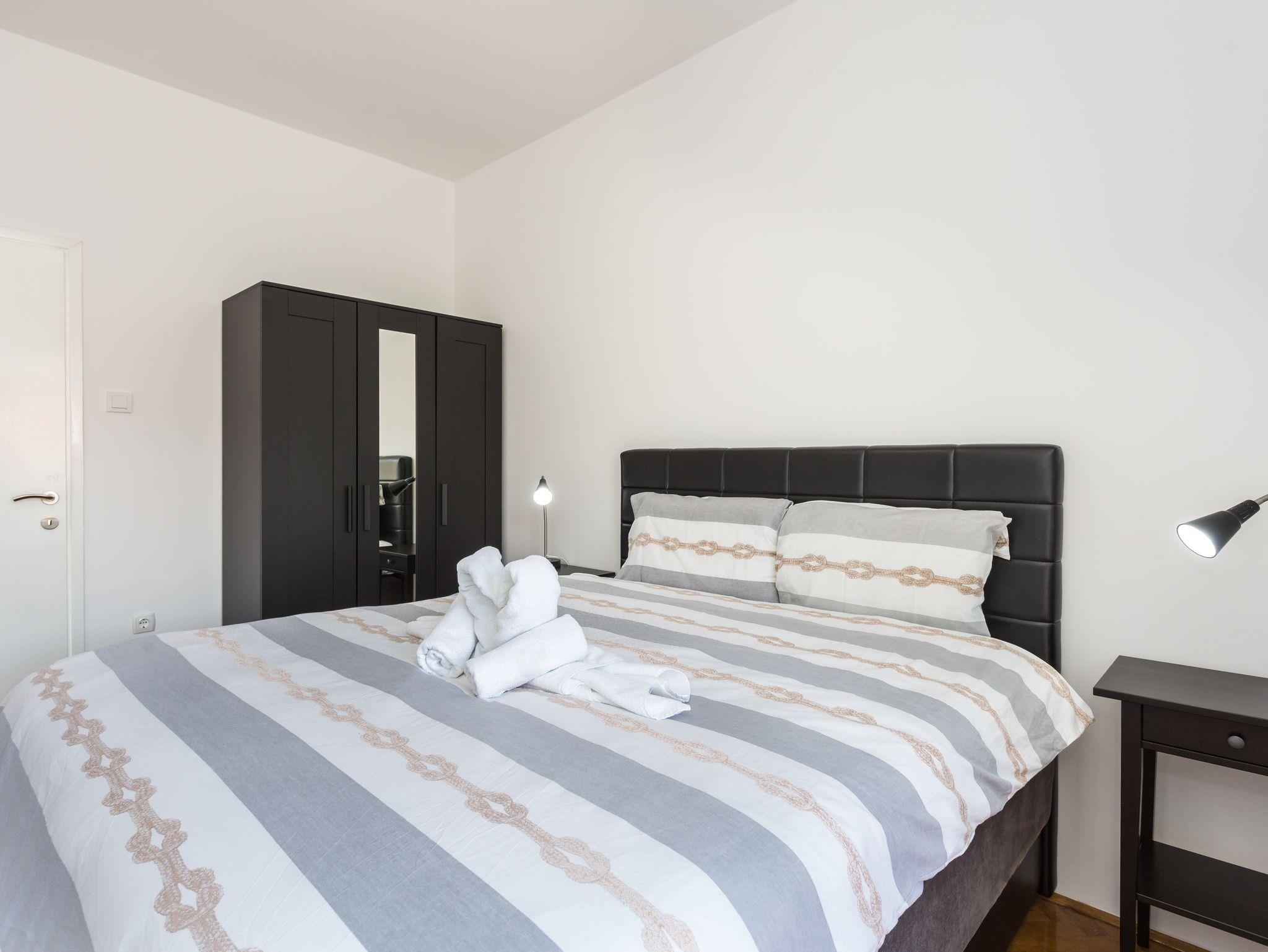 Ferienwohnung bietet Platz für 3 Gäste. Die Betten sind in Schlafzimmern, die es 1 gibt, und in Wohnzimmer, innerhalb einer Gesamtfläche von 35m2, angeordnet. Die Gäste haben einen eigenen Balkon zur Verfügung, auf der sie in warmen Sommernächten genießen können. IM PREIS INBEGRIFFEN: Kurtaxe, Endreinigung, Klimatisierung, Parkplatz, Internet. VERBINDLICHE ZUSÄTZLICHE KOSTEN: Aufzahlung für Kurzaufenthalte (prozentualer Zuschlag pro Nächtigungsanzahl: 30% - 1, 20% - 2, 10% - 3). Die Verfügbarkeit zusätzlicher Dienstleistungen in Ihrem reservierten Termin und die Preise derselben (falls nicht aufgeführt) müssen im Voraus überprüft werden. Zusätzliche Dienstleistungen die in der Zahlungsaufforderung nicht aufgeführt sind werden direkt beim Vermieter bezahlt, angenommen der Gast nutzt auch diese.