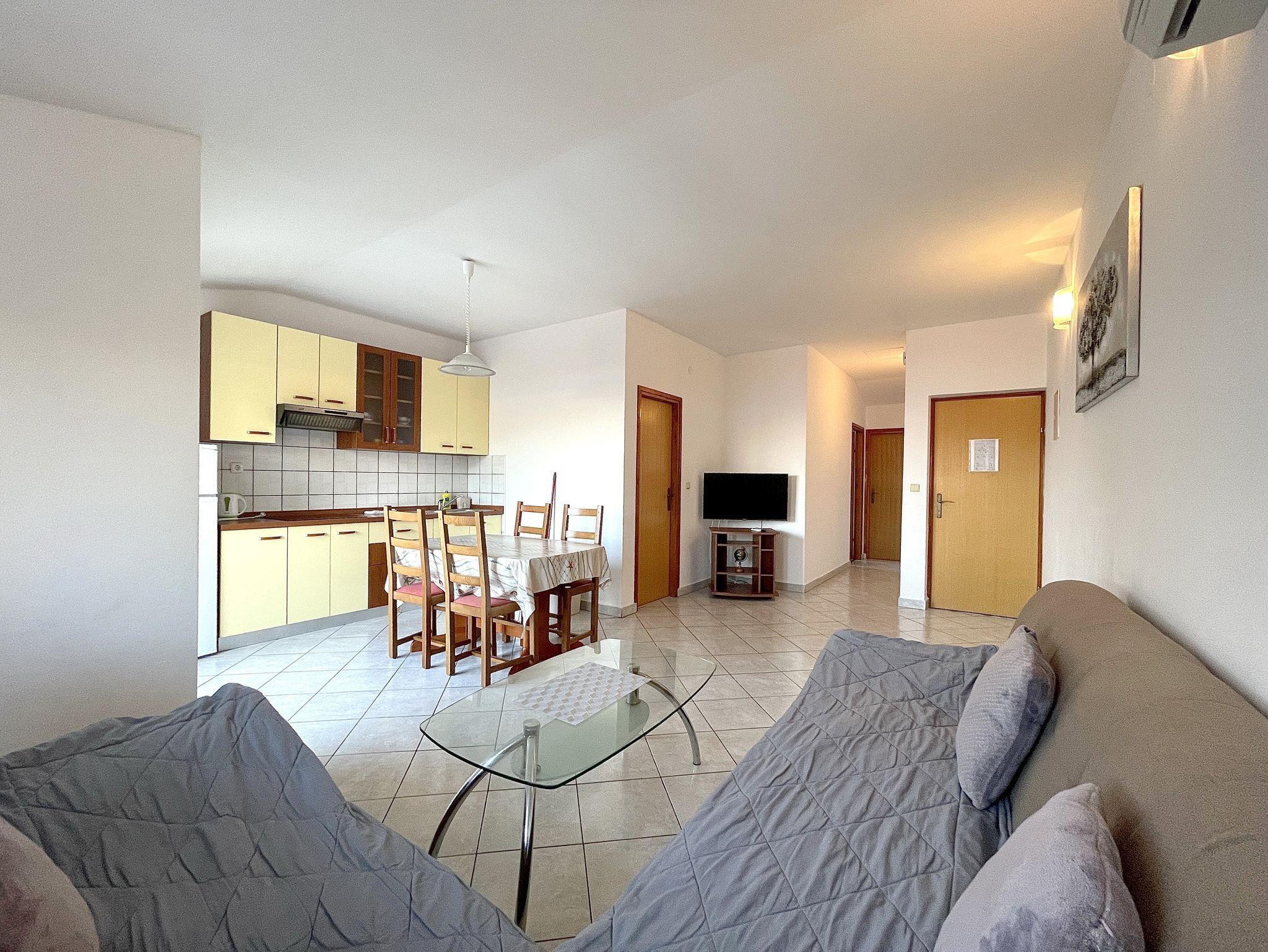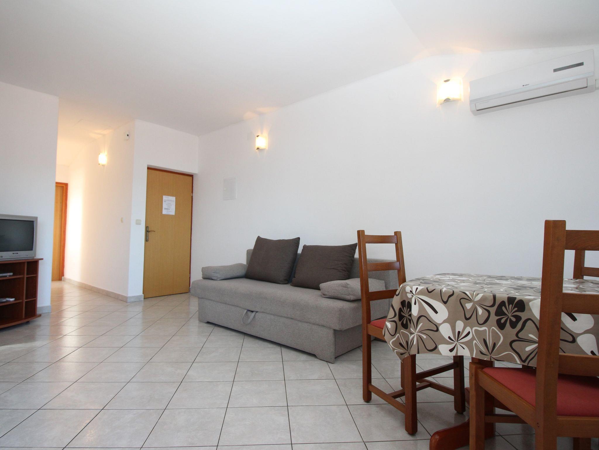 Ferienwohnung bietet Platz für 5 Gäste. Die Betten sind in Schlafzimmern, die es 2 gibt, und in Wohnzimmer, innerhalb einer Gesamtfläche von 60m2, angeordnet. Die Gäste haben einen eigenen Balkon zur Verfügung, auf der sie in warmen Sommernächten genießen können. Das Apartment bietet Meerblick. Es ist erlaubt, Speisen auf dem Gemeinschafts-Grill vorzubereiten. IM PREIS INBEGRIFFEN: Kurtaxe, Endreinigung, Klimatisierung, Parkplatz, Internet. VERBINDLICHE ZUSÄTZLICHE KOSTEN: Aufzahlung für Kurzaufenthalte (prozentualer Zuschlag pro Nächtigungsanzahl: 30% - 1, 20% - 2, 10% - 3). Die Verfügbarkeit zusätzlicher Dienstleistungen in Ihrem reservierten Termin und die Preise derselben (falls nicht aufgeführt) müssen im Voraus überprüft werden. Zusätzliche Dienstleistungen die in der Zahlungsaufforderung nicht aufgeführt sind werden direkt beim Vermieter bezahlt, angenommen der Gast nutzt auch diese.