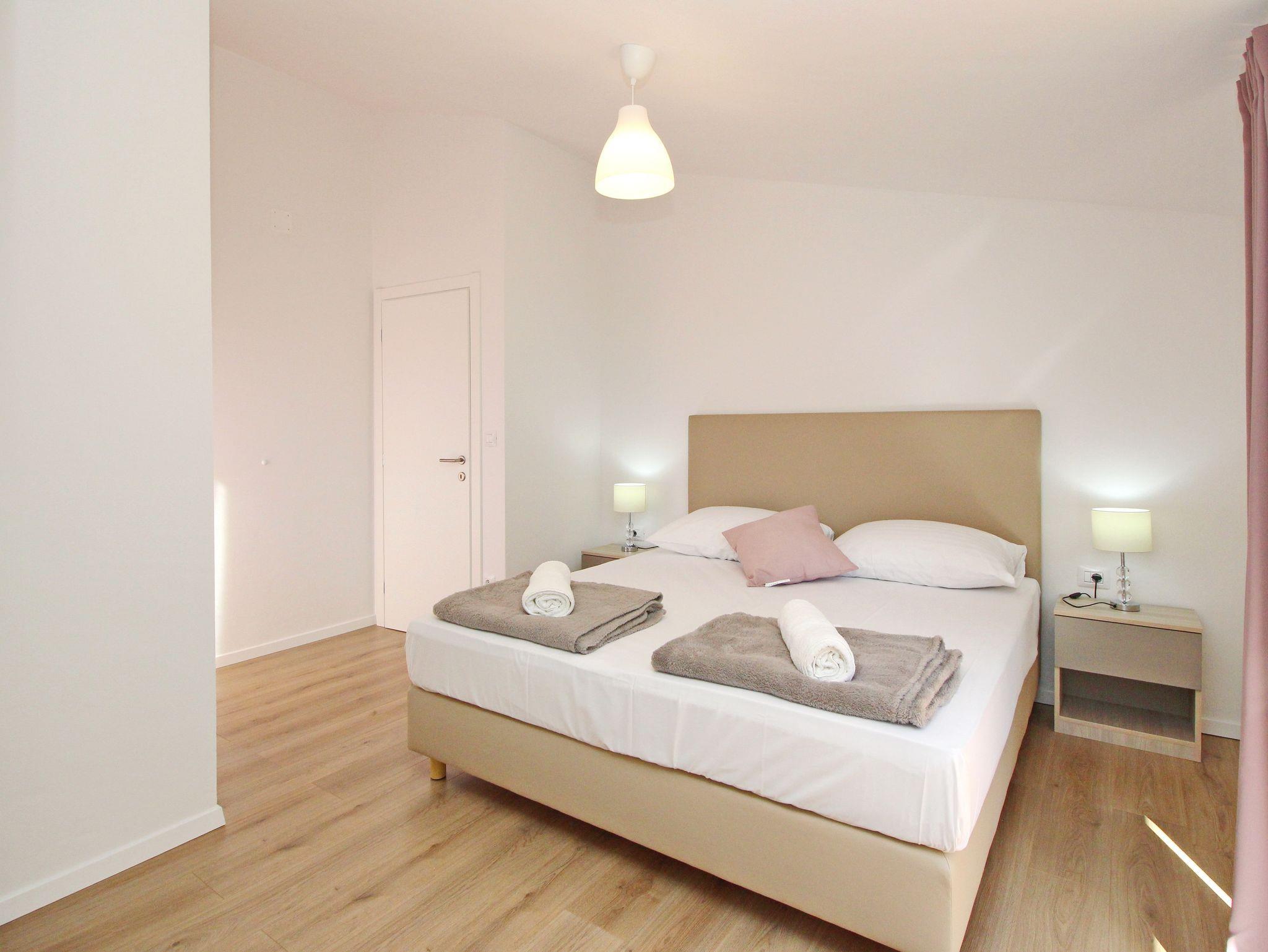 Ferienwohnung bietet Platz für 6 Gäste. Die Betten sind in Schlafzimmern, die es 3 gibt, innerhalb einer Gesamtfläche von 70m2, angeordnet. Die Gäste haben einen eigenen Balkon zur Verfügung, auf der sie in warmen Sommernächten genießen können. Es ist erlaubt, Speisen auf dem Gemeinschafts-Grill vorzubereiten. IM PREIS INBEGRIFFEN: Kurtaxe, Endreinigung, Klimatisierung, Parkplatz, Internet, Föhn. VERBINDLICHE ZUSÄTZLICHE KOSTEN: Aufzahlung für Kurzaufenthalte (prozentualer Zuschlag pro Nächtigungsanzahl: 30% - 1, 20% - 2, 10% - 3). Die Verfügbarkeit zusätzlicher Dienstleistungen in Ihrem reservierten Termin und die Preise derselben (falls nicht aufgeführt) müssen im Voraus überprüft werden. Zusätzliche Dienstleistungen die in der Zahlungsaufforderung nicht aufgeführt sind werden direkt beim Vermieter bezahlt, angenommen der Gast nutzt auch diese.
