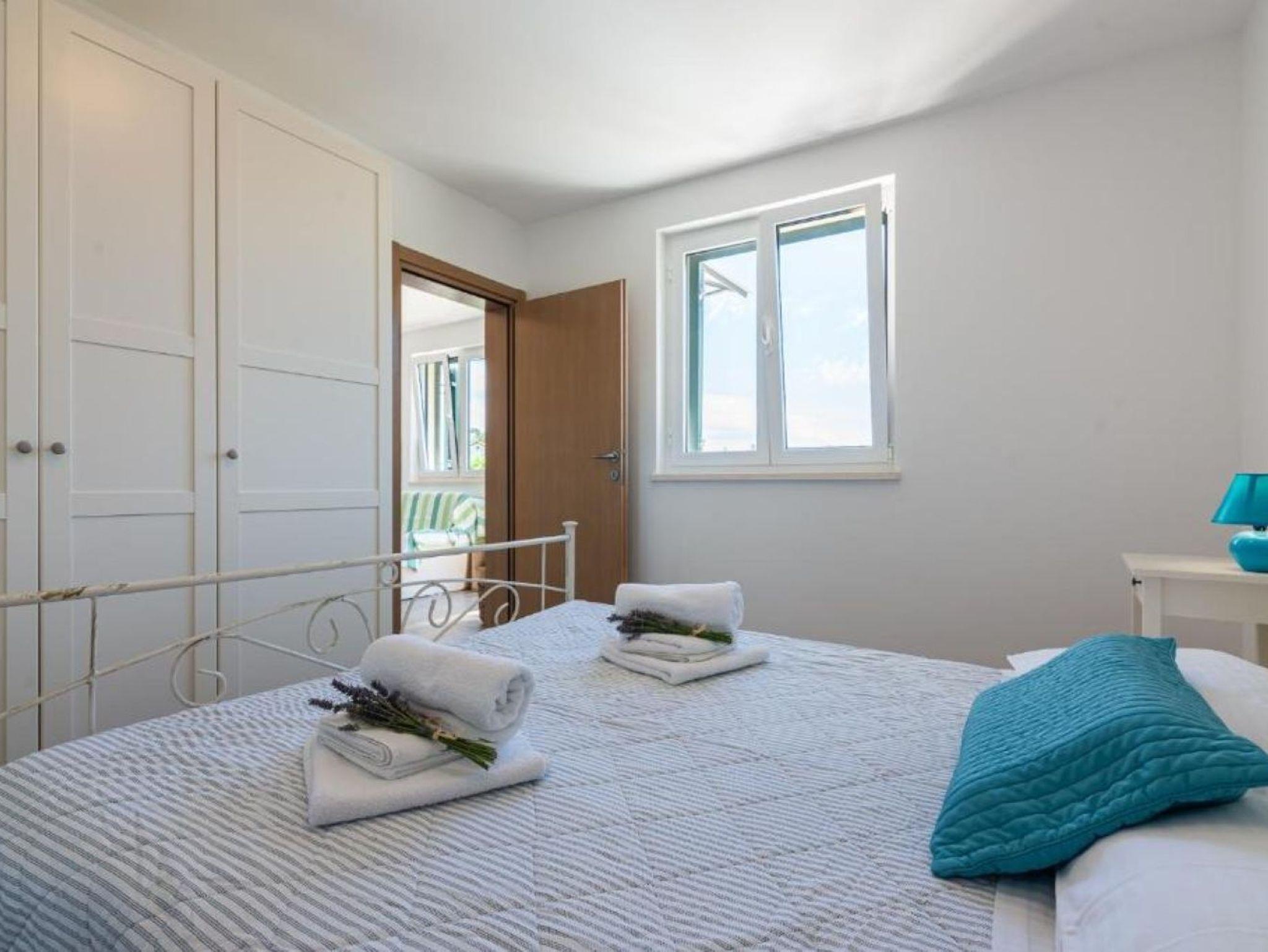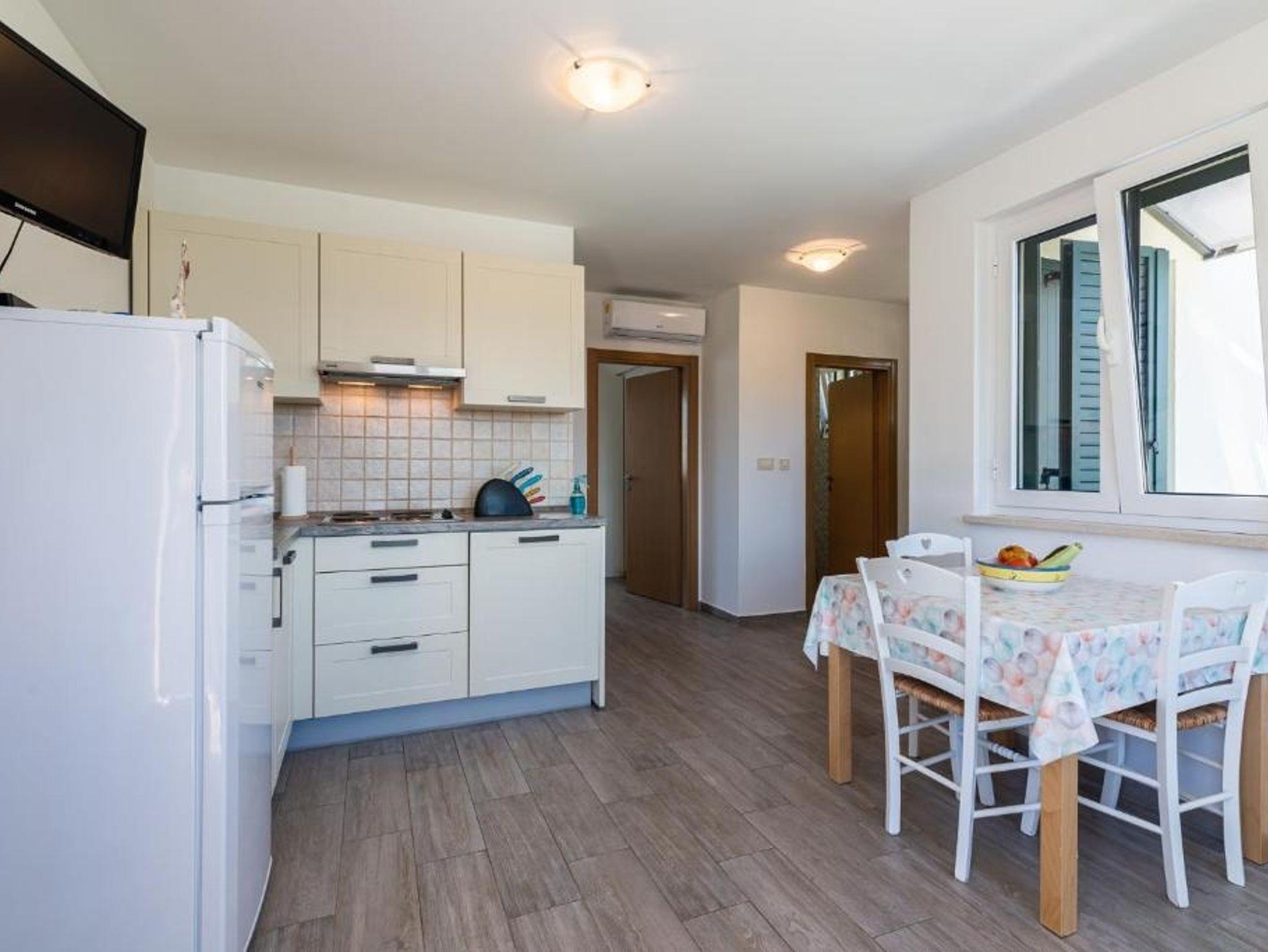 Ferienwohnung bietet Platz für 5 Gäste. Die Betten sind in Schlafzimmern, die es 2 gibt, und in Wohnzimmer, innerhalb einer Gesamtfläche von 50m2, angeordnet. Die Gäste haben einen eigenen Balkon zur Verfügung, auf der sie in warmen Sommernächten genießen können. Es ist erlaubt, Speisen auf dem Gemeinschafts-Grill vorzubereiten. Während ihres Aufenthalts können Gäste das gemeinsam zur Nutzung stehende Schwimmbad benutzen. IM PREIS INBEGRIFFEN: Kurtaxe, Endreinigung, Klimatisierung, Pool, Parkplatz, Internet, Kinderbett, Föhn. VERBINDLICHE ZUSÄTZLICHE KOSTEN: Aufzahlung für Kurzaufenthalte (prozentualer Zuschlag pro Nächtigungsanzahl: 30% - 1, 20% - 2, 10% - 3). Die Verfügbarkeit zusätzlicher Dienstleistungen in Ihrem reservierten Termin und die Preise derselben (falls nicht aufgeführt) müssen im Voraus überprüft werden. Zusätzliche Dienstleistungen die in der Zahlungsaufforderung nicht aufgeführt sind werden direkt beim Vermieter bezahlt, angenommen der Gast nutzt auch diese.