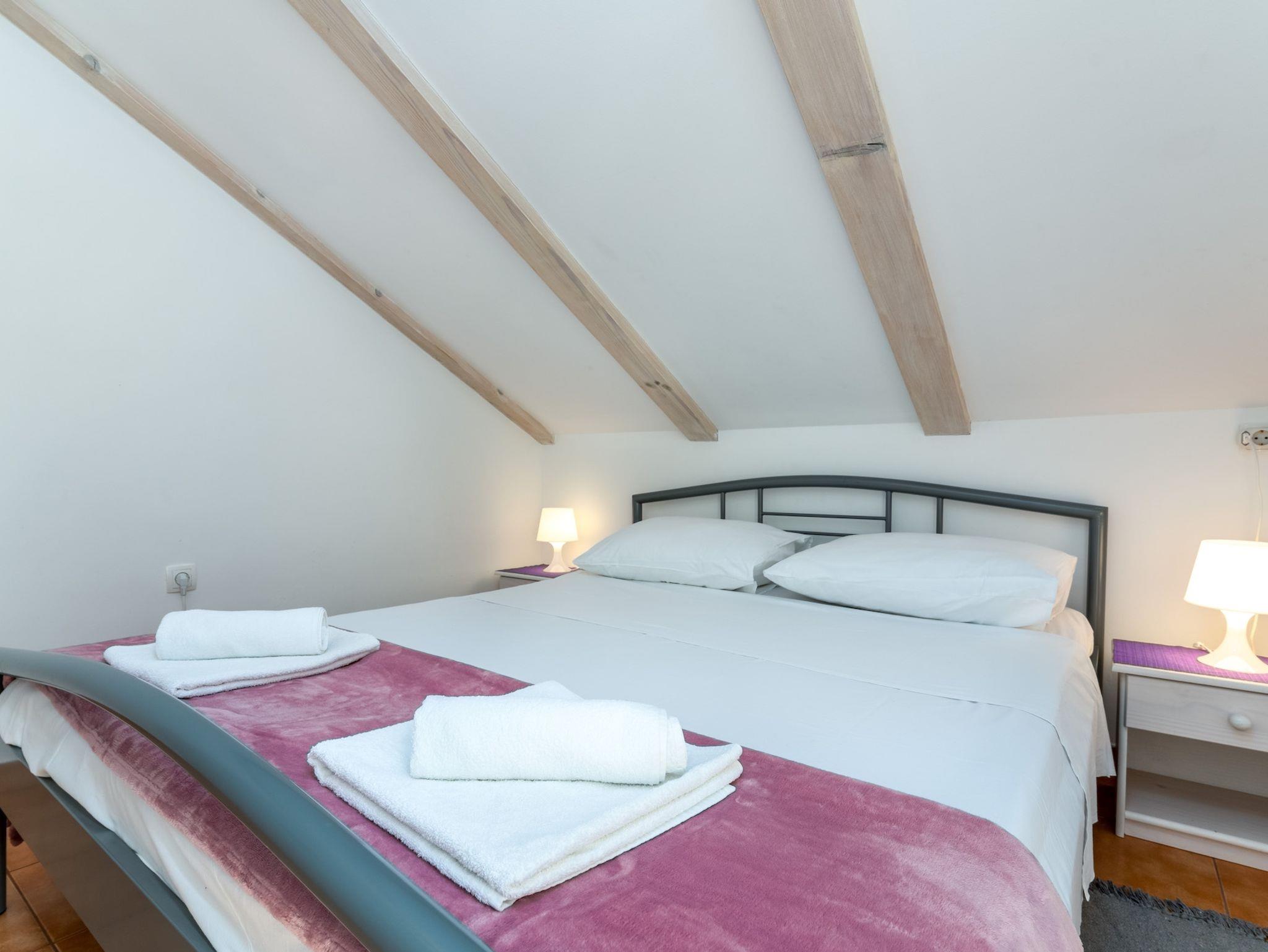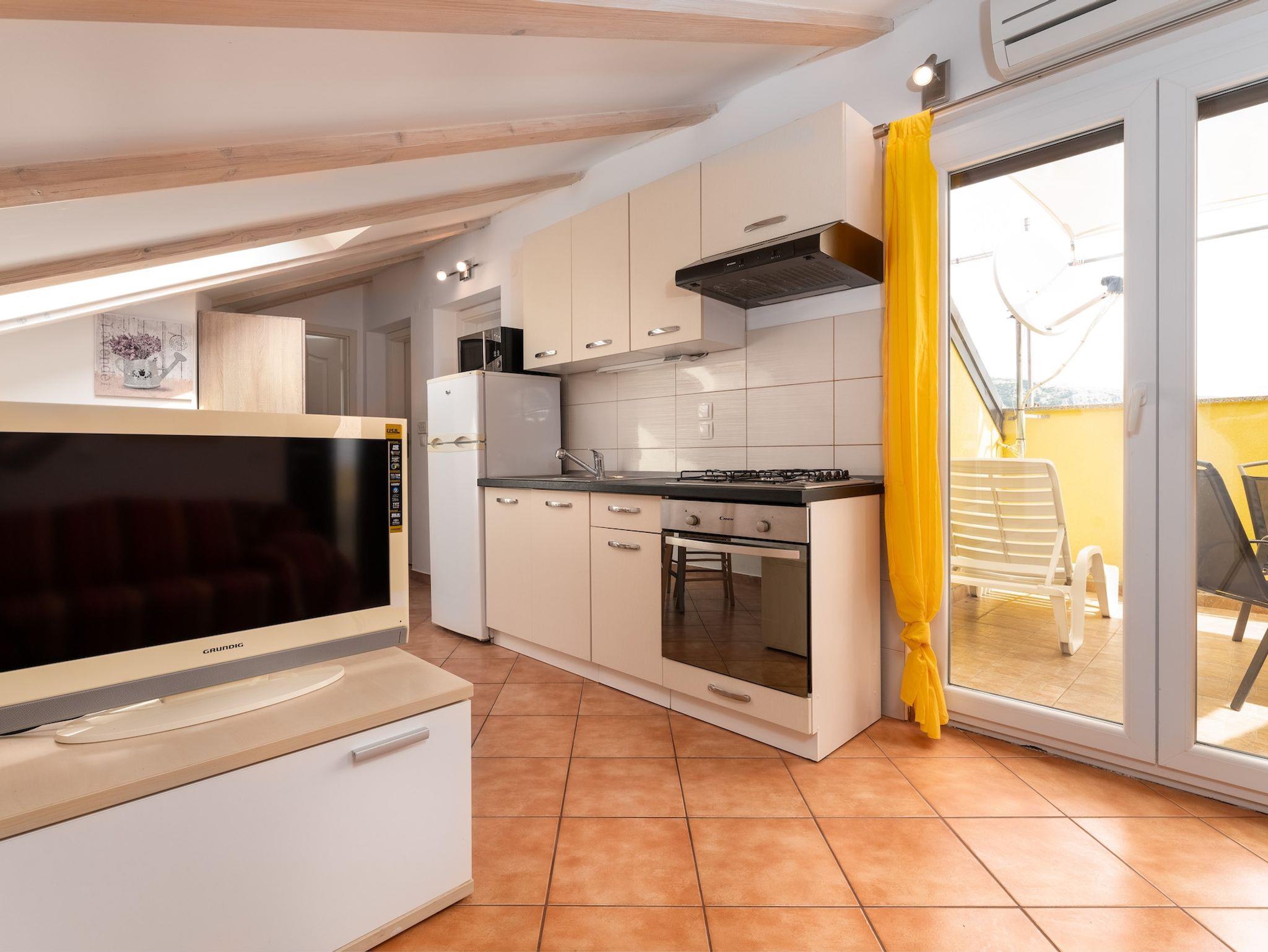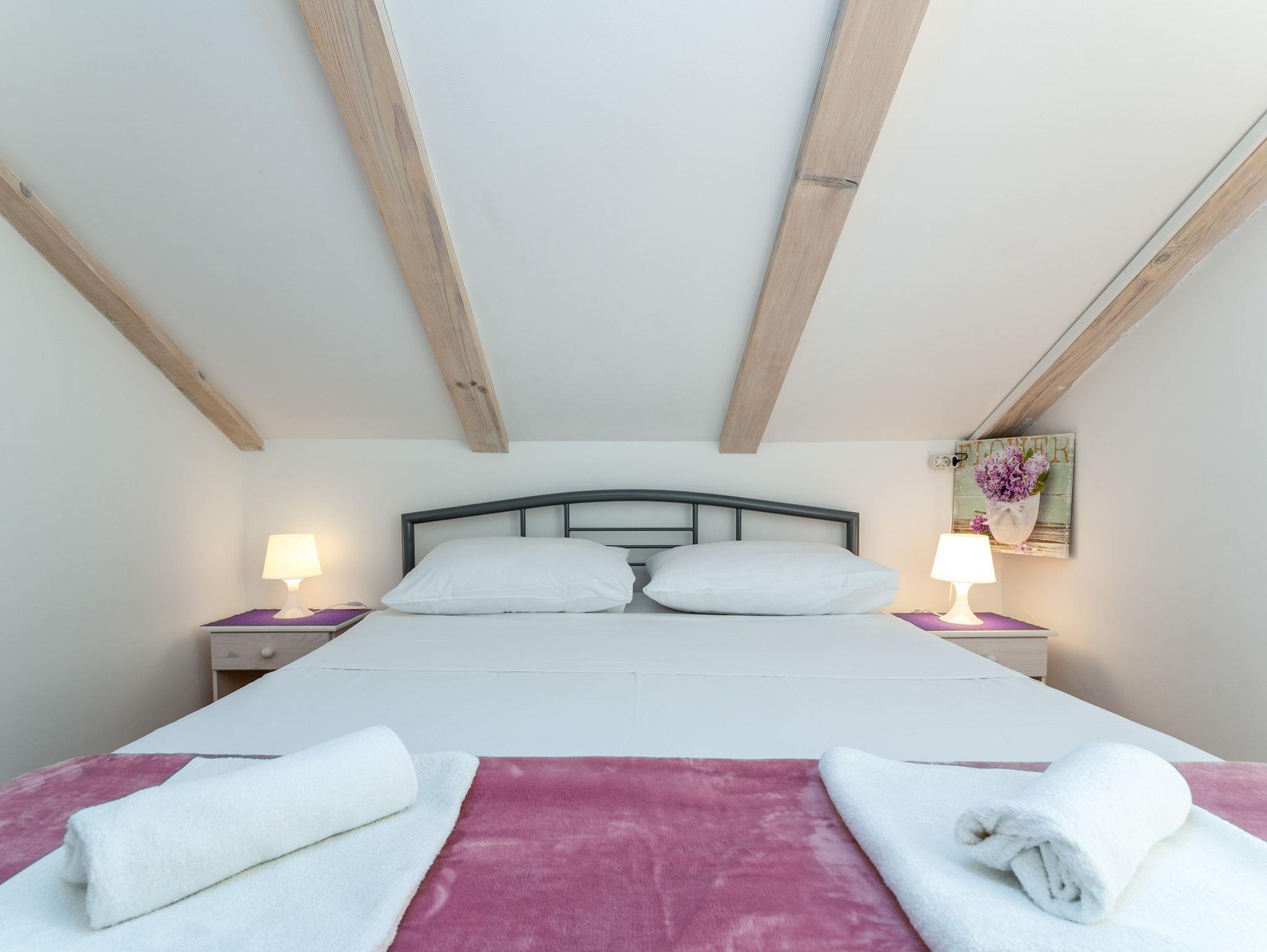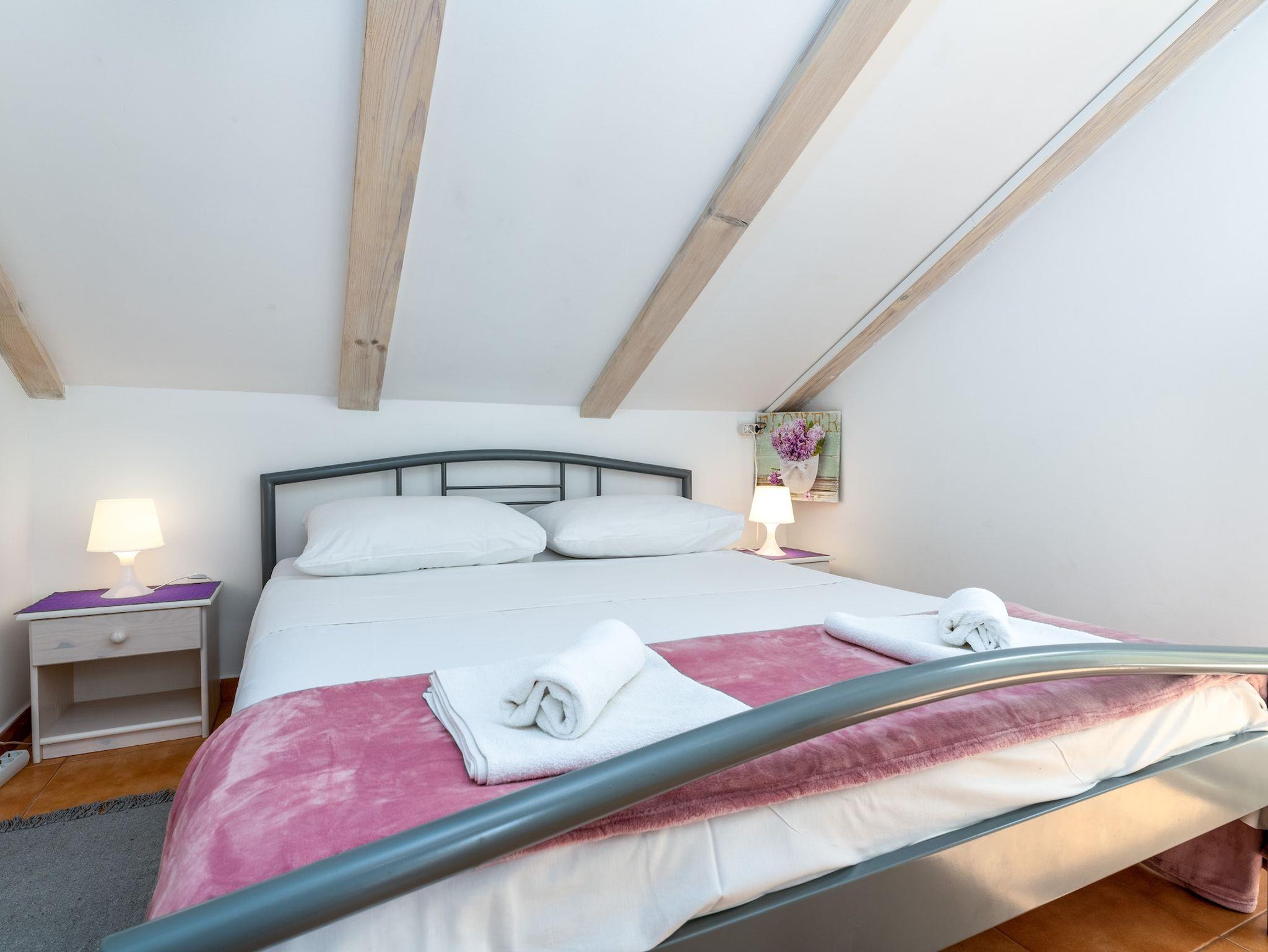 Ferienwohnung bietet Platz für 4 Gäste. Die Betten sind in Schlafzimmern, die es 2 gibt, innerhalb einer Gesamtfläche von 42m2, angeordnet. Die Gäste haben eine eigene Terrasse zur Verfügung, auf der sie in warmen Sommernächten genießen können. Das Apartment bietet Meerblick. Es ist erlaubt, Speisen auf dem Gemeinschafts-Grill vorzubereiten. IM PREIS INBEGRIFFEN: Kurtaxe, Endreinigung, Klimatisierung, Parkplatz, Internet, Kinderbett, Sonnenschirm. VERBINDLICHE ZUSÄTZLICHE KOSTEN: Aufzahlung für Kurzaufenthalte (prozentualer Zuschlag pro Nächtigungsanzahl: 30% - 1, 20% - 2, 10% - 3). Die Verfügbarkeit zusätzlicher Dienstleistungen in Ihrem reservierten Termin und die Preise derselben (falls nicht aufgeführt) müssen im Voraus überprüft werden. Zusätzliche Dienstleistungen die in der Zahlungsaufforderung nicht aufgeführt sind werden direkt beim Vermieter bezahlt, angenommen der Gast nutzt auch diese. Ermäßigung auf den Grundpreis: Gratistag 14=13 (bei einem Aufenthalt von 14 Tagen oder mehr erhalten Sie einen Gratistag für den Aufenthalt bis 31.12.26).