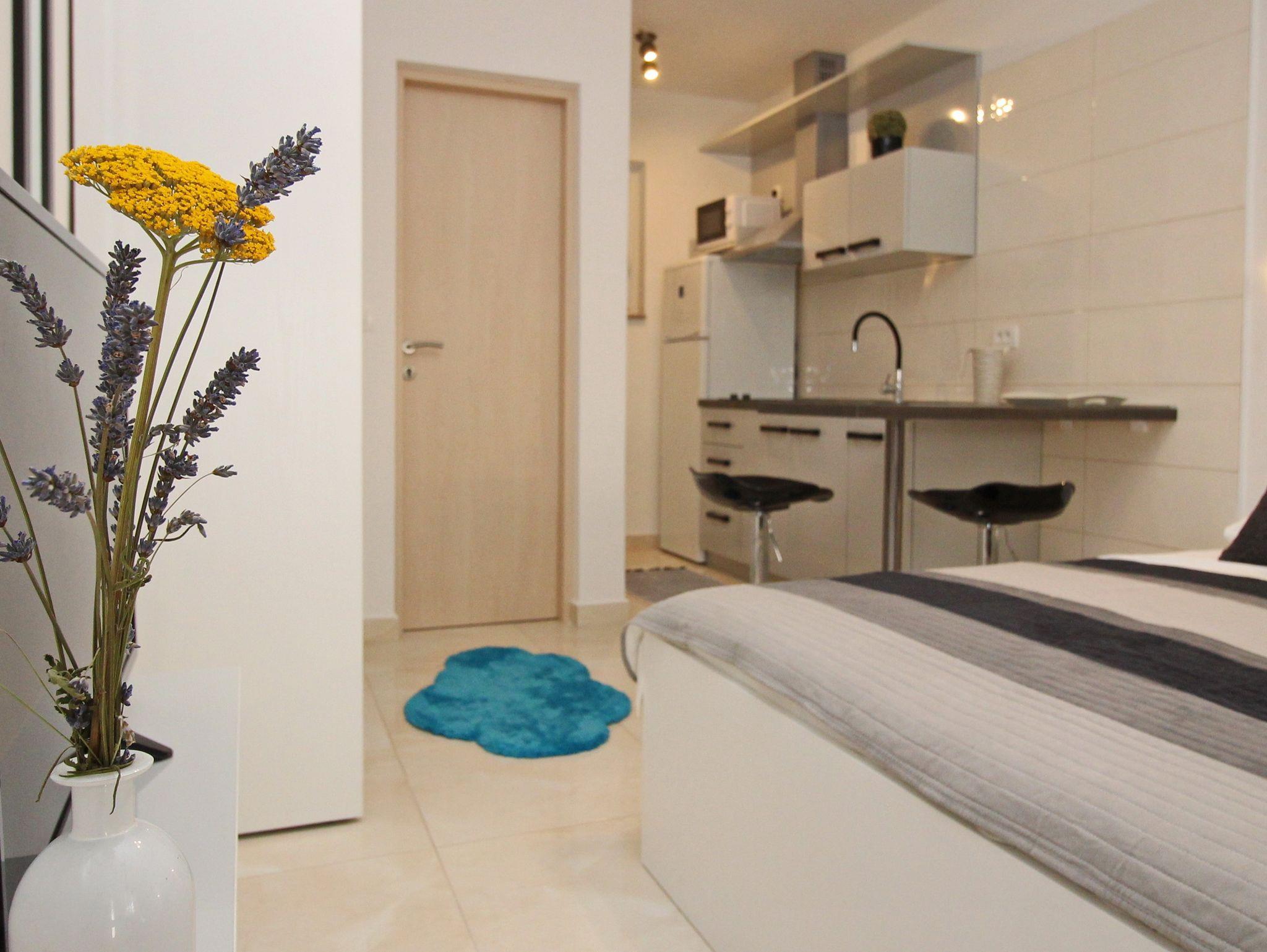 Studio bietet Platz für 2 Gäste. Die Betten sind in Schlafzimmern, die es 1 gibt, innerhalb einer Gesamtfläche von 20m2, angeordnet. Die Gäste haben eine eigene Terrasse zur Verfügung, auf der sie in warmen Sommernächten genießen können. IM PREIS INBEGRIFFEN: Kurtaxe, Endreinigung, Klimatisierung, Parkplatz, Internet. VERBINDLICHE ZUSÄTZLICHE KOSTEN: Aufzahlung für Kurzaufenthalte (prozentualer Zuschlag pro Nächtigungsanzahl: 30% - 1, 20% - 2, 10% - 3). Die Verfügbarkeit zusätzlicher Dienstleistungen in Ihrem reservierten Termin und die Preise derselben (falls nicht aufgeführt) müssen im Voraus überprüft werden. Zusätzliche Dienstleistungen die in der Zahlungsaufforderung nicht aufgeführt sind werden direkt beim Vermieter bezahlt, angenommen der Gast nutzt auch diese.