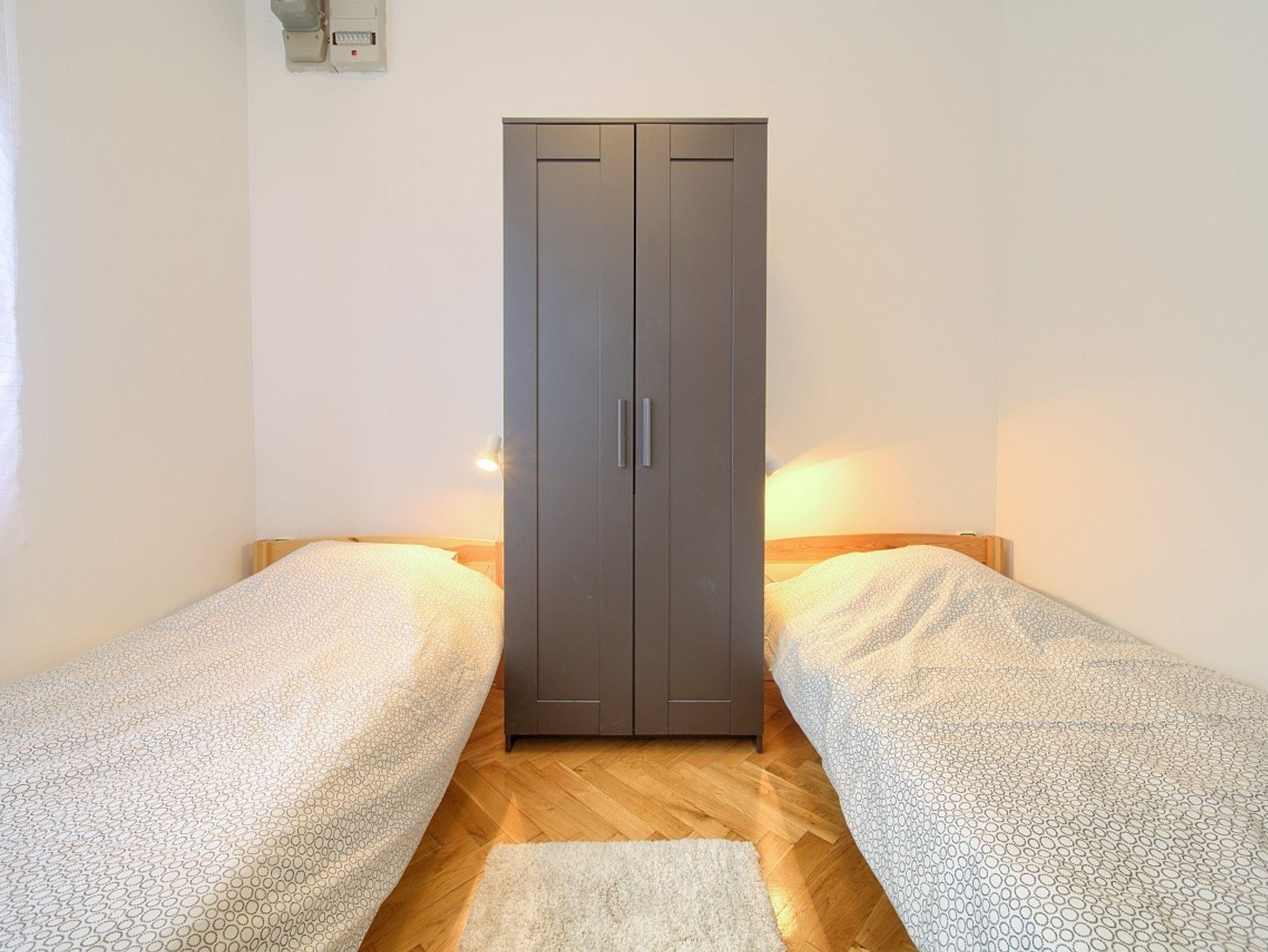Ferienwohnung bietet Platz für 4 Gäste. Die Betten sind in Schlafzimmern, die es 2 gibt, innerhalb einer Gesamtfläche von 35m2, angeordnet. Die Gäste haben eine eigene Terrasse zur Verfügung, auf der sie in warmen Sommernächten genießen können. Für vollen Genuss und Entspannung gibt es einen privaten Grill für Gäste dieser Unterkunft. In der Unterkunftseinheit besteht die Möglichkeit des Mitbringens von Haustieren gegen Aufpreis. IM PREIS INBEGRIFFEN: Kurtaxe, Endreinigung, Klimatisierung, Parkplatz, Internet. VERBINDLICHE ZUSÄTZLICHE KOSTEN: Aufzahlung für Kurzaufenthalte (prozentualer Zuschlag pro Nächtigungsanzahl: 30% - 1, 20% - 2, 10% - 3). UNVERBINDLICHE ZUSÄTZLICHE KOSTEN: Haustiere (10,00 € pro Nacht). Die Verfügbarkeit zusätzlicher Dienstleistungen in Ihrem reservierten Termin und die Preise derselben (falls nicht aufgeführt) müssen im Voraus überprüft werden. Zusätzliche Dienstleistungen die in der Zahlungsaufforderung nicht aufgeführt sind werden direkt beim Vermieter bezahlt, angenommen der Gast nutzt auch diese.