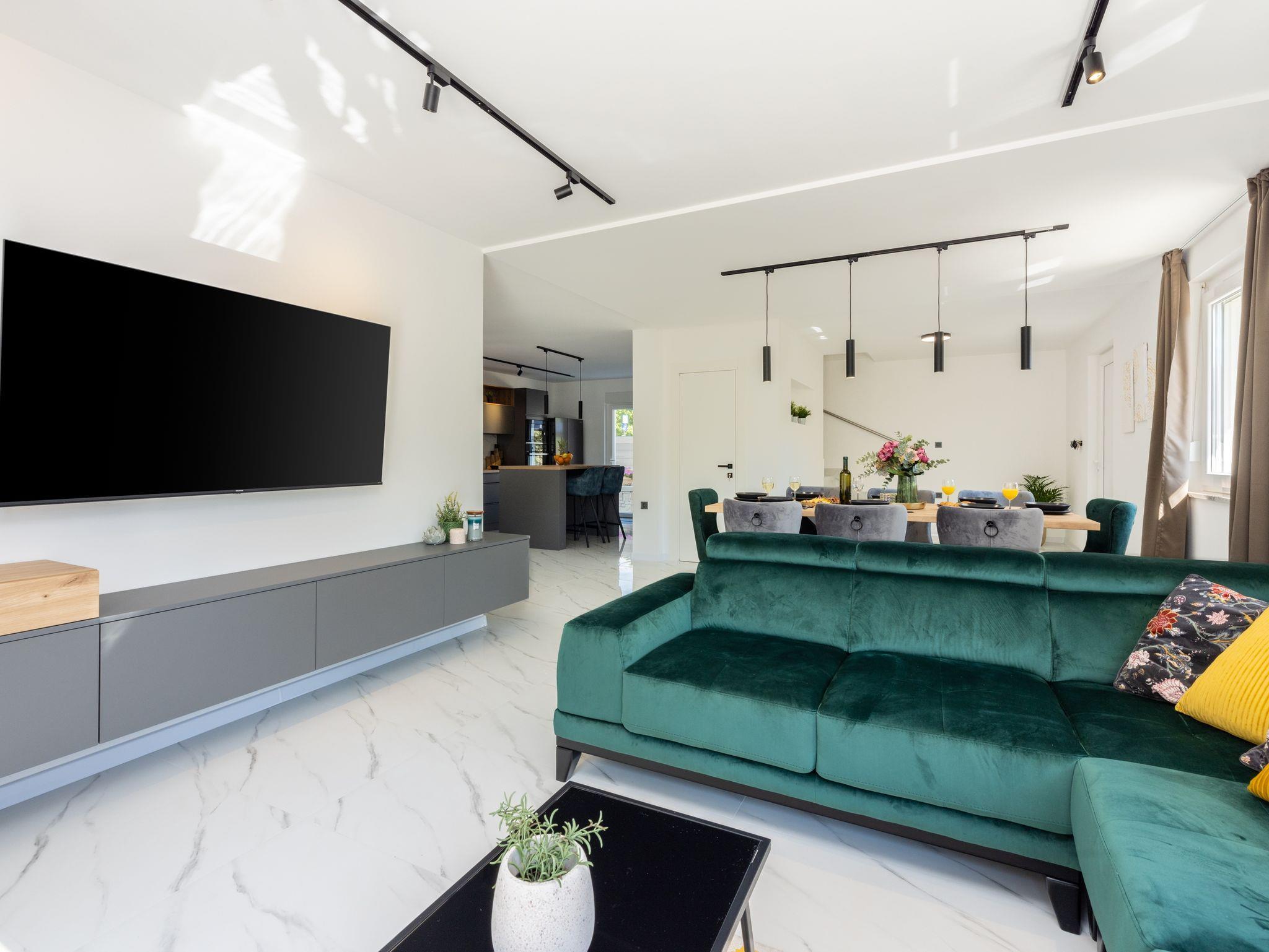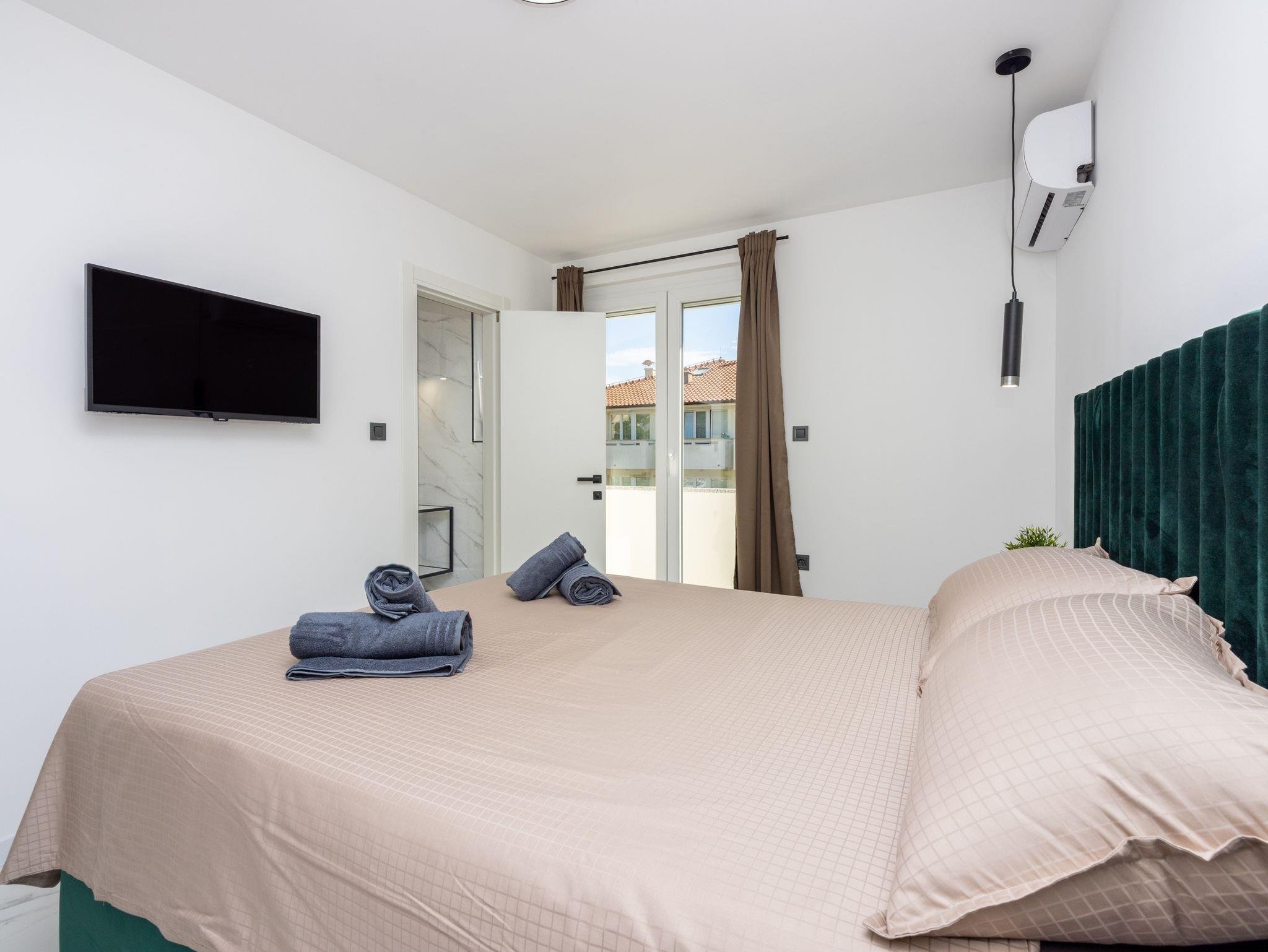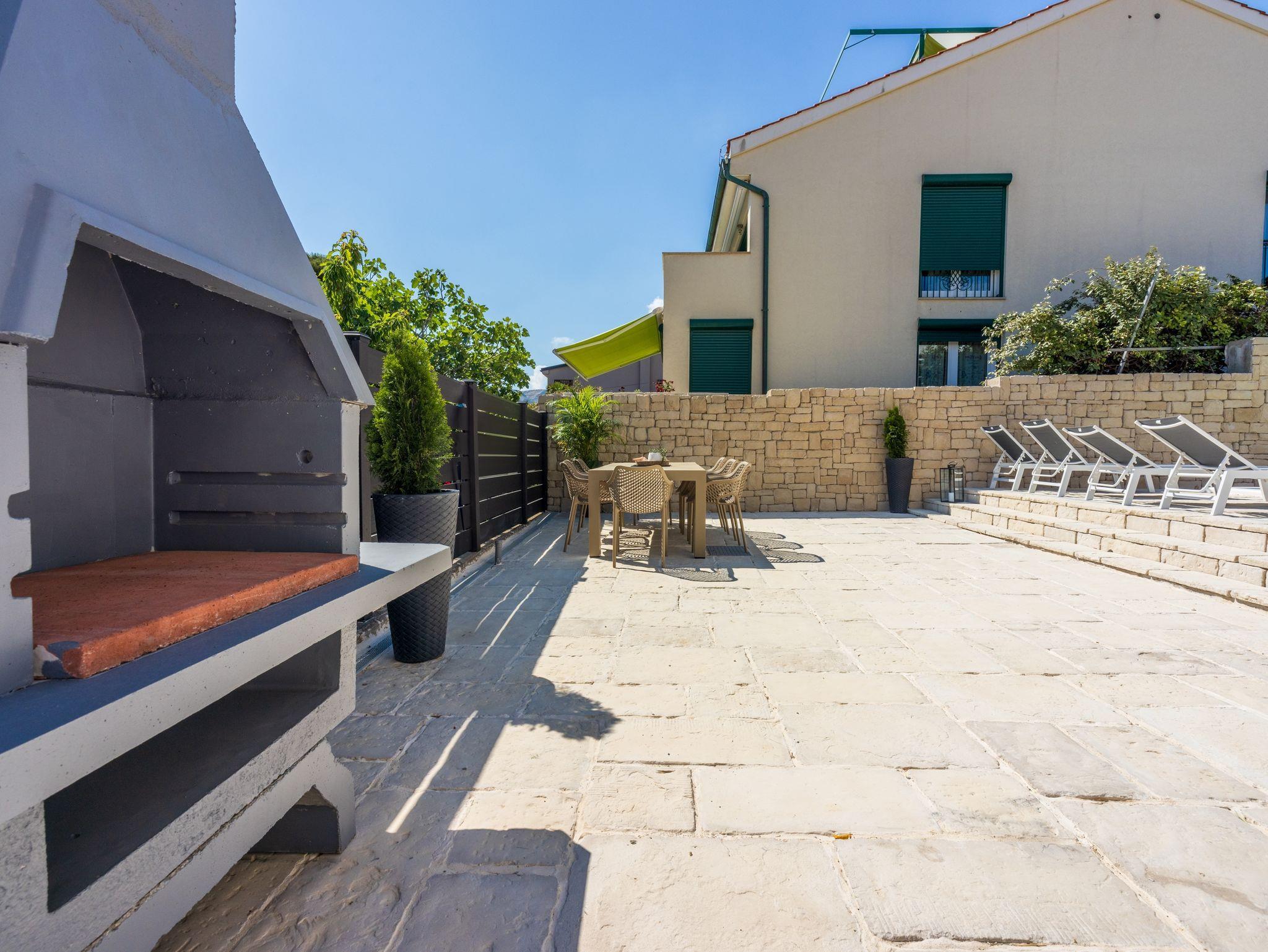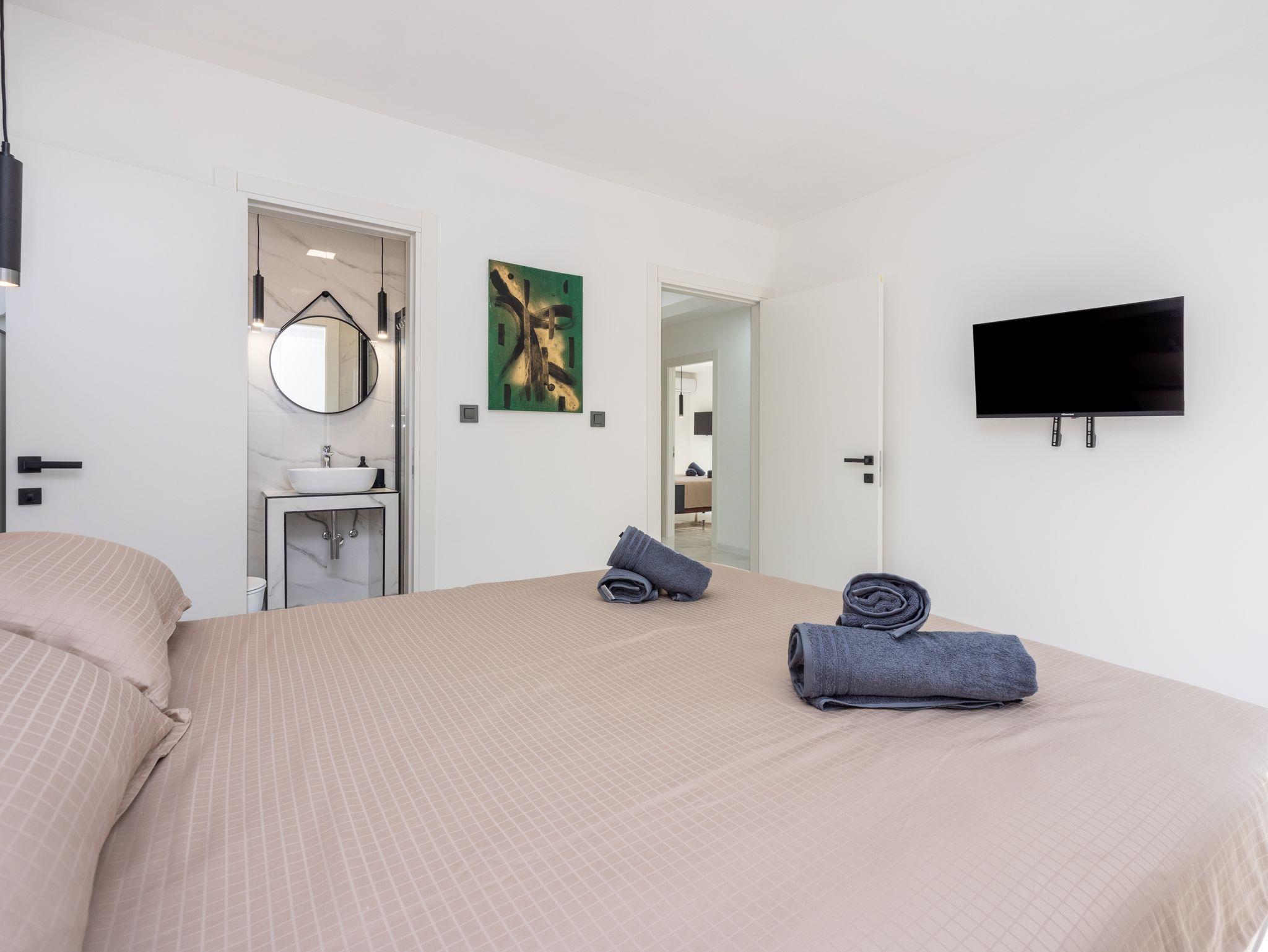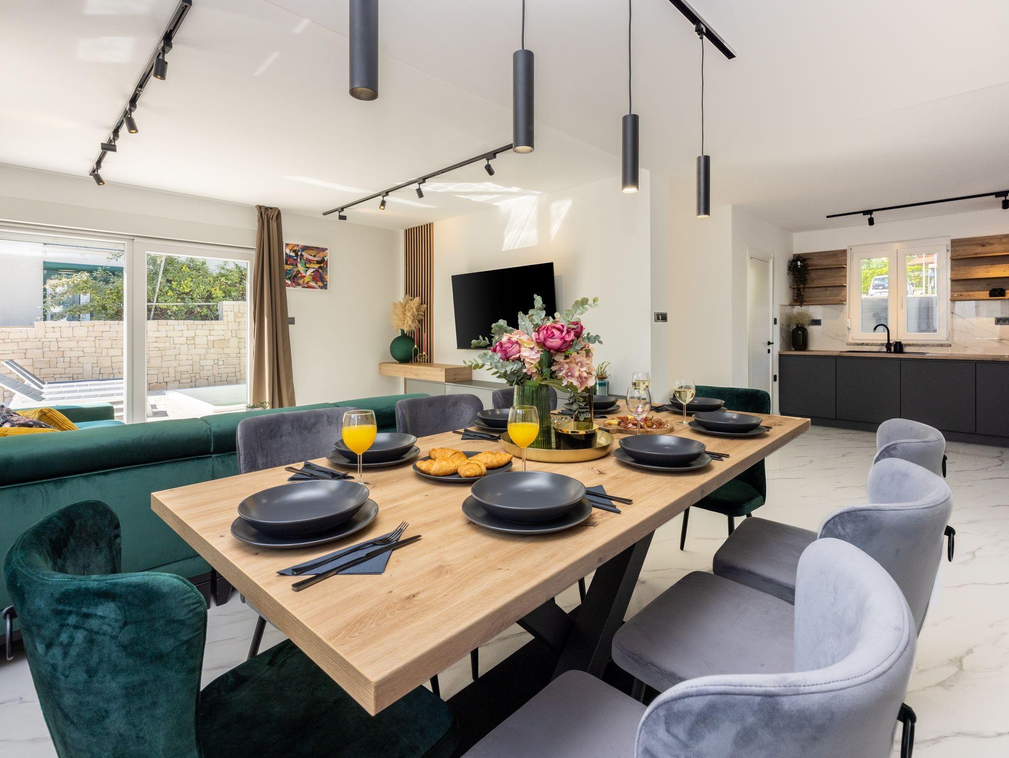 Haus bietet Platz für 8 Gäste. Die Betten sind in Schlafzimmern, die es 4 gibt, innerhalb einer Gesamtfläche von 141m2, angeordnet. Die Gäste haben einen eigenen Balkon zur Verfügung, auf der sie in warmen Sommernächten genießen können. Das Haus bietet Meerblick. Für vollen Genuss und Entspannung gibt es einen privaten Grill für Gäste dieser Unterkunft. Während ihres Aufenthalts können sich Gäste im privaten Schwimmbad entspannen. IM PREIS INBEGRIFFEN: Kurtaxe, Endreinigung, Klimatisierung, Pool, Parkplatz, Internet, Bügeleisen, Bügelbrett, Föhn. Die Verfügbarkeit zusätzlicher Dienstleistungen in Ihrem reservierten Termin und die Preise derselben (falls nicht aufgeführt) müssen im Voraus überprüft werden. Zusätzliche Dienstleistungen die in der Zahlungsaufforderung nicht aufgeführt sind werden direkt beim Vermieter bezahlt, angenommen der Gast nutzt auch diese. Ermäßigung auf den Grundpreis: Gratistag 14=13 (bei einem Aufenthalt von 14 Tagen oder mehr erhalten Sie einen Gratistag für den Aufenthalt bis 31.12.26).