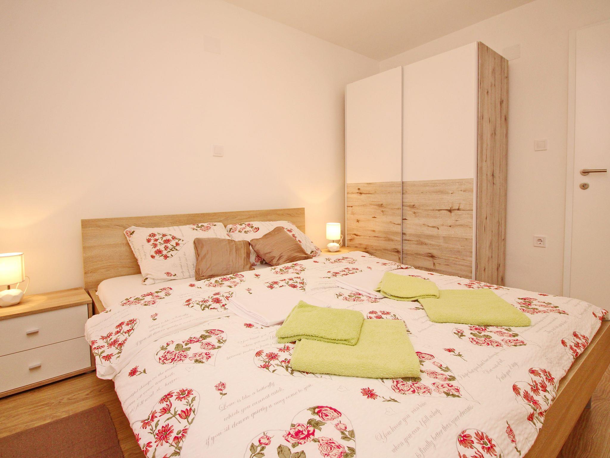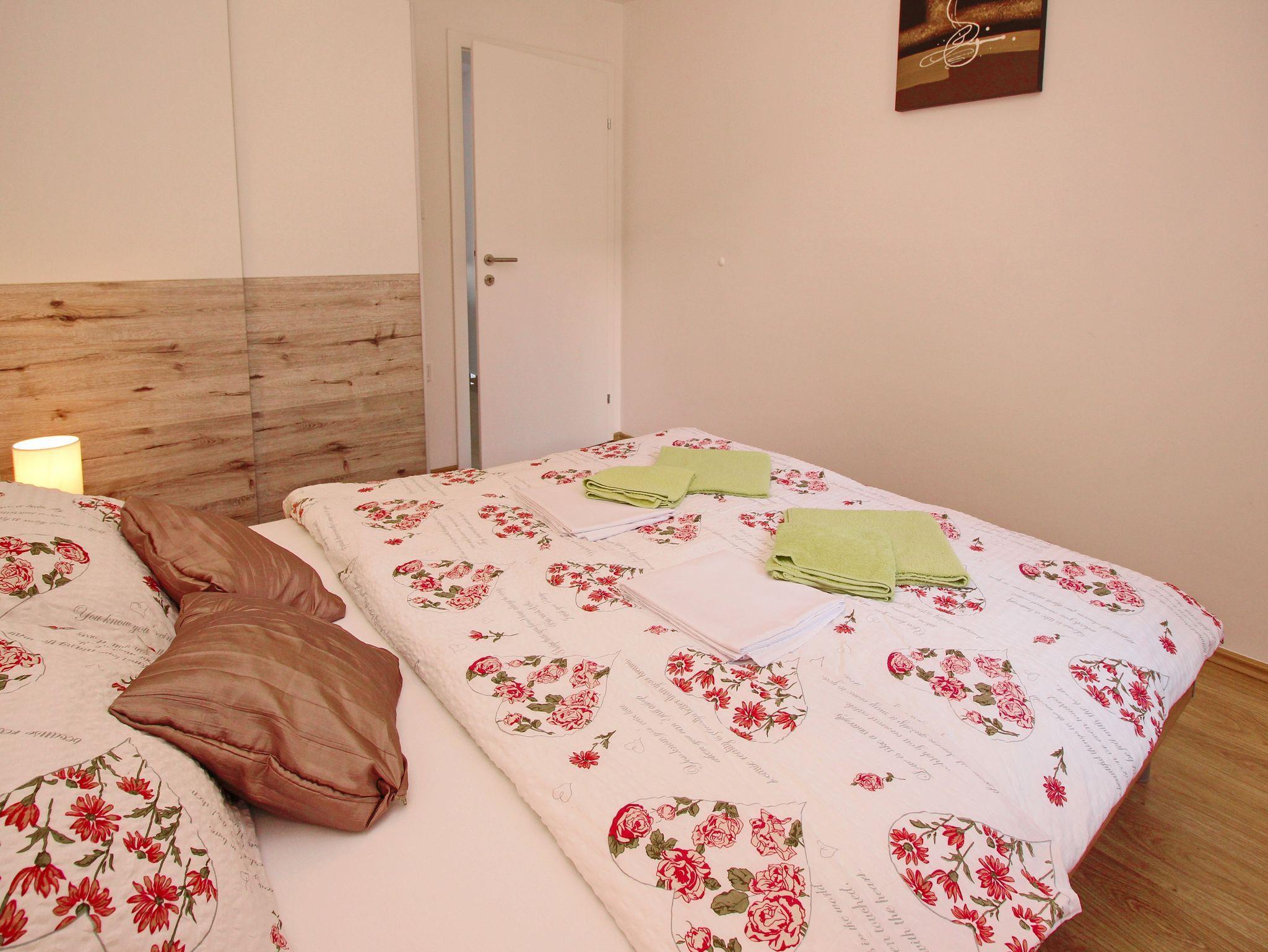 Ferienwohnung bietet Platz für 5 Gäste. Die Betten sind in Schlafzimmern, die es 2 gibt, und in Wohnzimmer, innerhalb einer Gesamtfläche von 50m2, angeordnet. Die Gäste haben einen eigenen Balkon zur Verfügung, auf der sie in warmen Sommernächten genießen können. IM PREIS INBEGRIFFEN: Kurtaxe, Endreinigung, Klimatisierung, Parkplatz, Internet. VERBINDLICHE ZUSÄTZLICHE KOSTEN: Aufzahlung für Kurzaufenthalte (prozentualer Zuschlag pro Nächtigungsanzahl: 30% - 1, 20% - 2, 10% - 3). Die Verfügbarkeit zusätzlicher Dienstleistungen in Ihrem reservierten Termin und die Preise derselben (falls nicht aufgeführt) müssen im Voraus überprüft werden. Zusätzliche Dienstleistungen die in der Zahlungsaufforderung nicht aufgeführt sind werden direkt beim Vermieter bezahlt, angenommen der Gast nutzt auch diese.